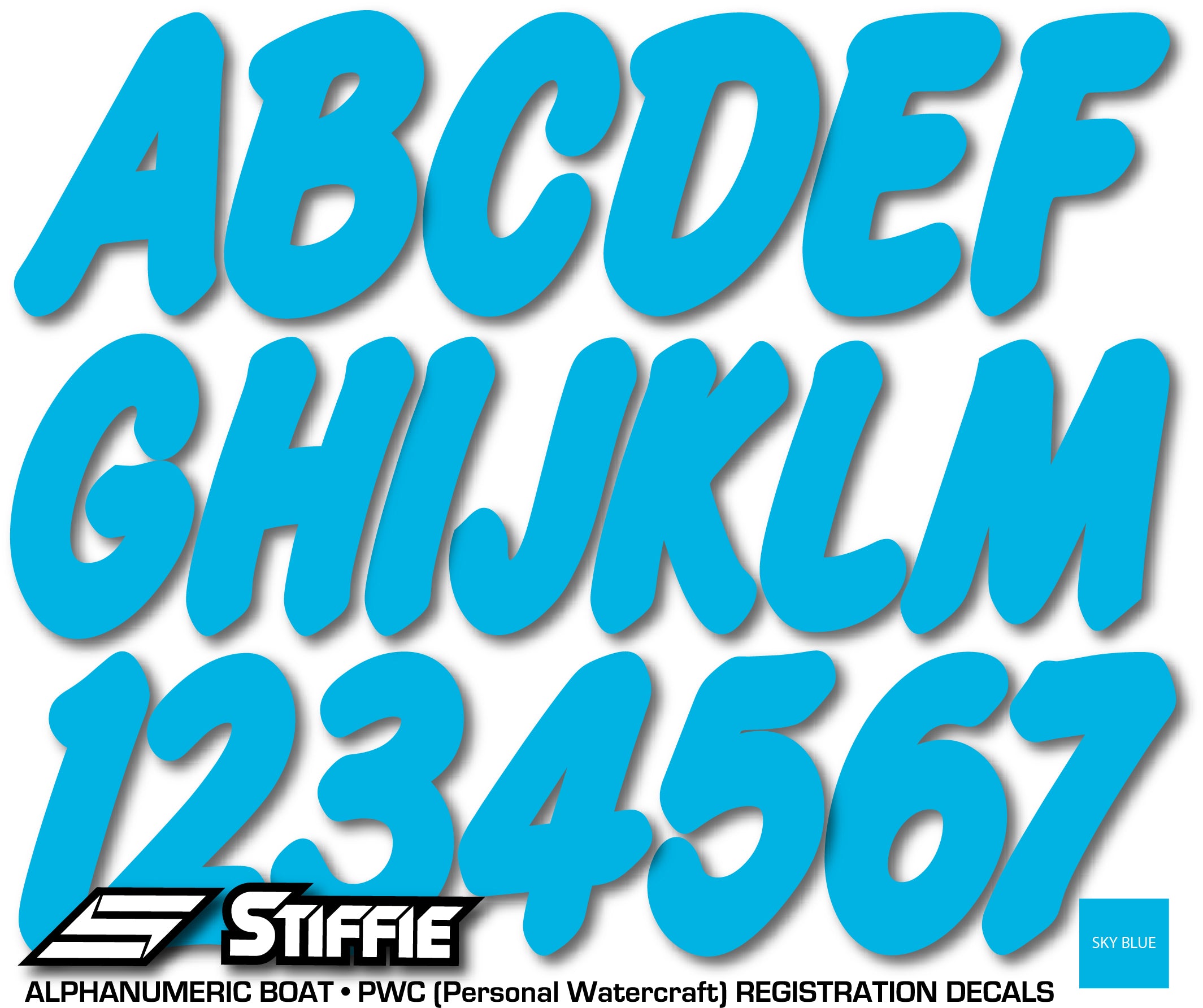 STIFFIE Whip-One Sky Blue 3” Boat & PWC Registration Decals • Numbers Letters Stickers