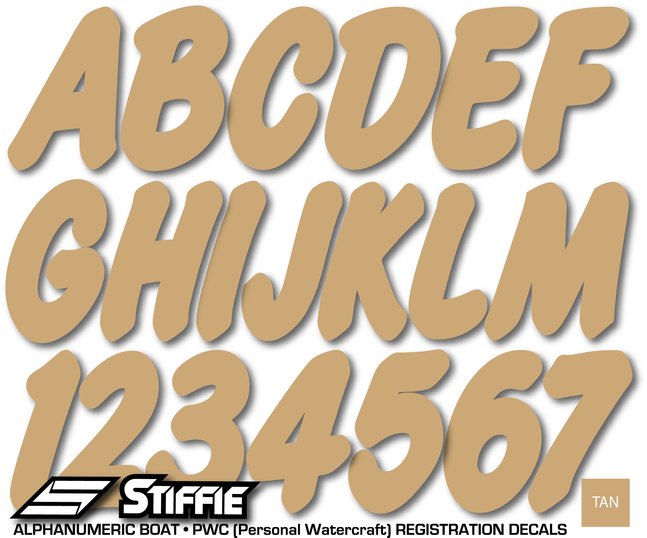 STIFFIE Whip-One Tan 3” Boat & PWC Registration Decals • Numbers Letters Stickers