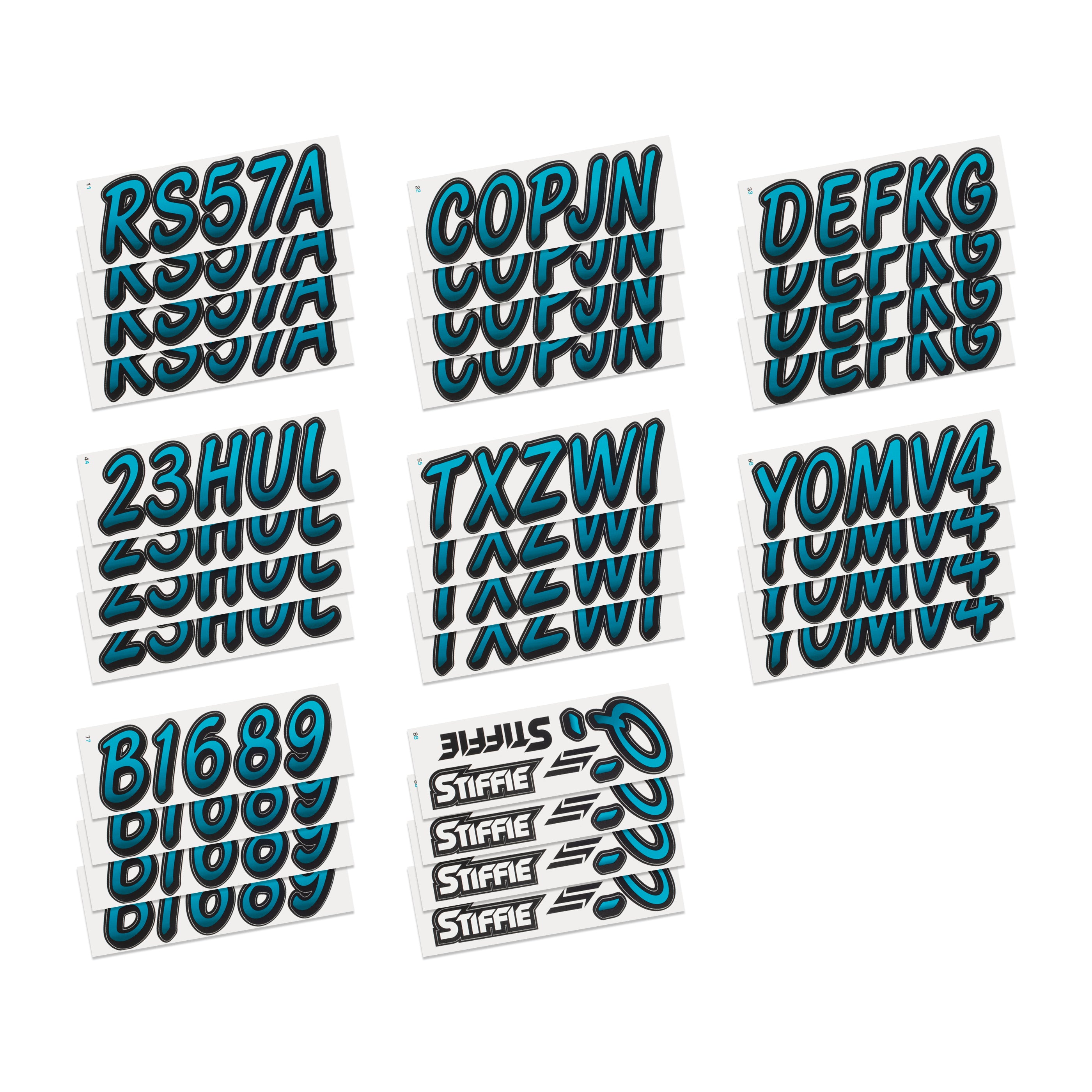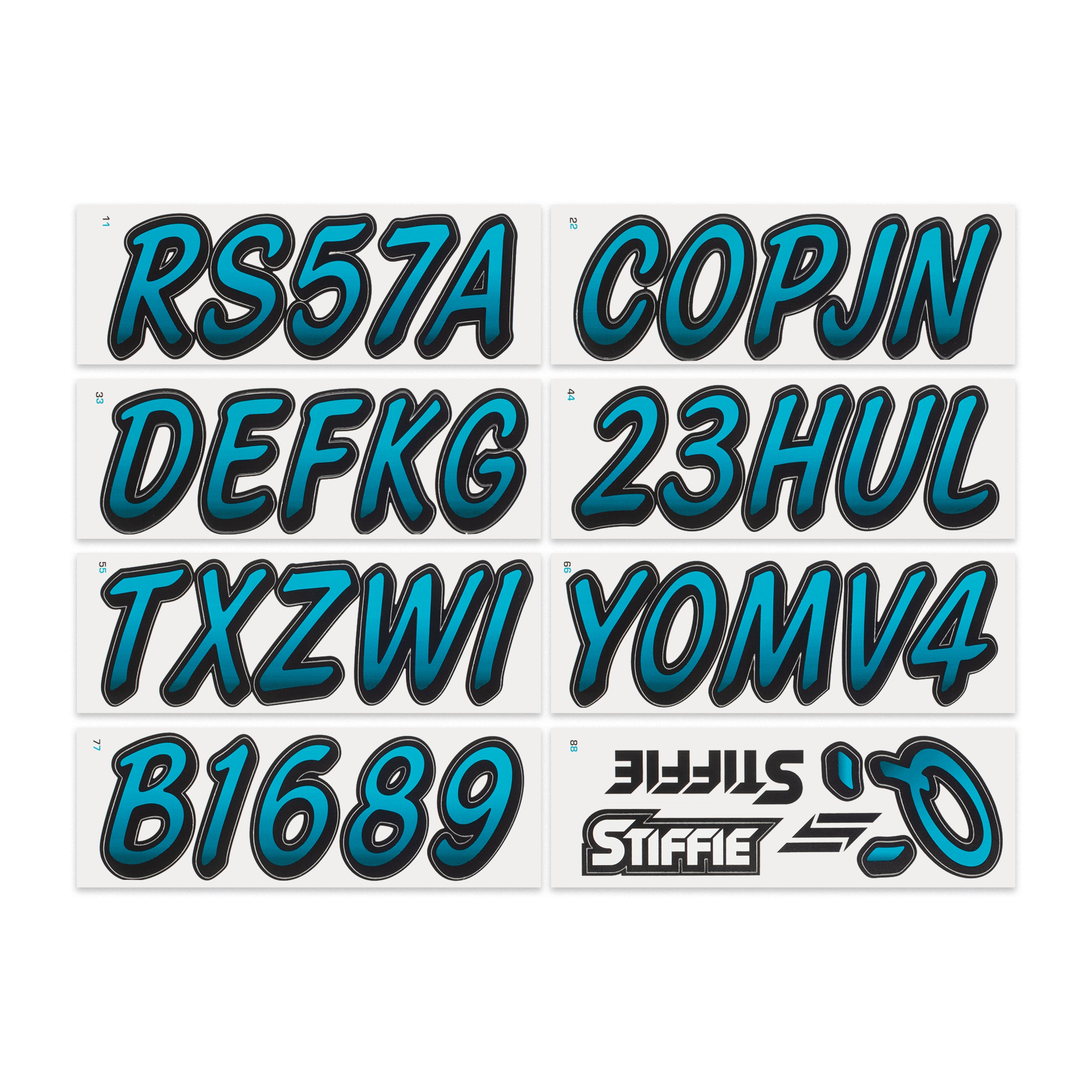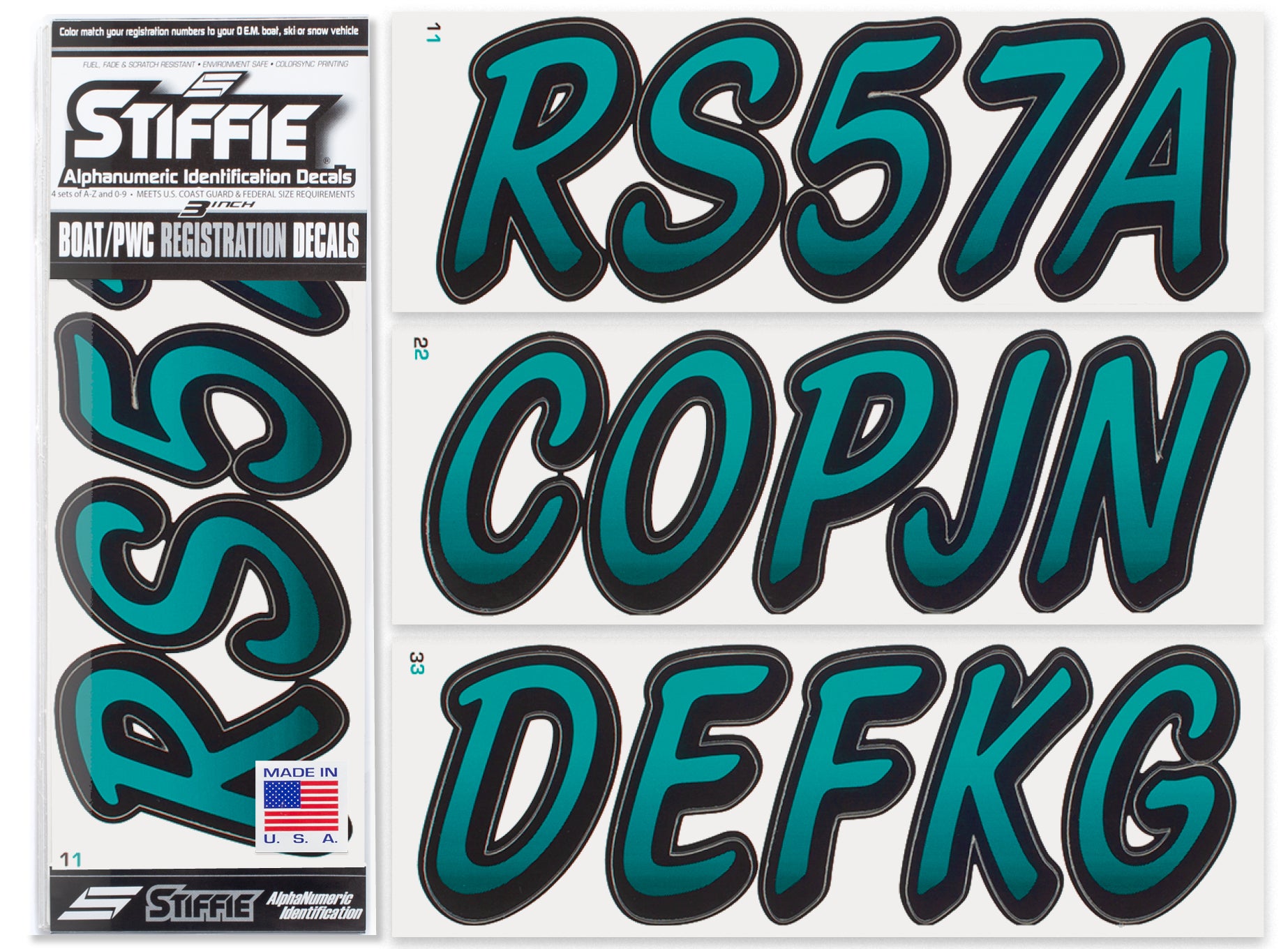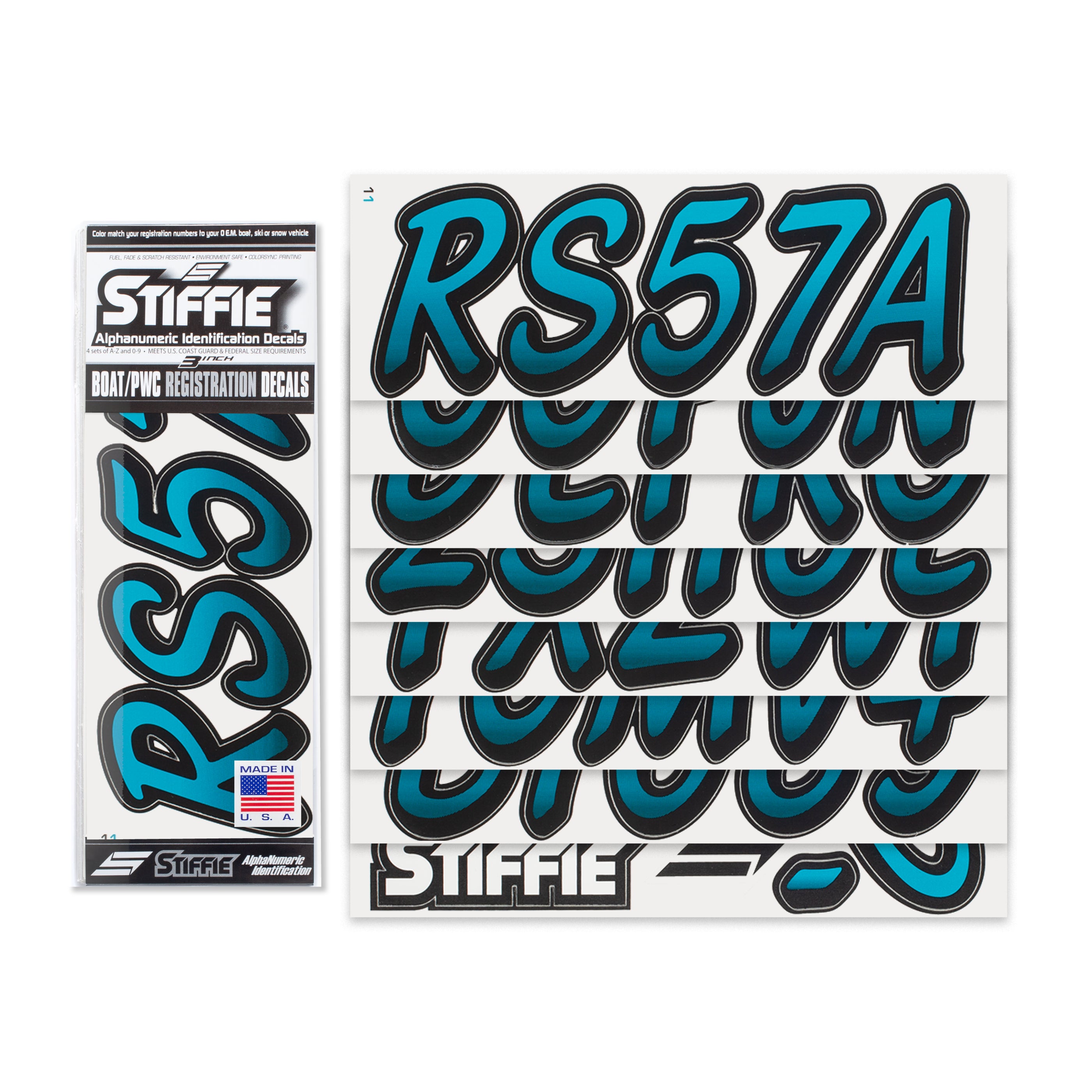 STIFFIE Whipline Aqua/Black 3" Boat & PWC Registration Decals • Numbers Letters Stickers