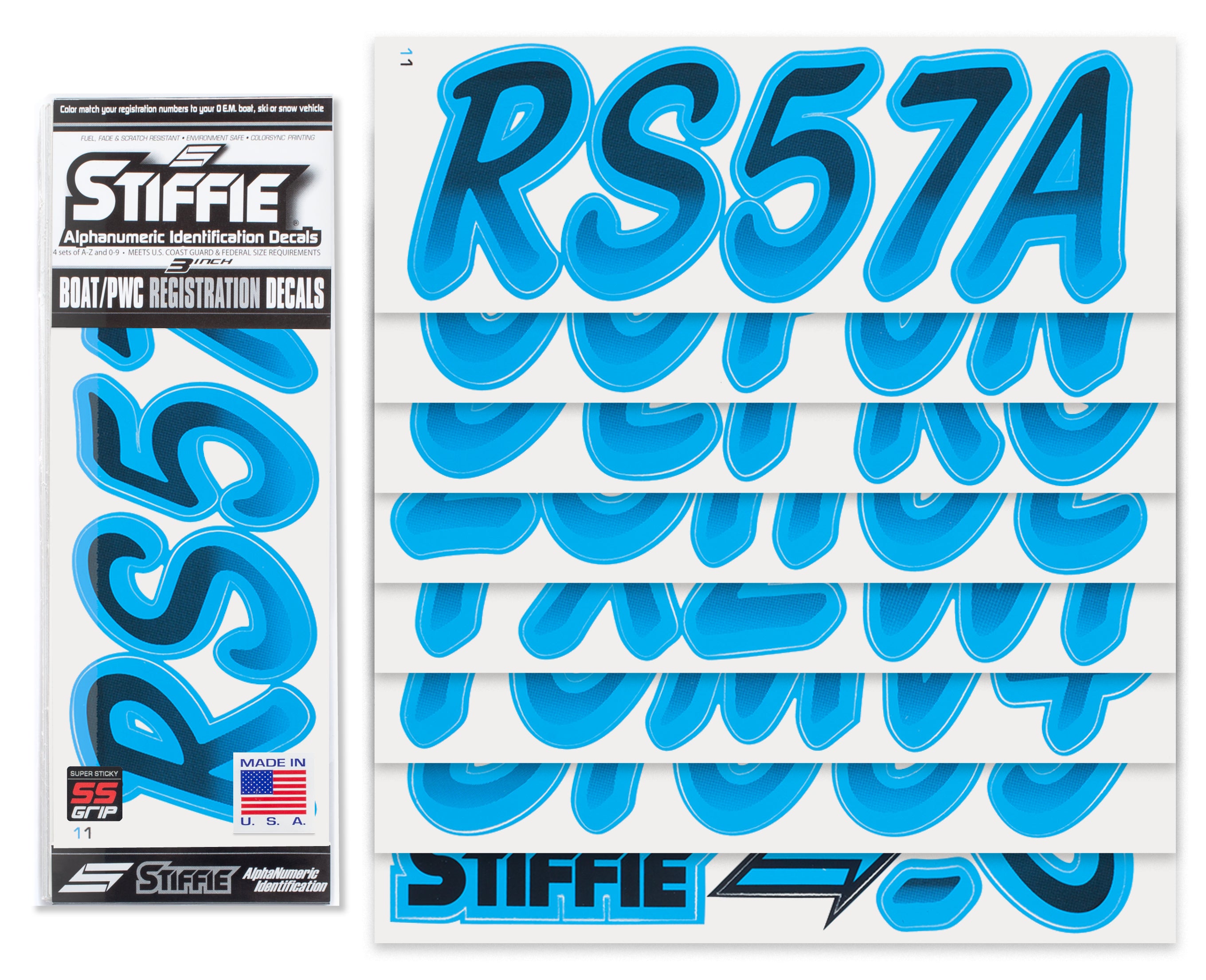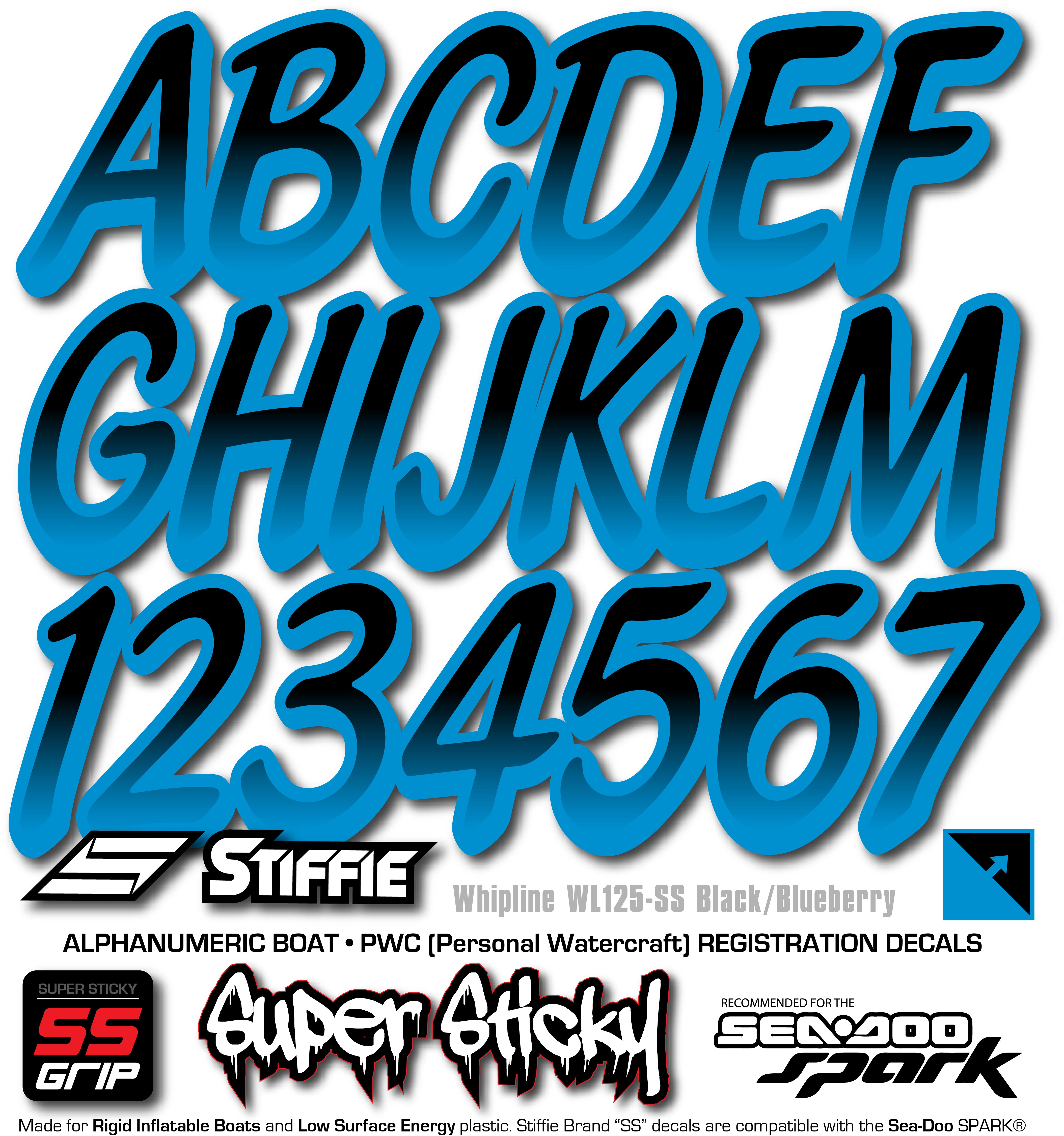 STIFFIE Whipline Black/Blueberry 3" Super Sticky Boat & PWC Registration Decals • Numbers Letters Stickers