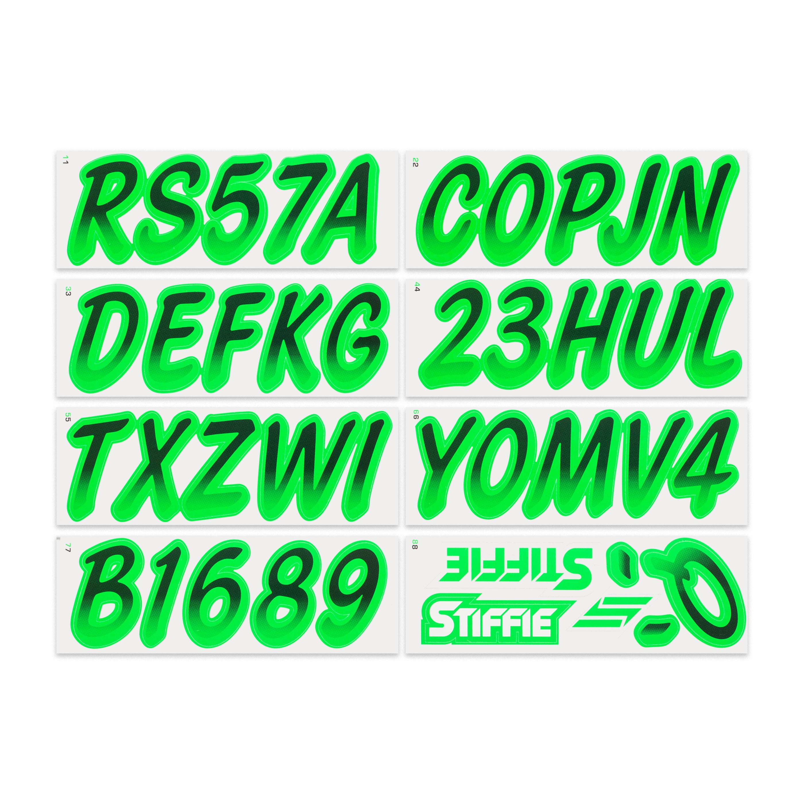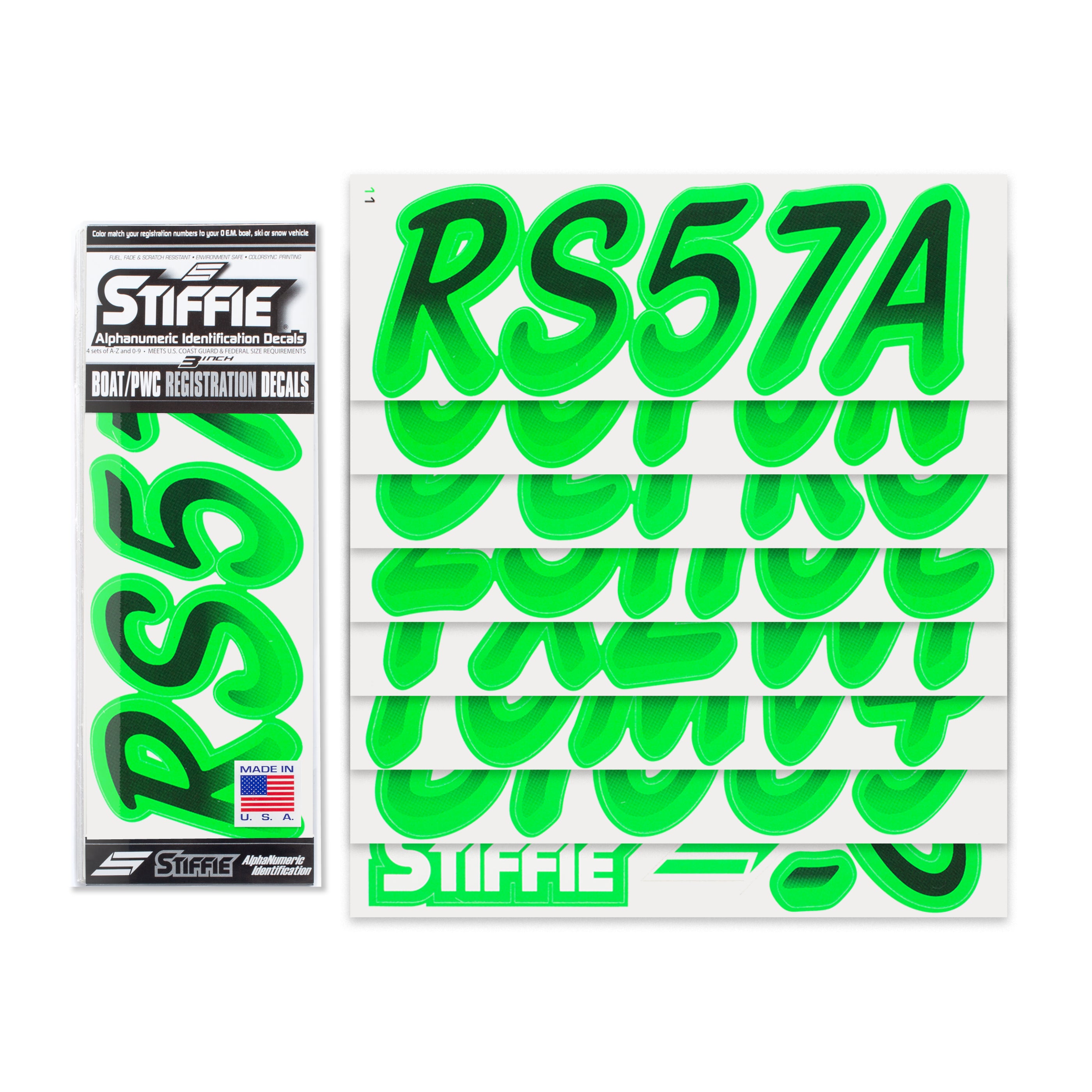 STIFFIE Whipline Black/Electric Green 3" Boat & PWC Registration Decals • Numbers Letters Stickers
