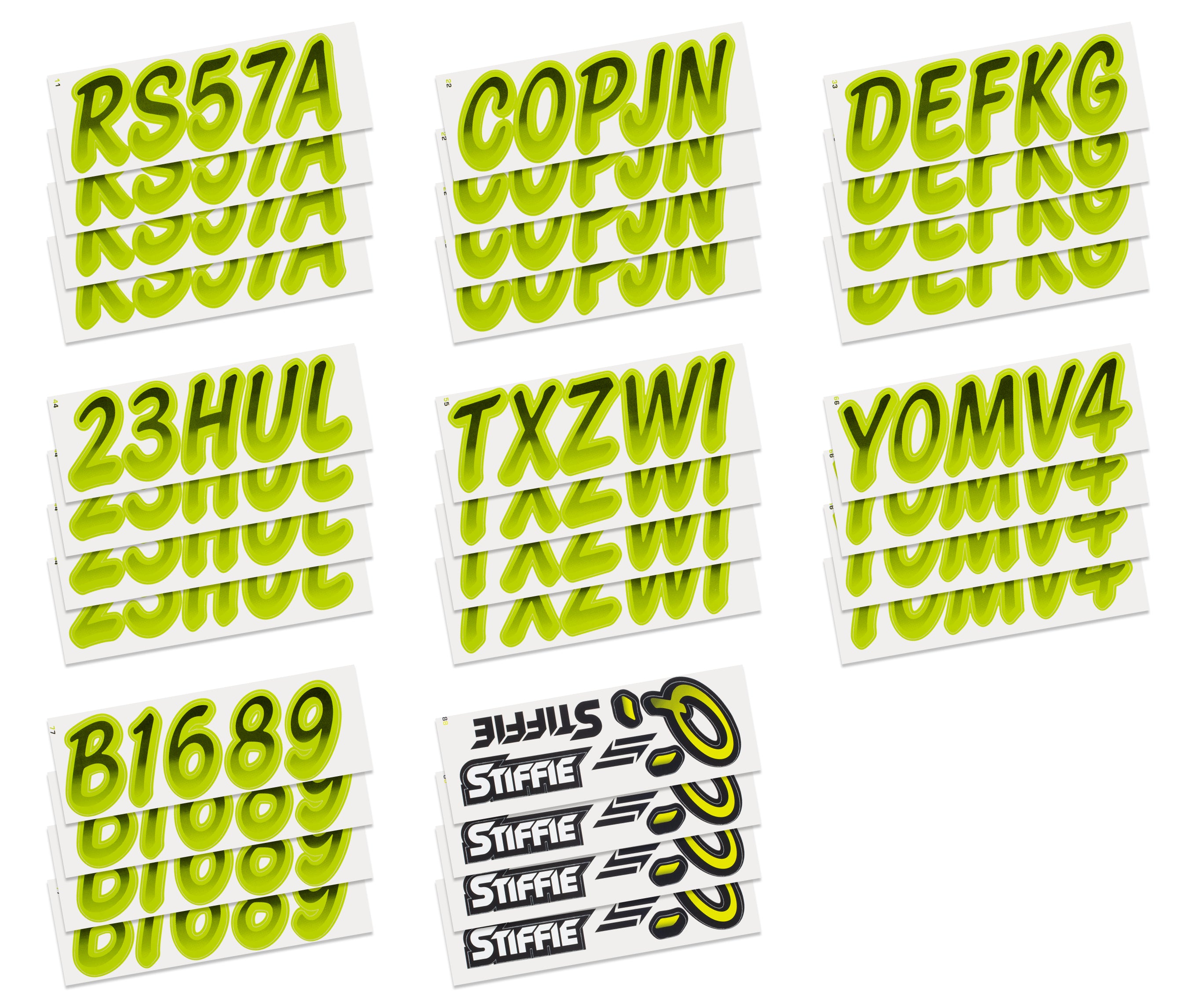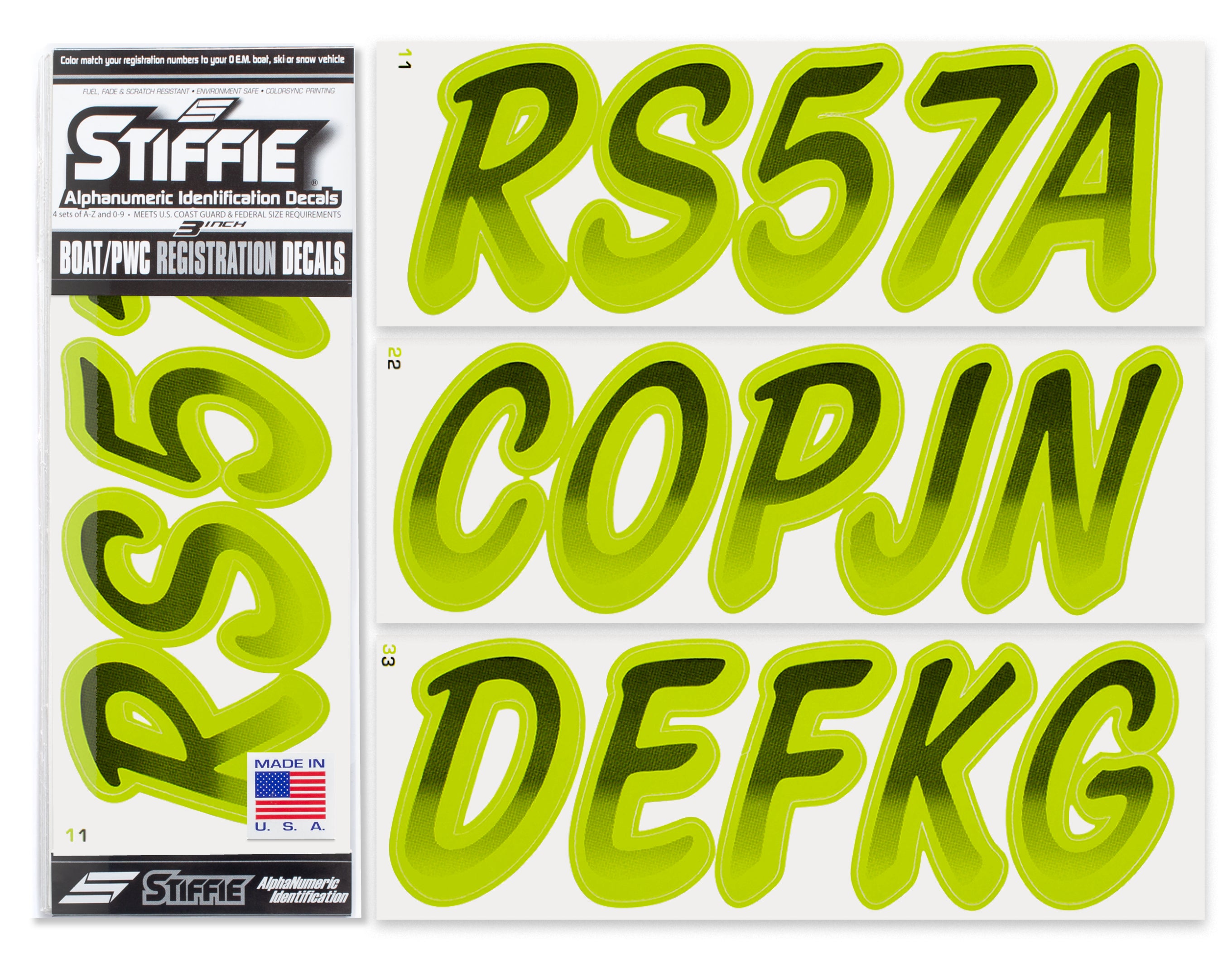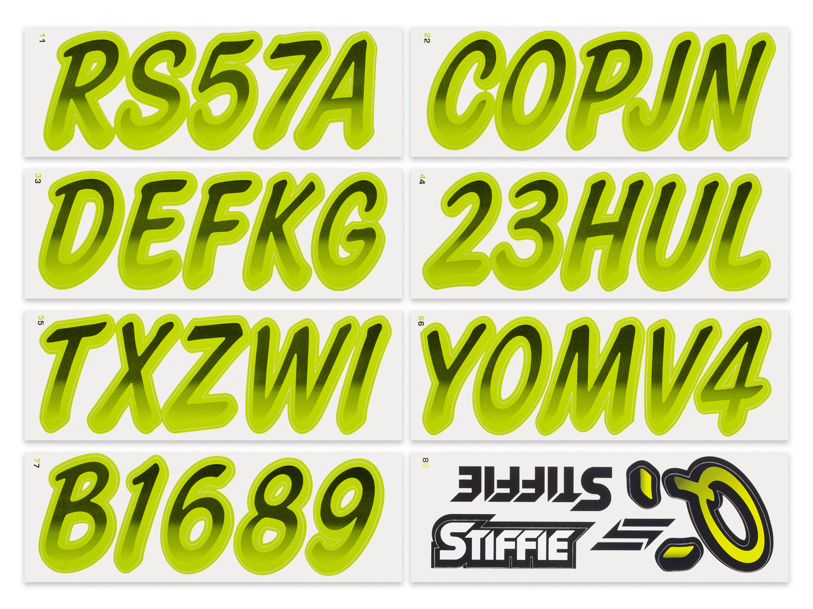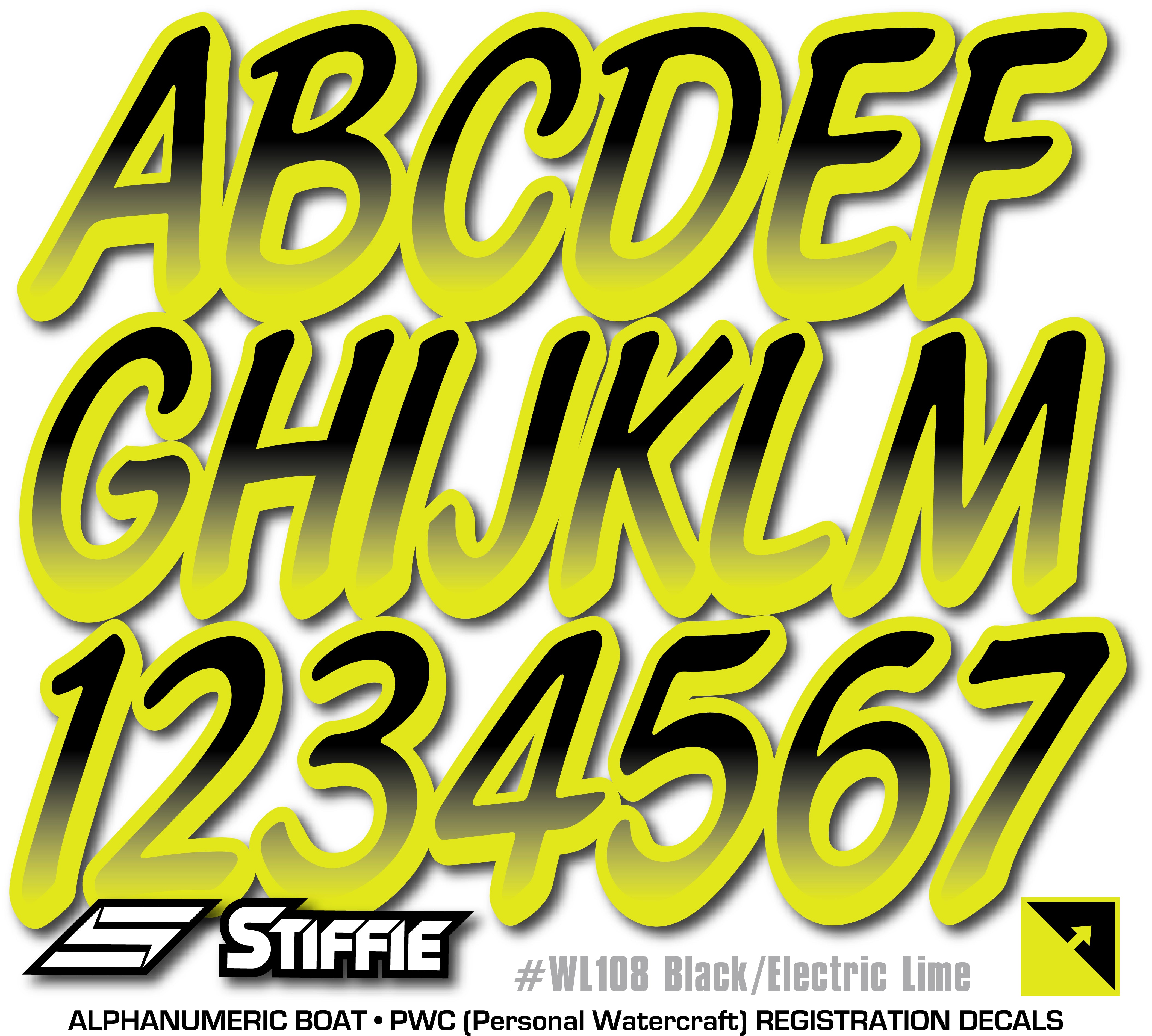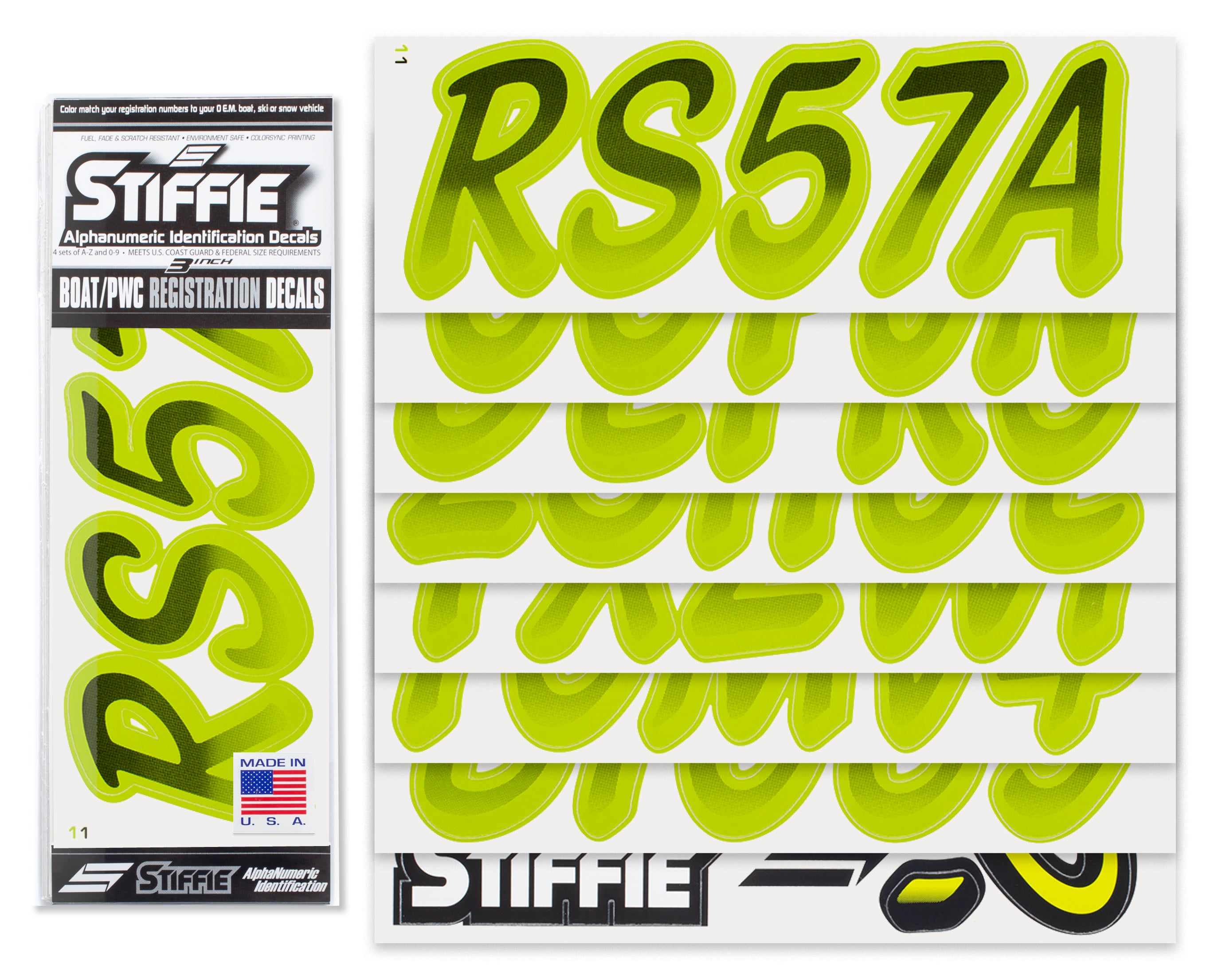 STIFFIE Whipline Black/Electric Lime 3" Boat & PWC Registration Decals • Numbers Letters Stickers