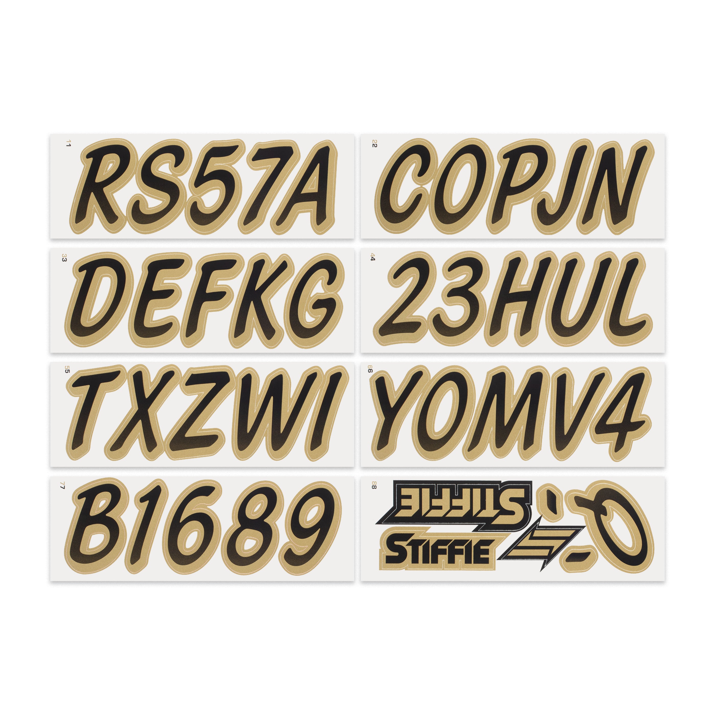 STIFFIE Whipline Black/Metallic Gold 3" Boat & PWC Registration Decals • Numbers Letters Stickers