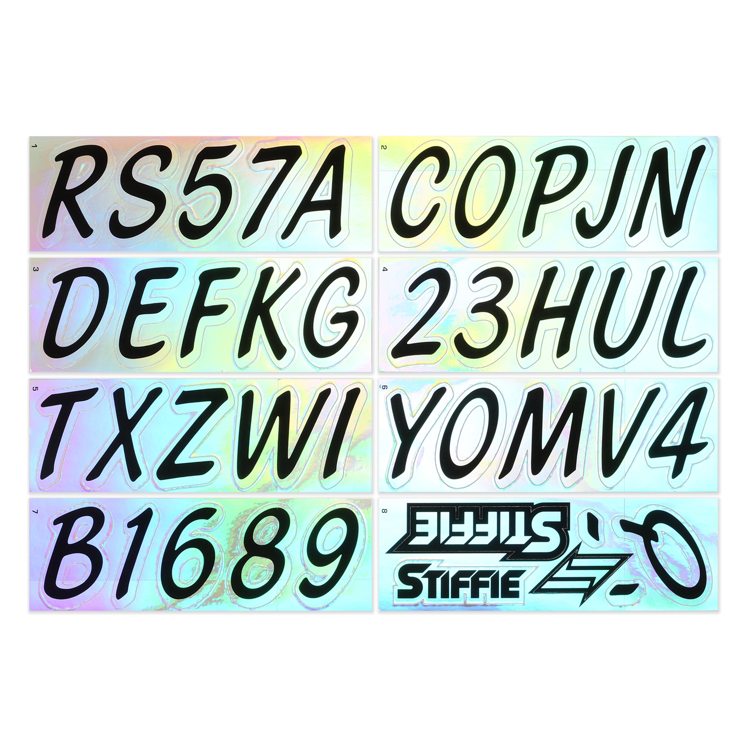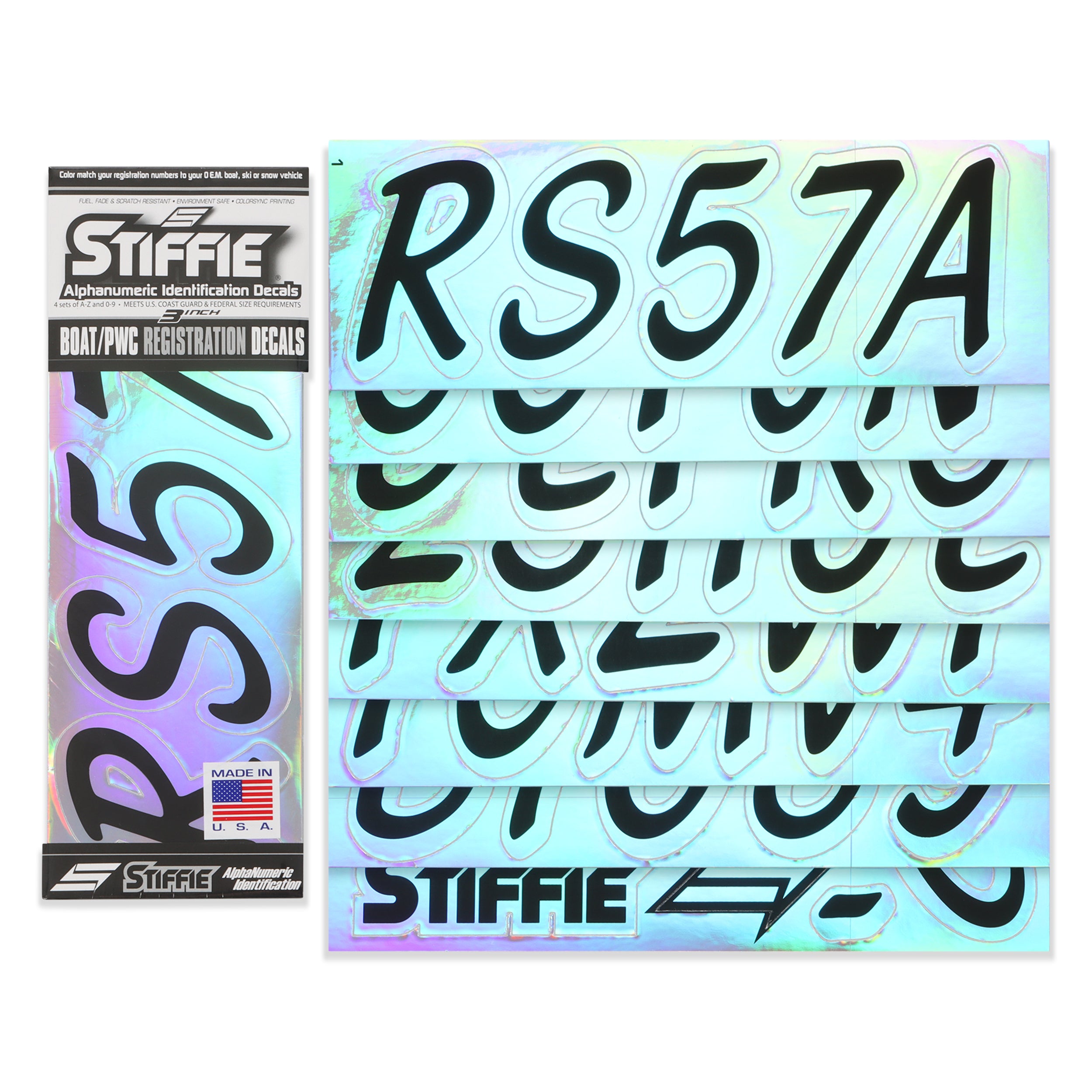 STIFFIE Whipline Black/Rainbow Chrome 3" Boat & PWC Registration Decals • Numbers Letters Stickers