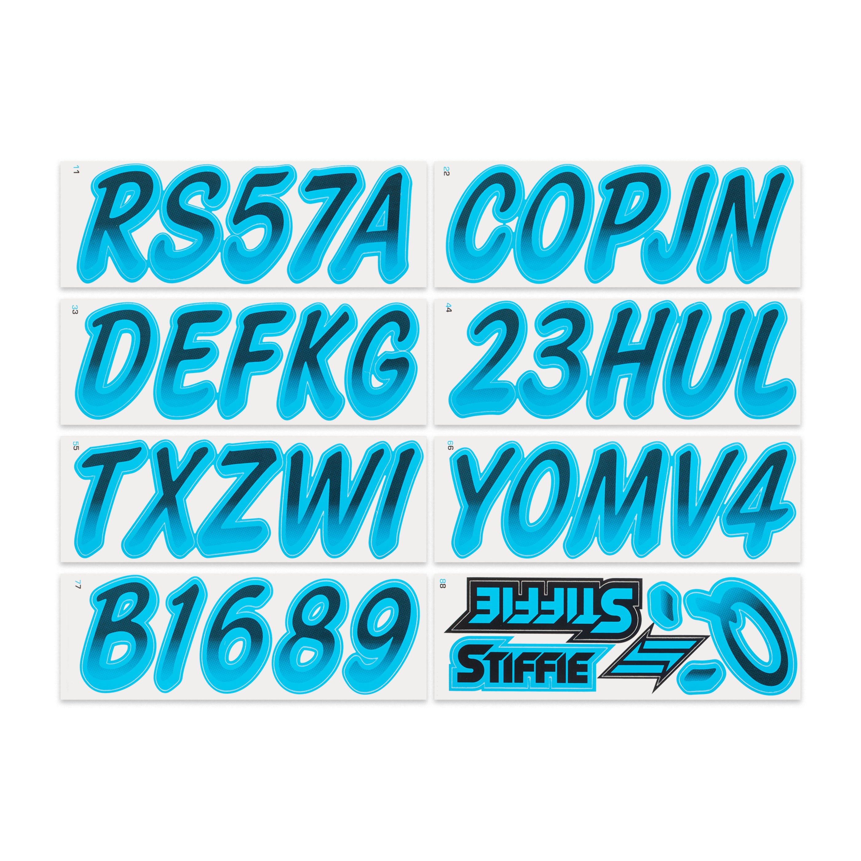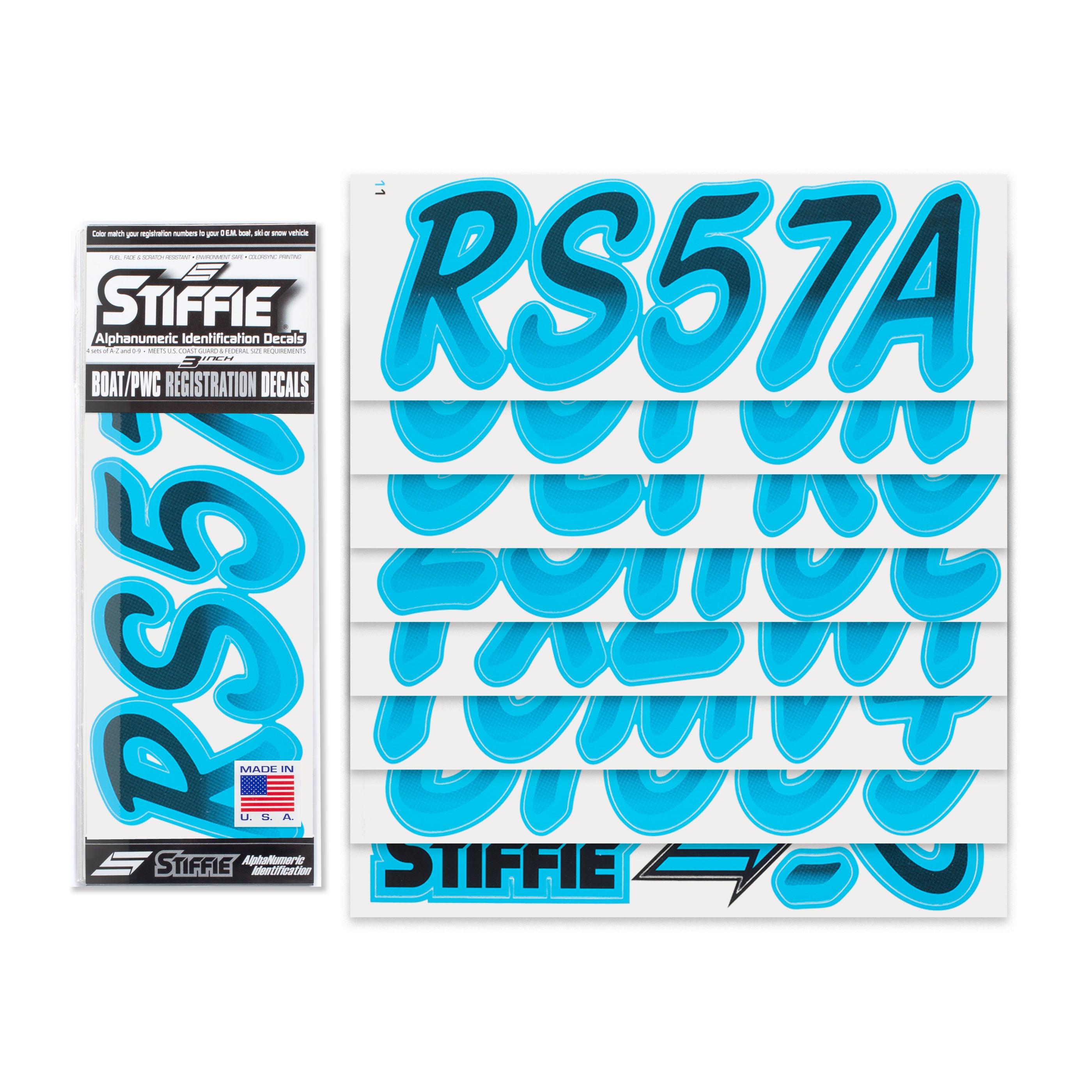 STIFFIE Whipline Black/Sky Blue 3" Boat & PWC Registration Decals • Numbers Letters Stickers