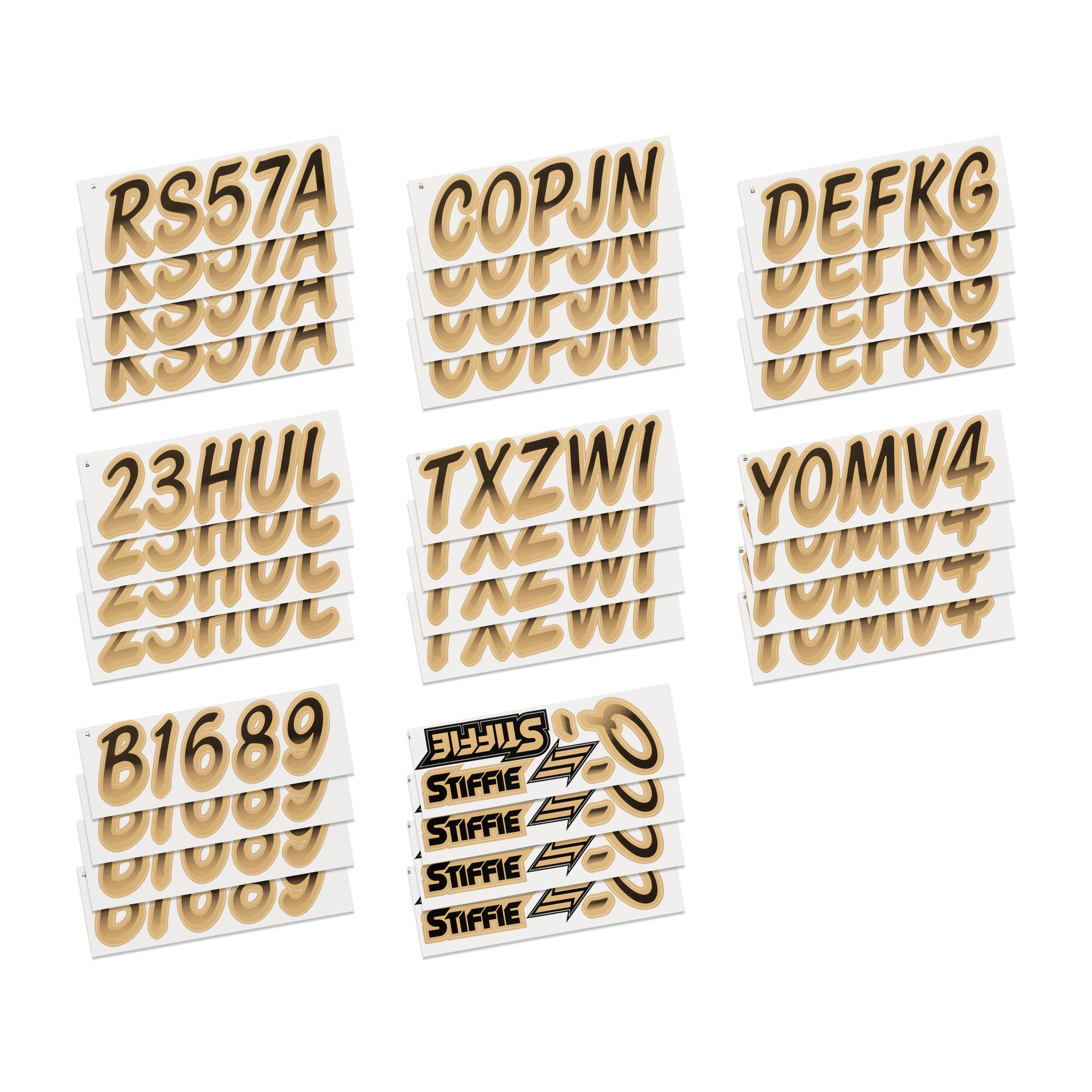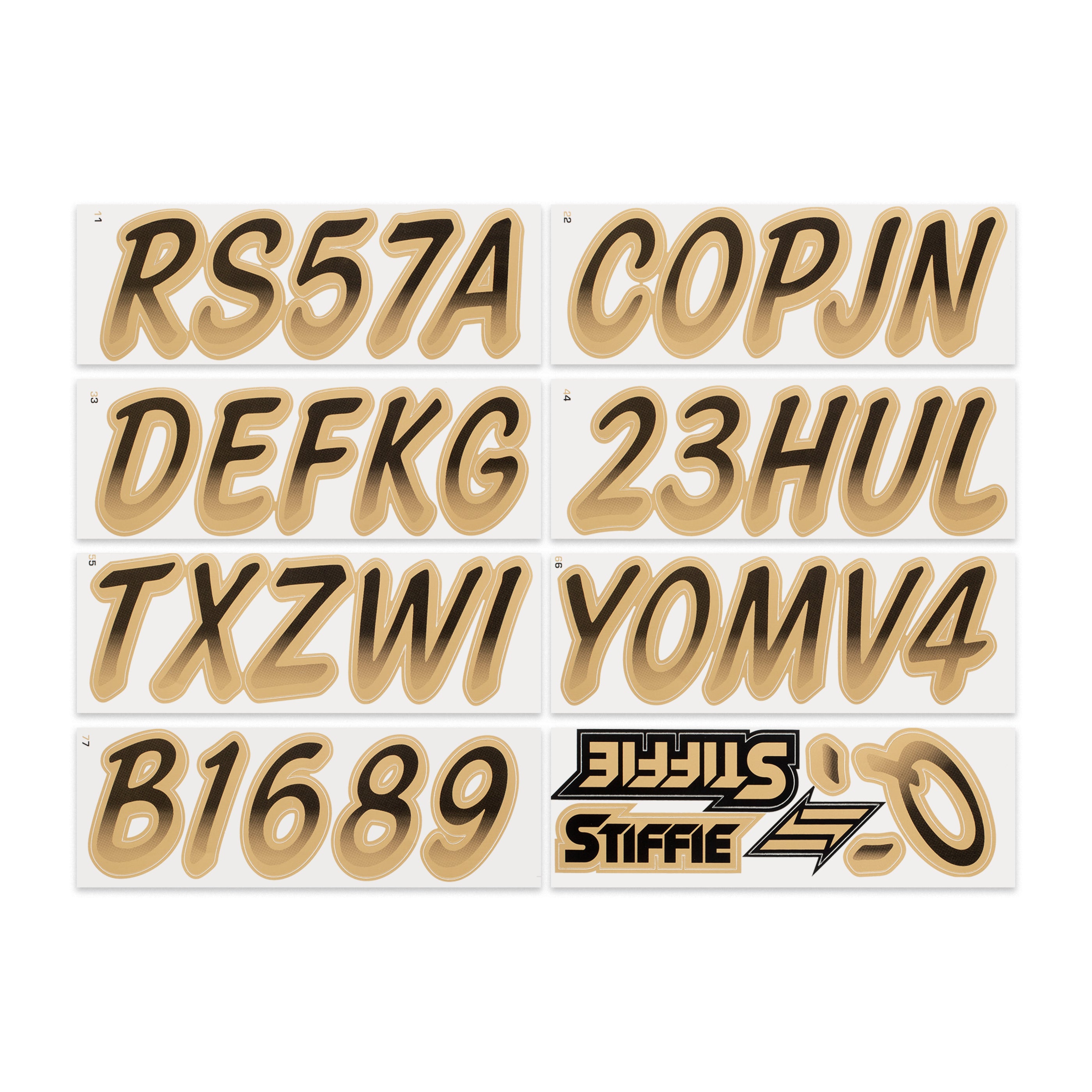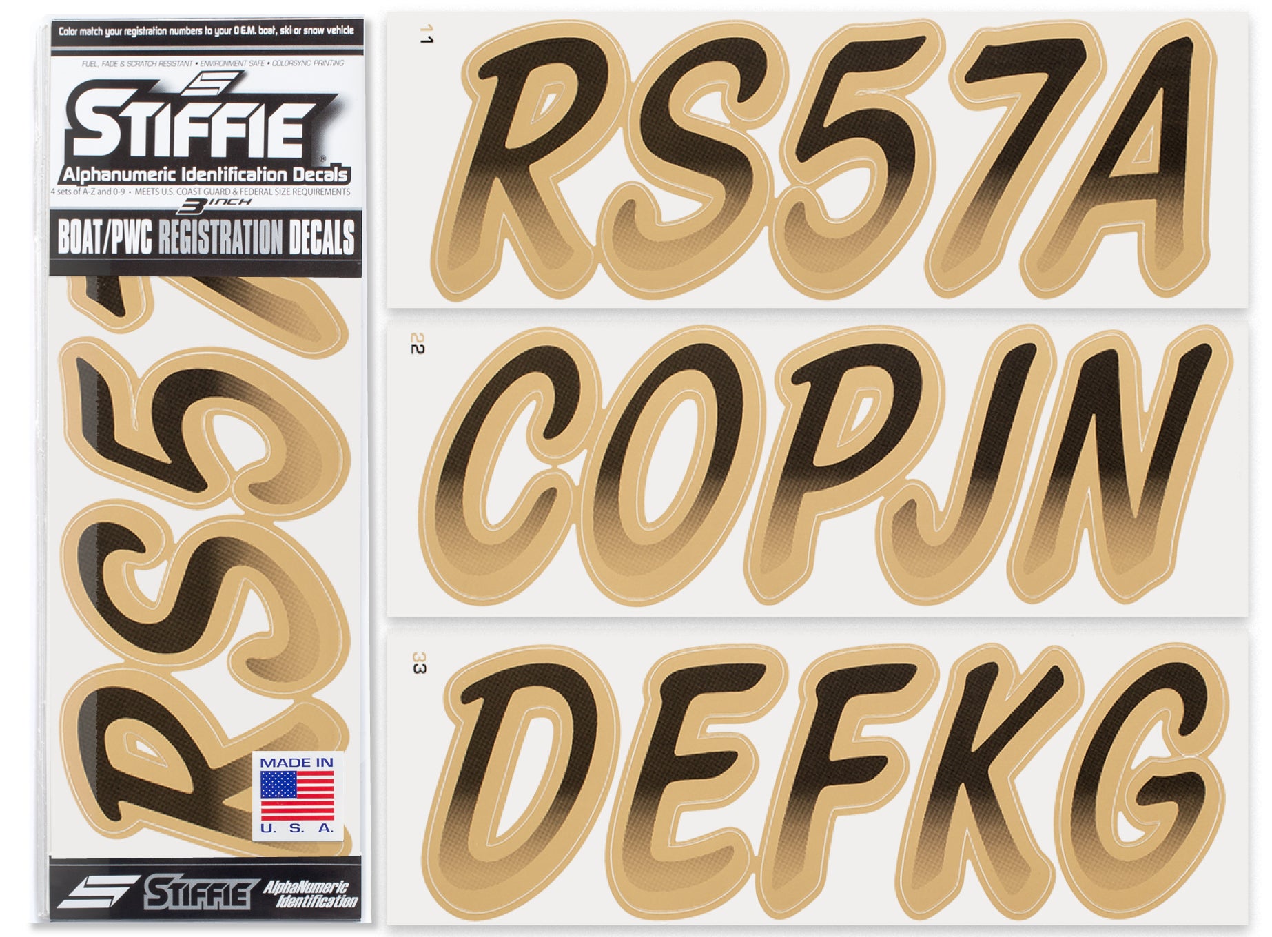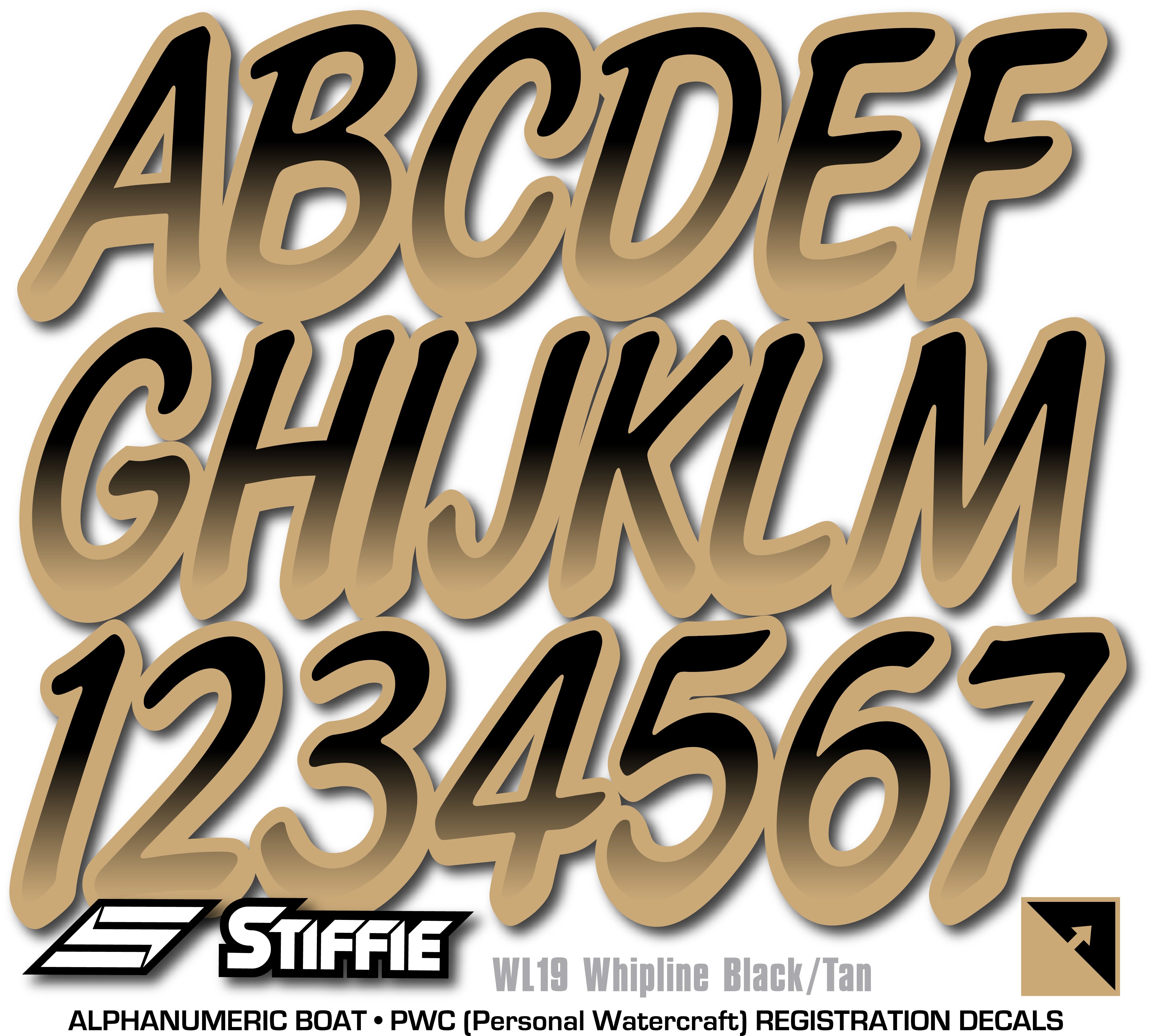 STIFFIE Whipline Black/Tan 3" Boat & PWC Registration Decals • Numbers Letters Stickers