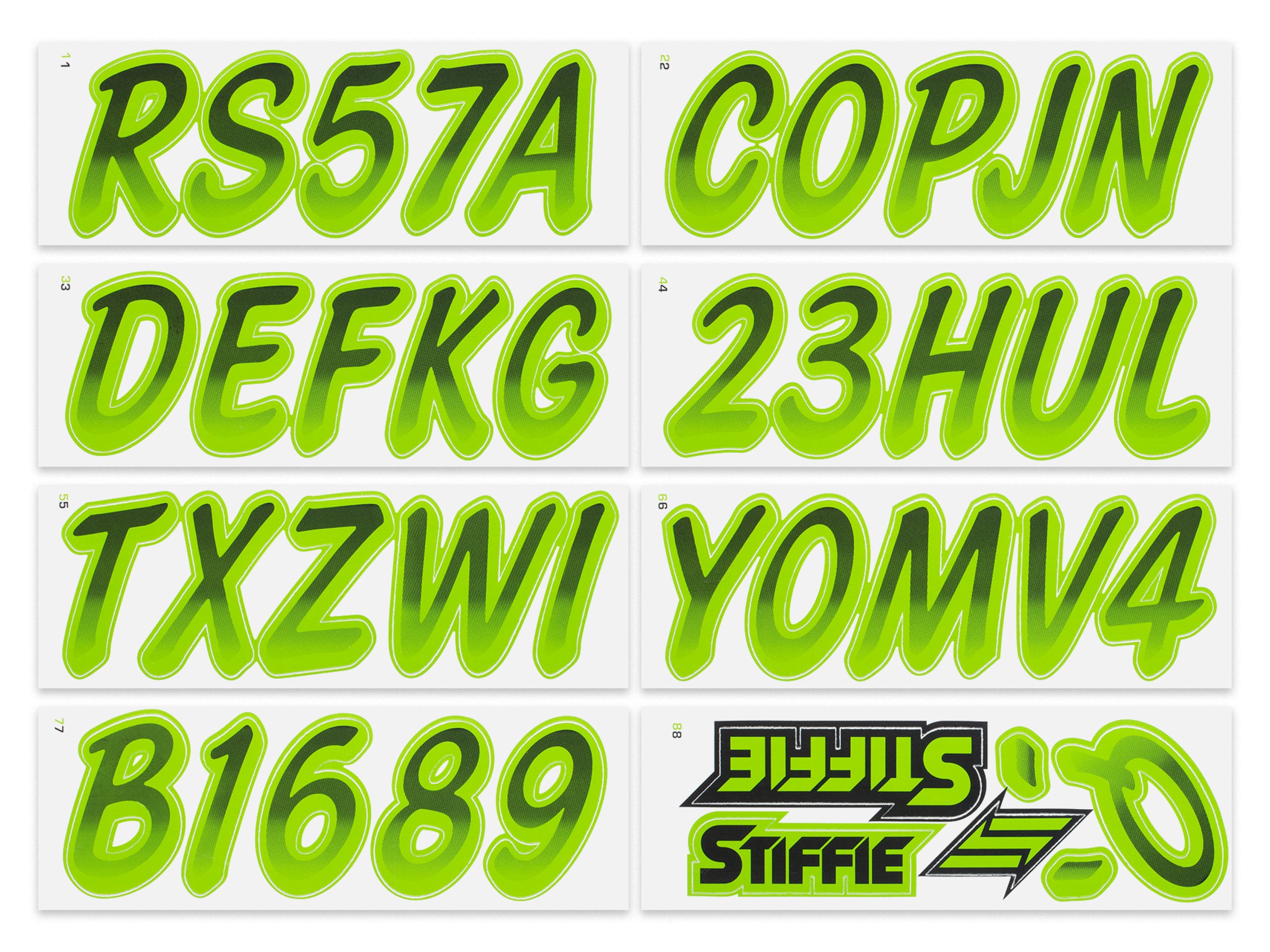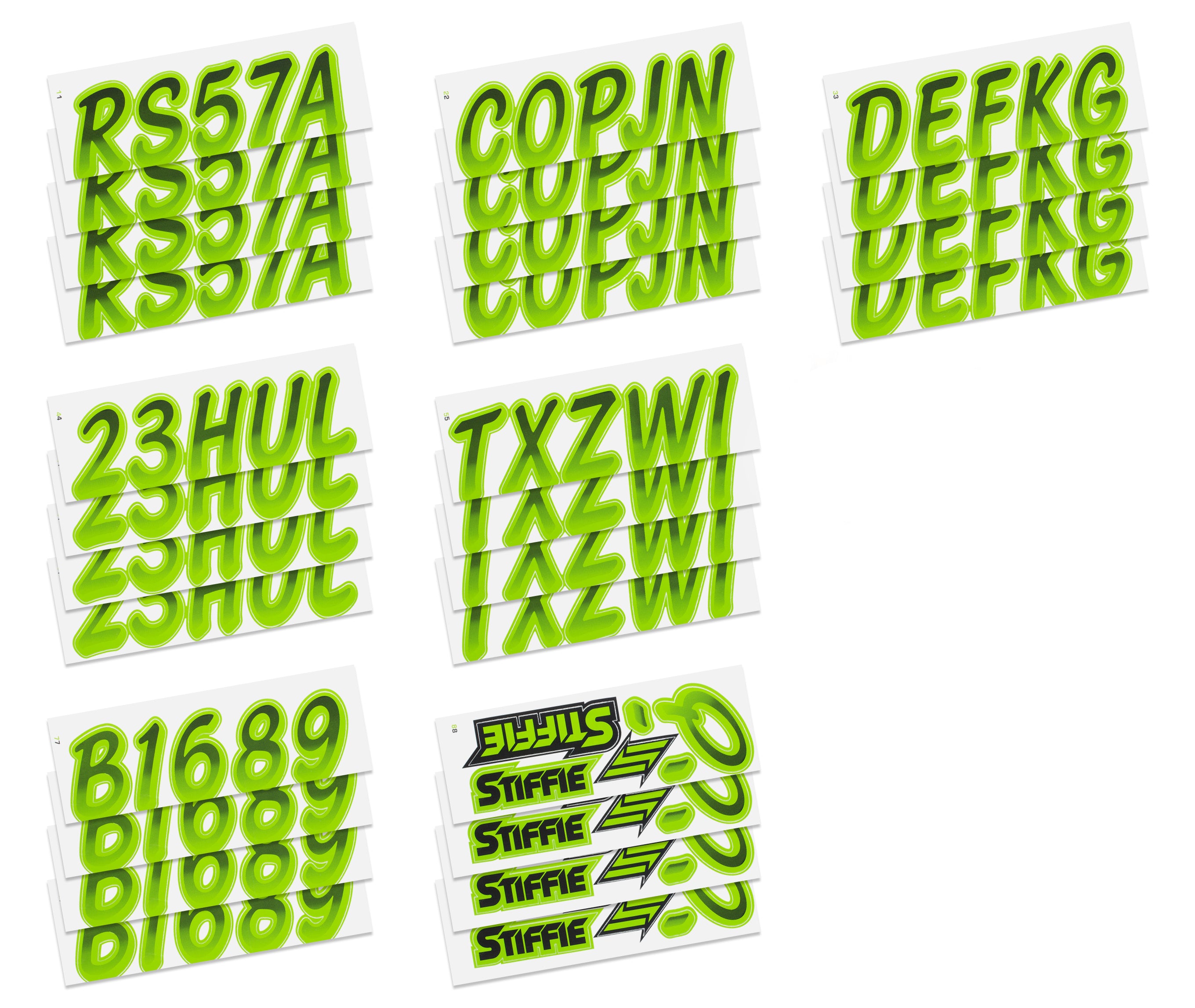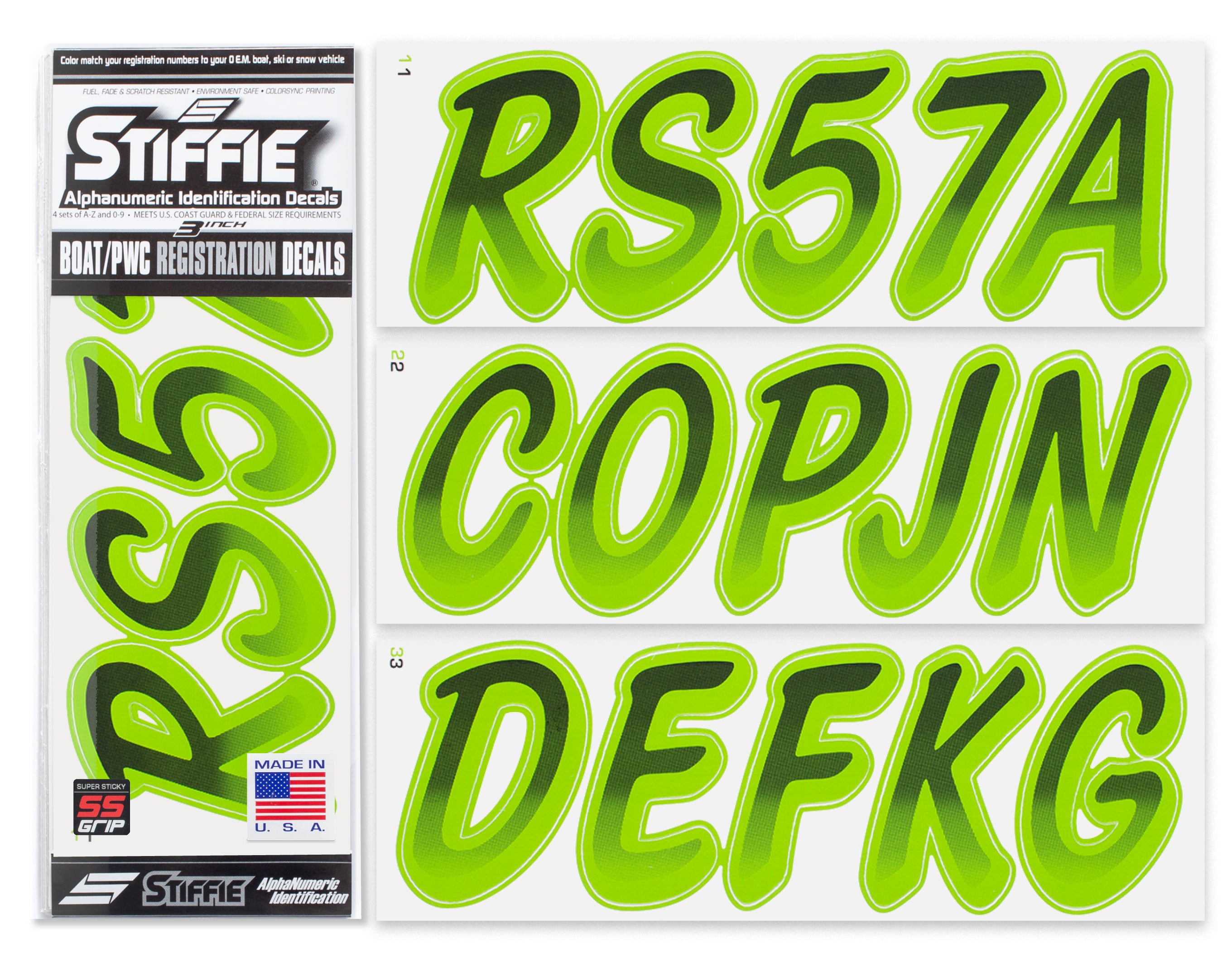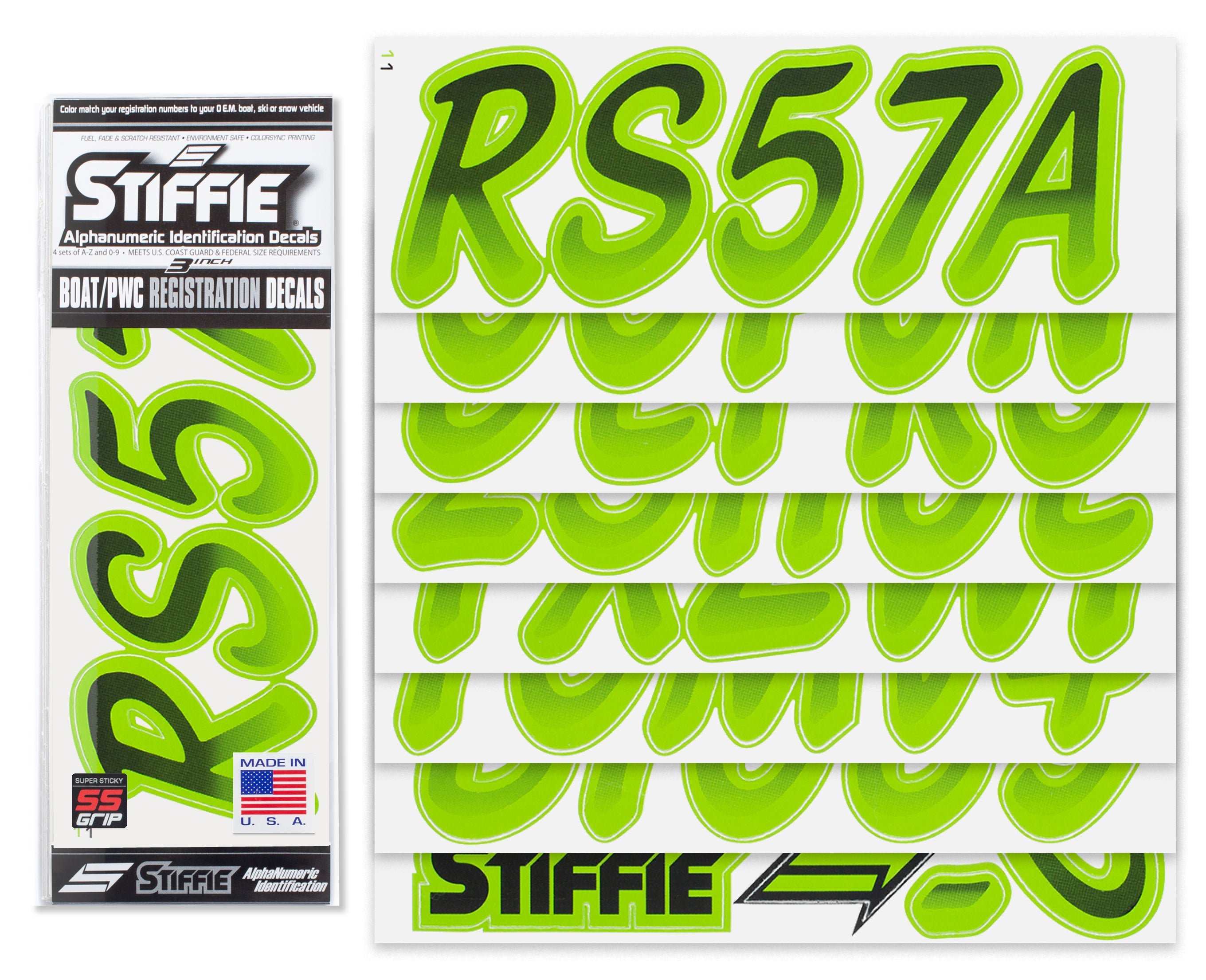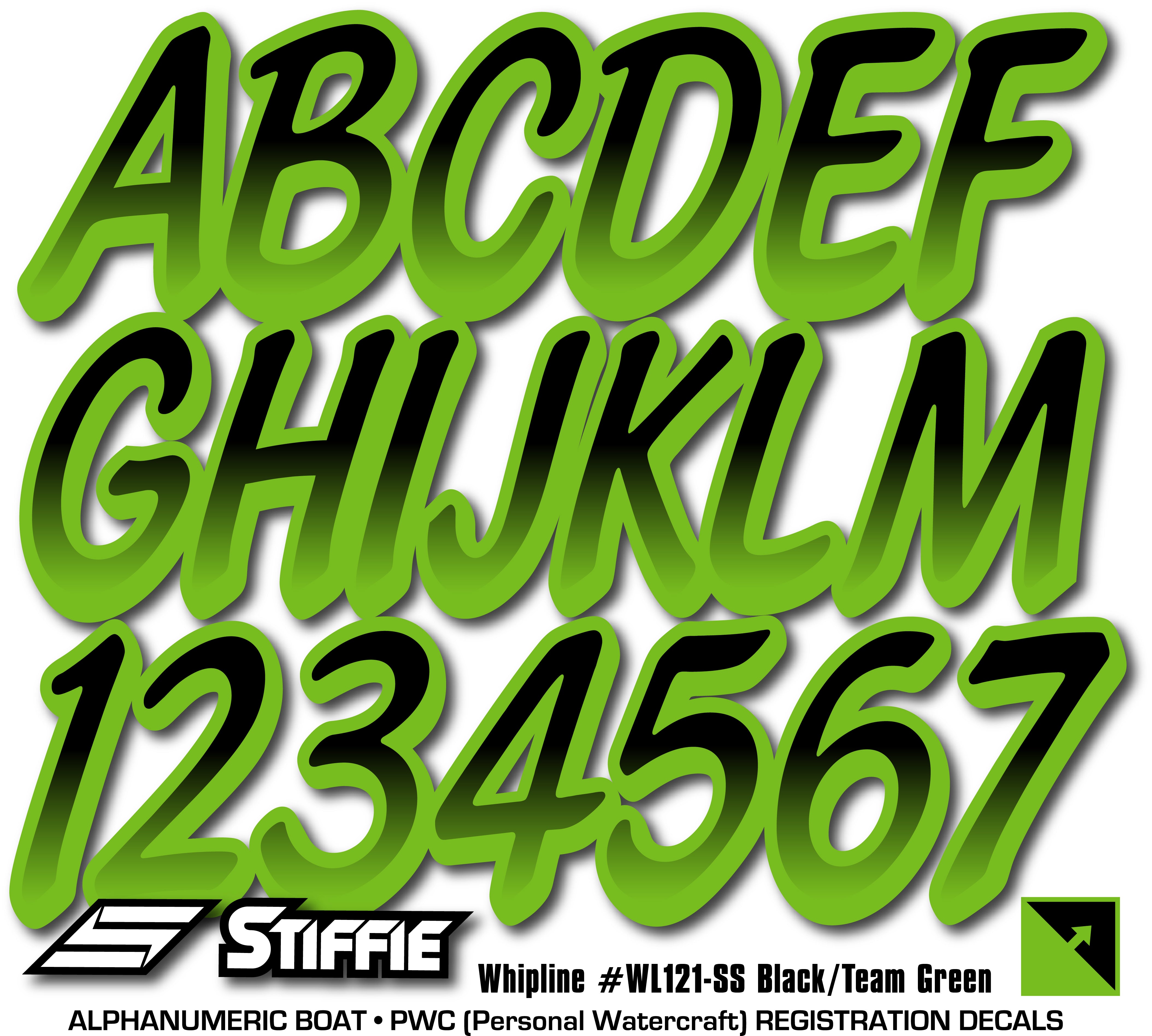 STIFFIE Whipline Black/Team Green 3" Super Sticky Boat & PWC Registration Decals • Numbers Letters Stickers