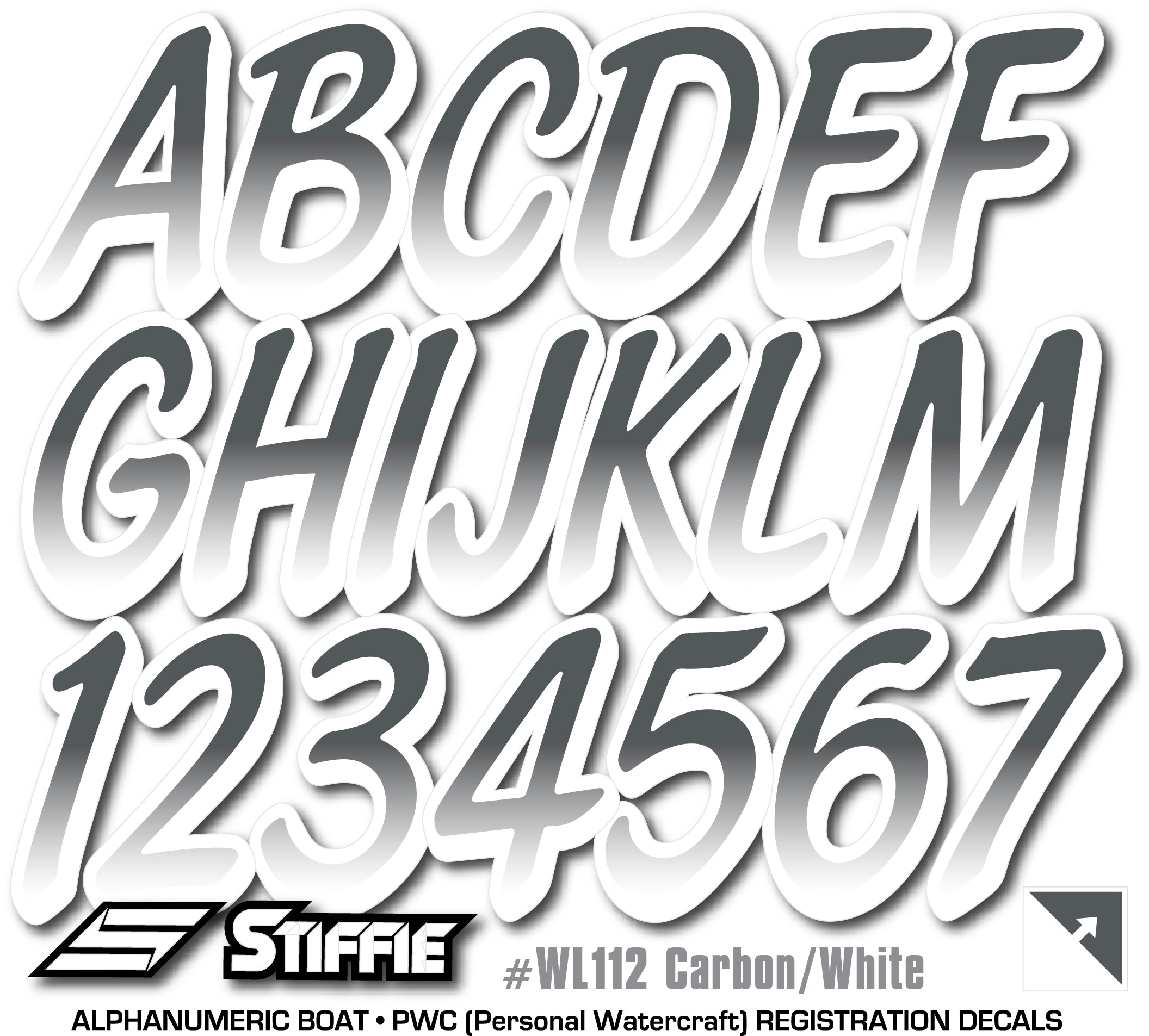 STIFFIE Whipline Carbon/White 3" Boat & PWC Registration Decals • Numbers Letters Stickers