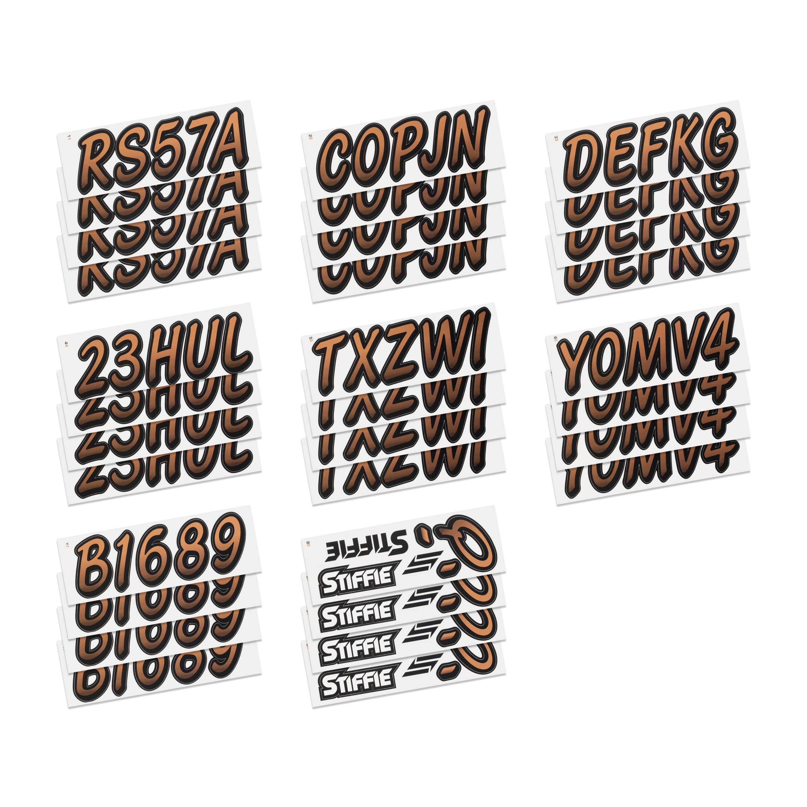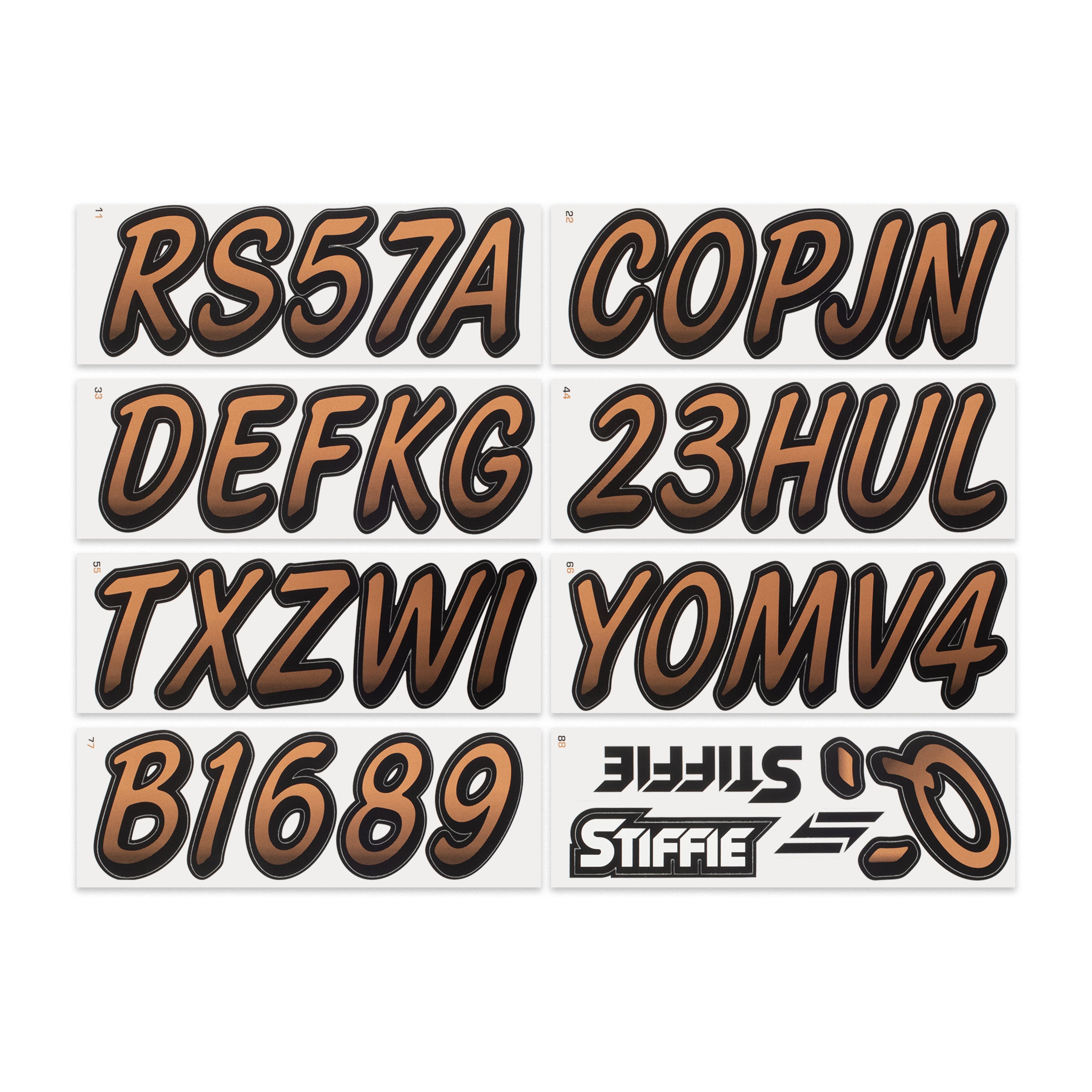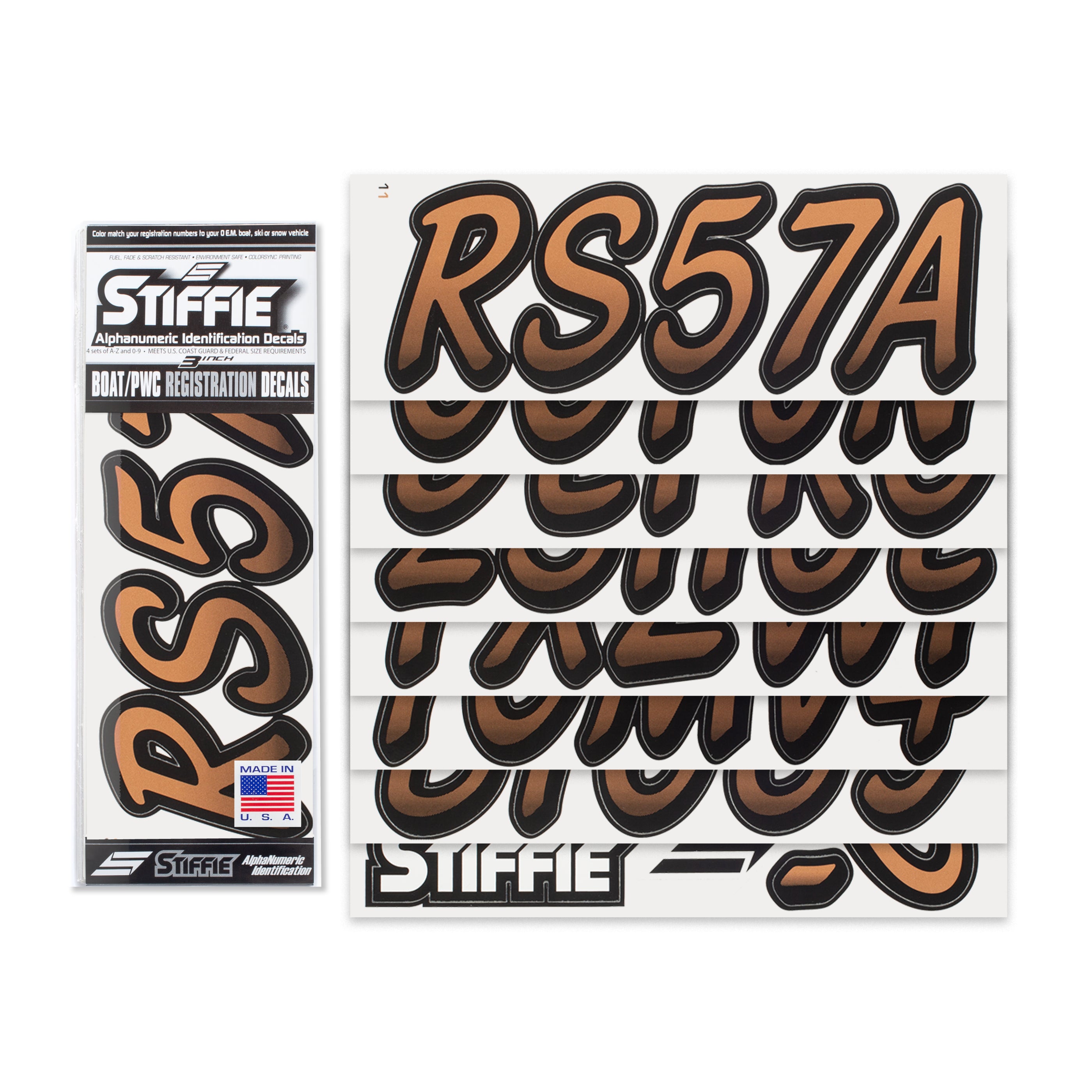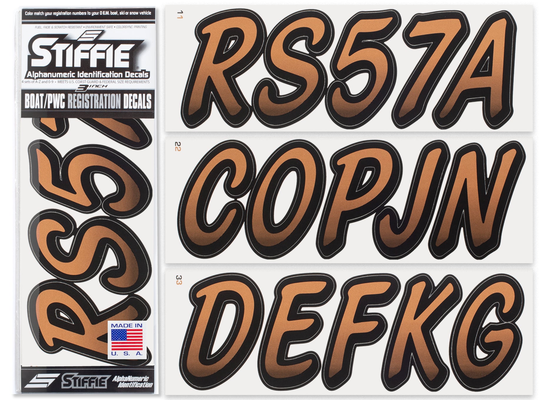 STIFFIE Whipline Metallic Copper/Black 3" Boat & PWC Registration Decals • Numbers Letters Stickers