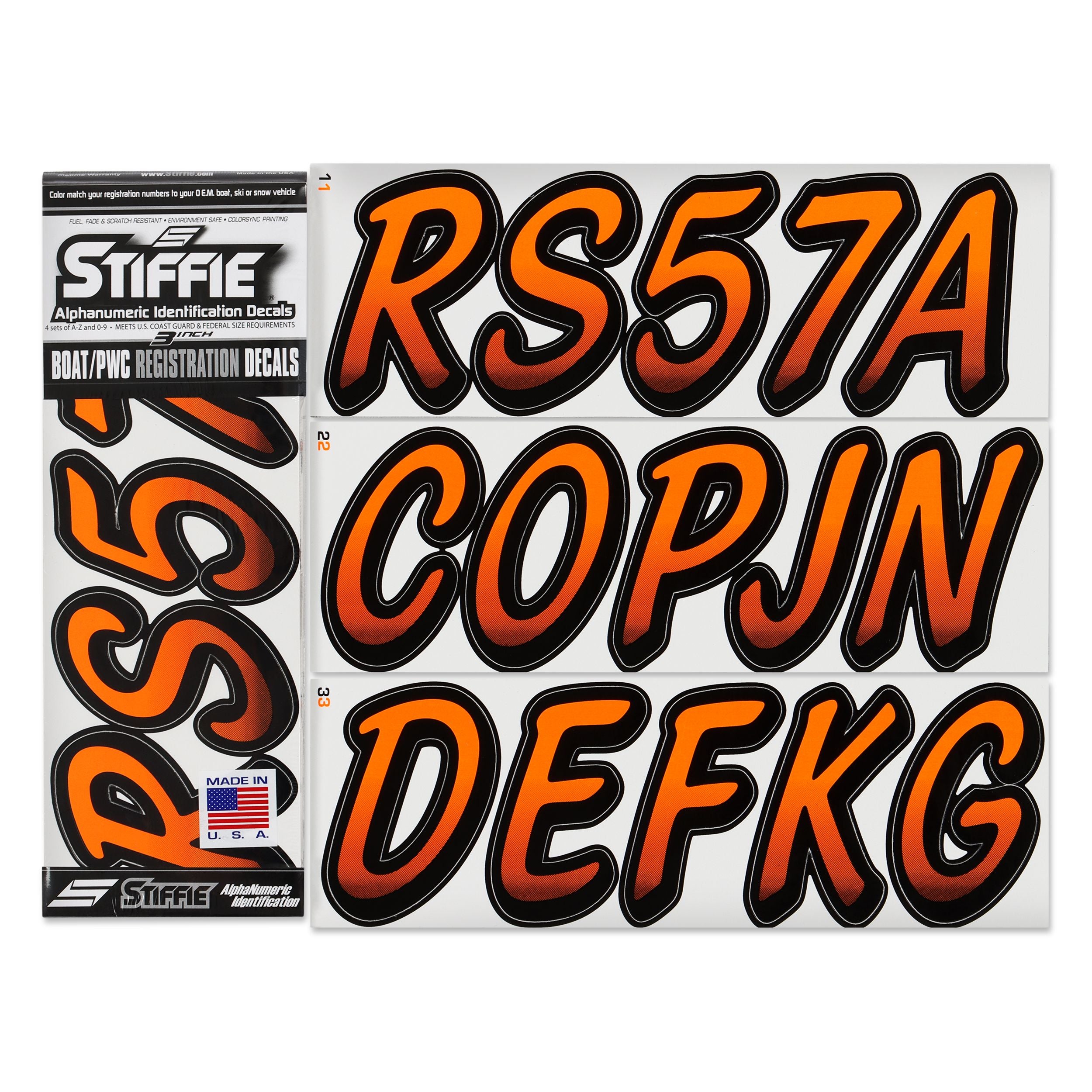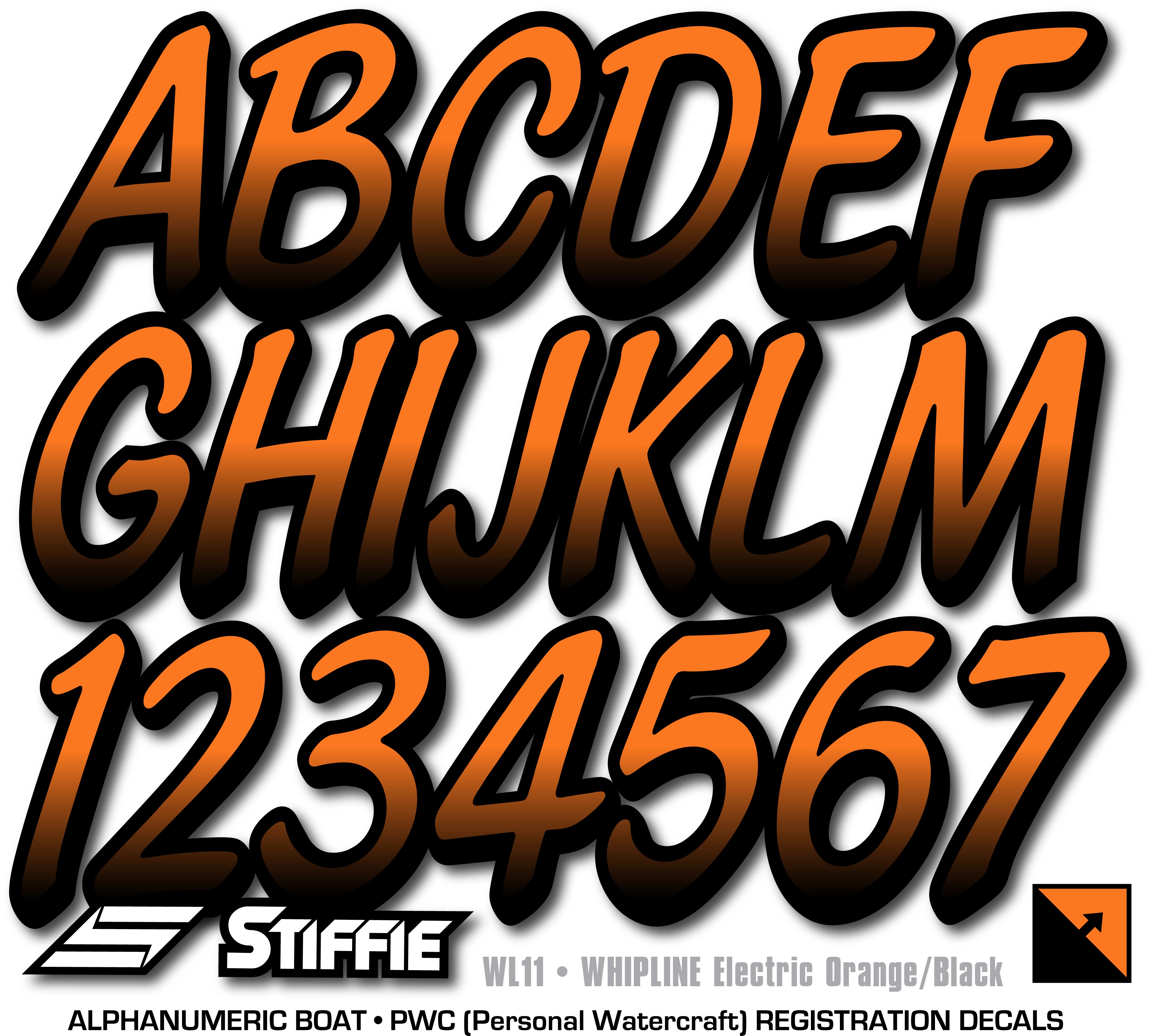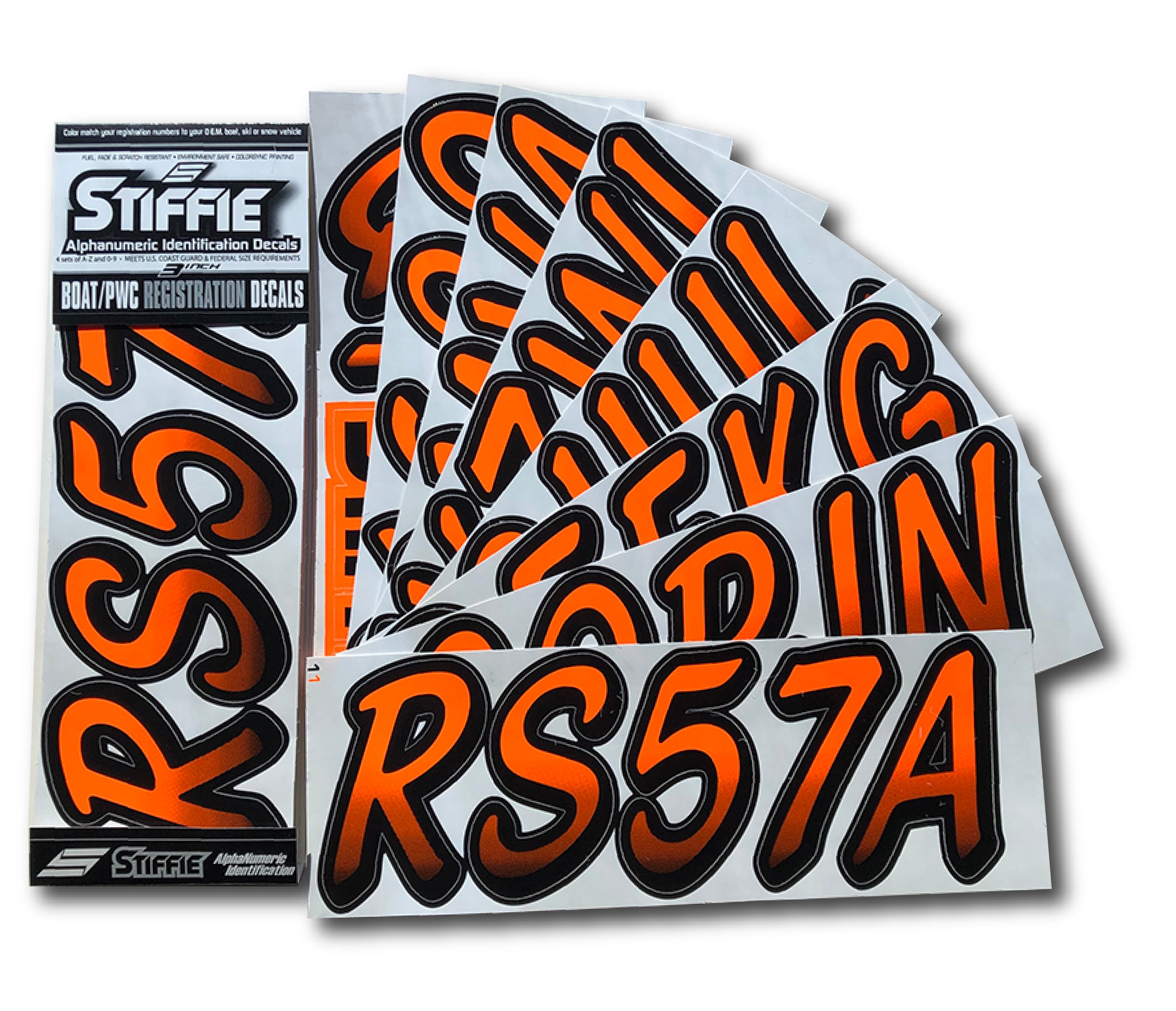 STIFFIE Whipline Electric Orange/Black 3" Boat & PWC Registration Decals • Numbers Letters Stickers