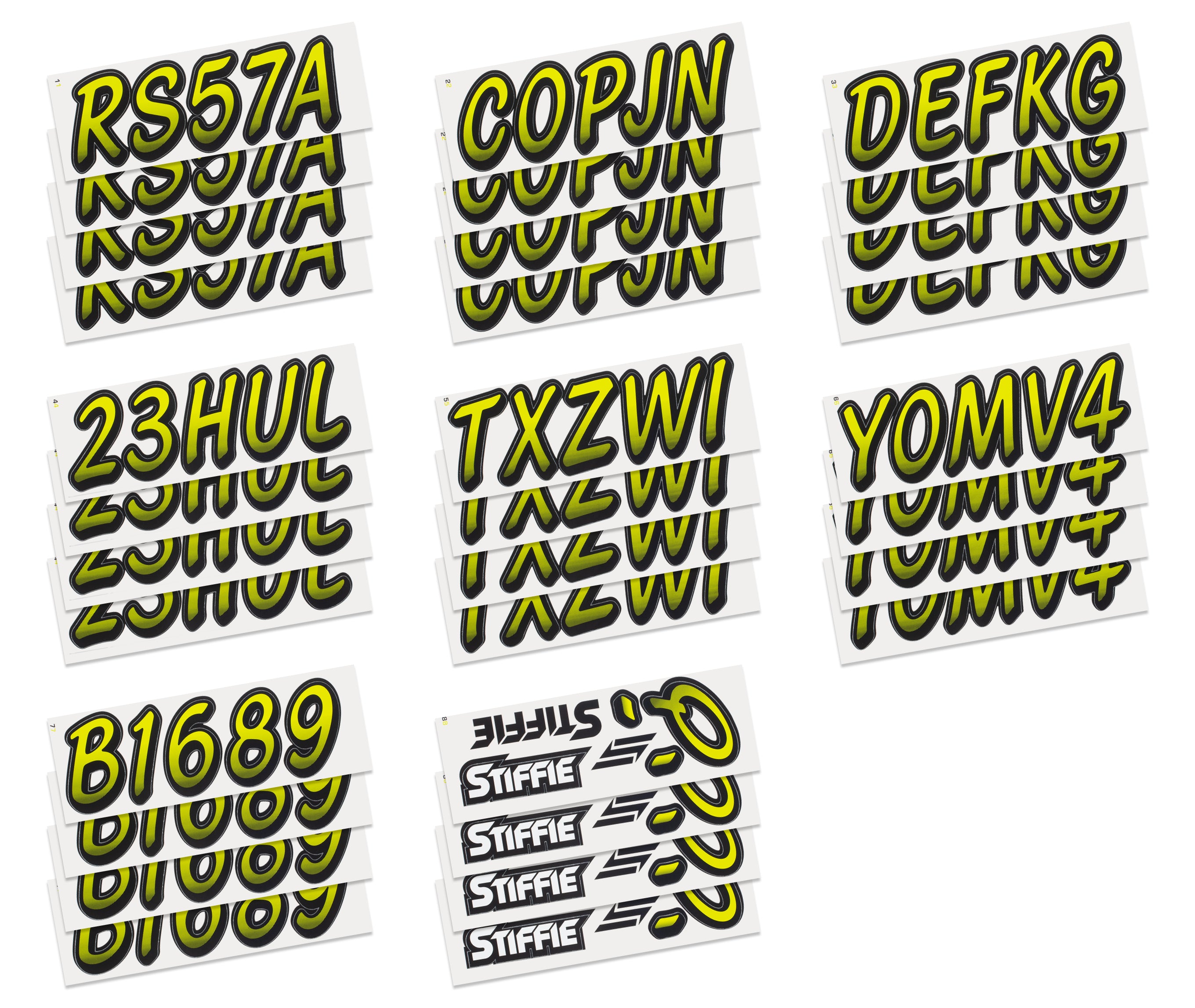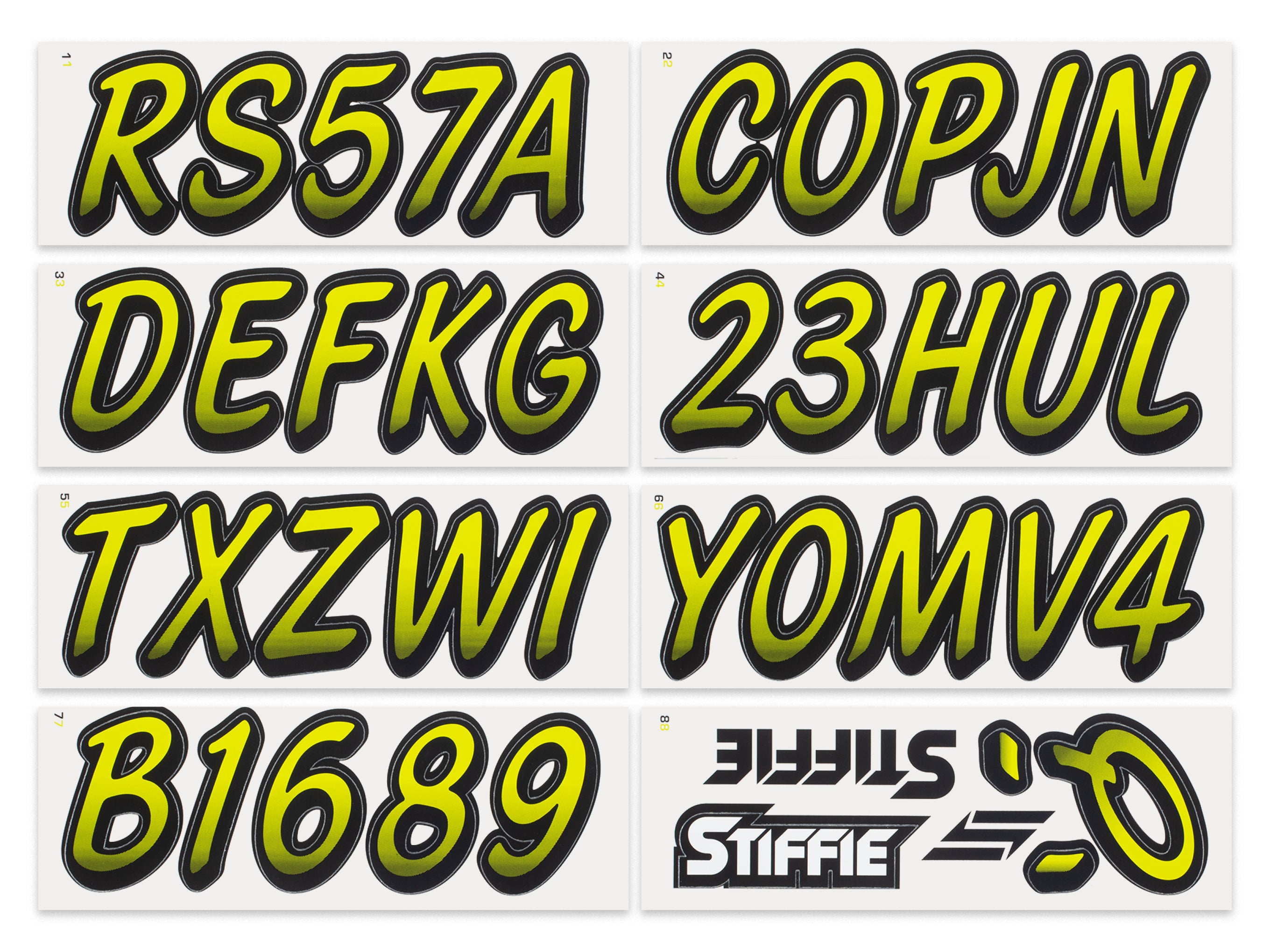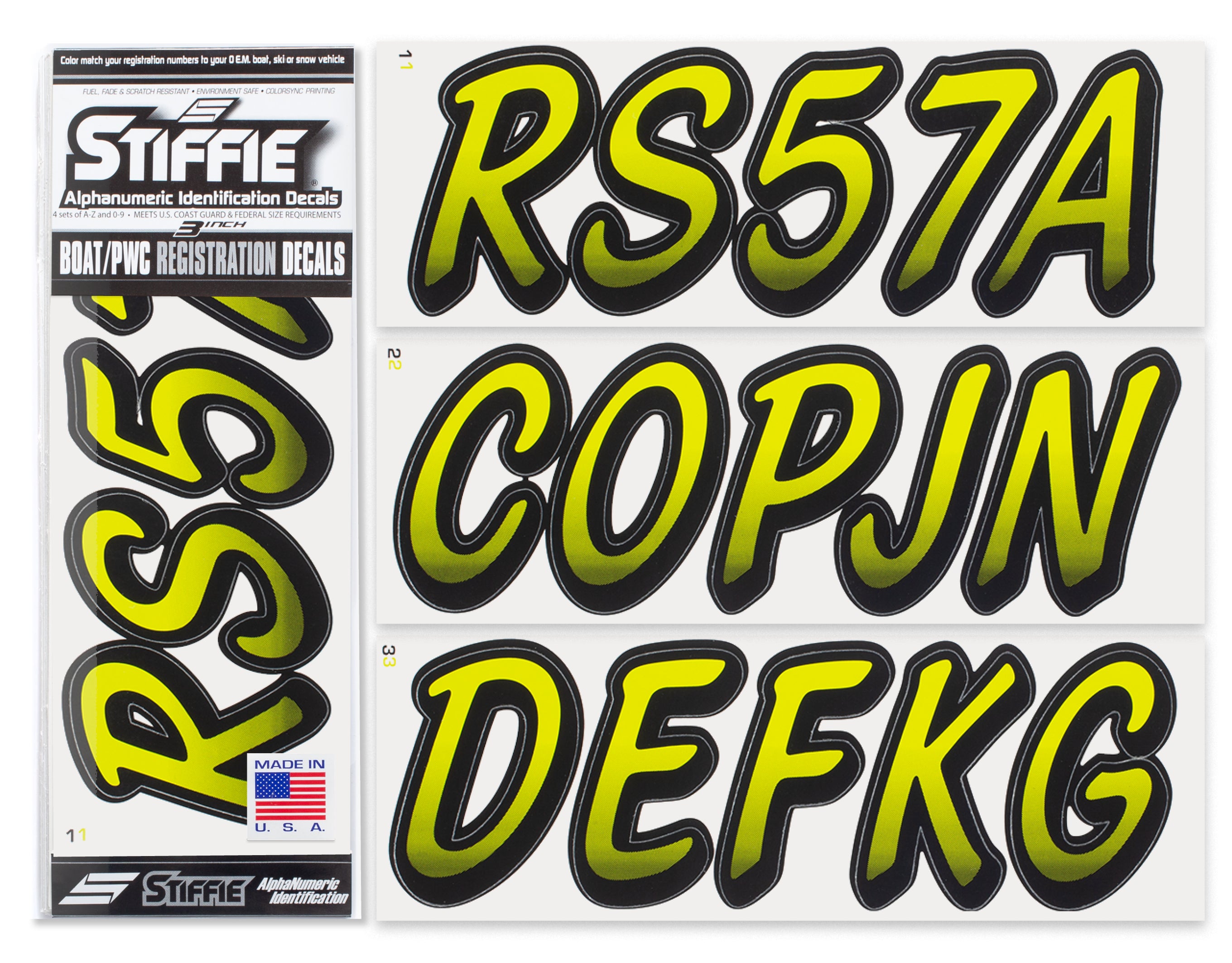 STIFFIE Whipline Electric Yellow/Black 3" Boat & PWC Registration Decals • Numbers Letters Stickers