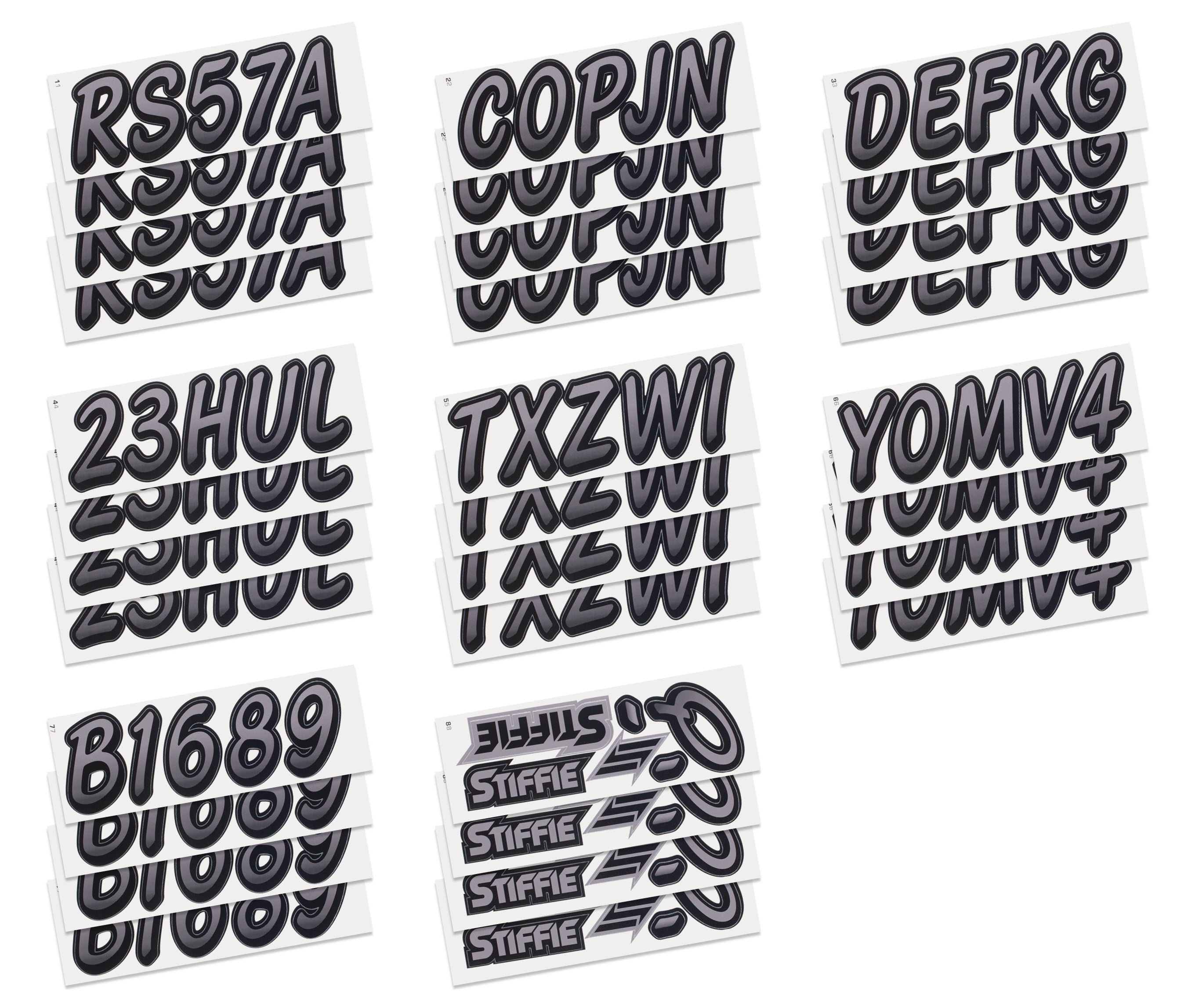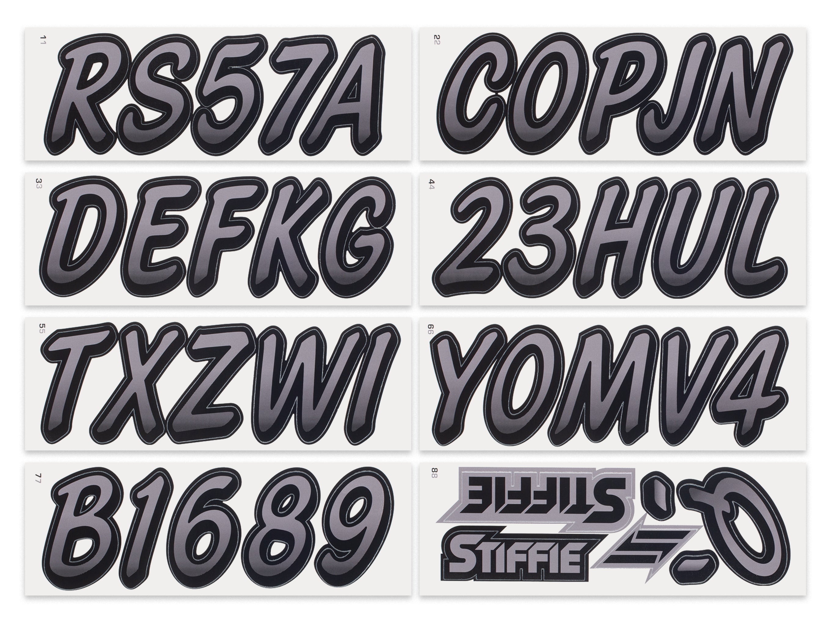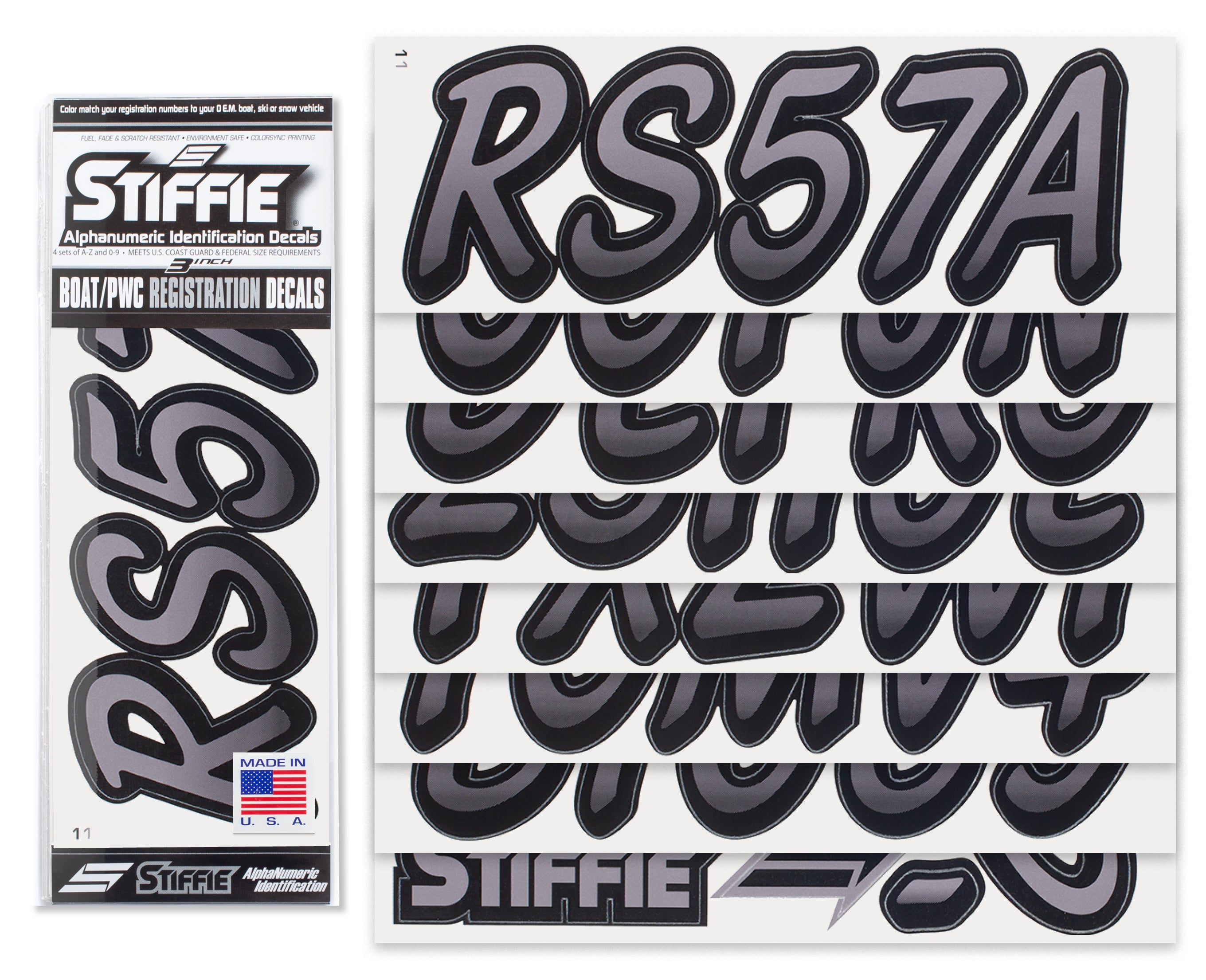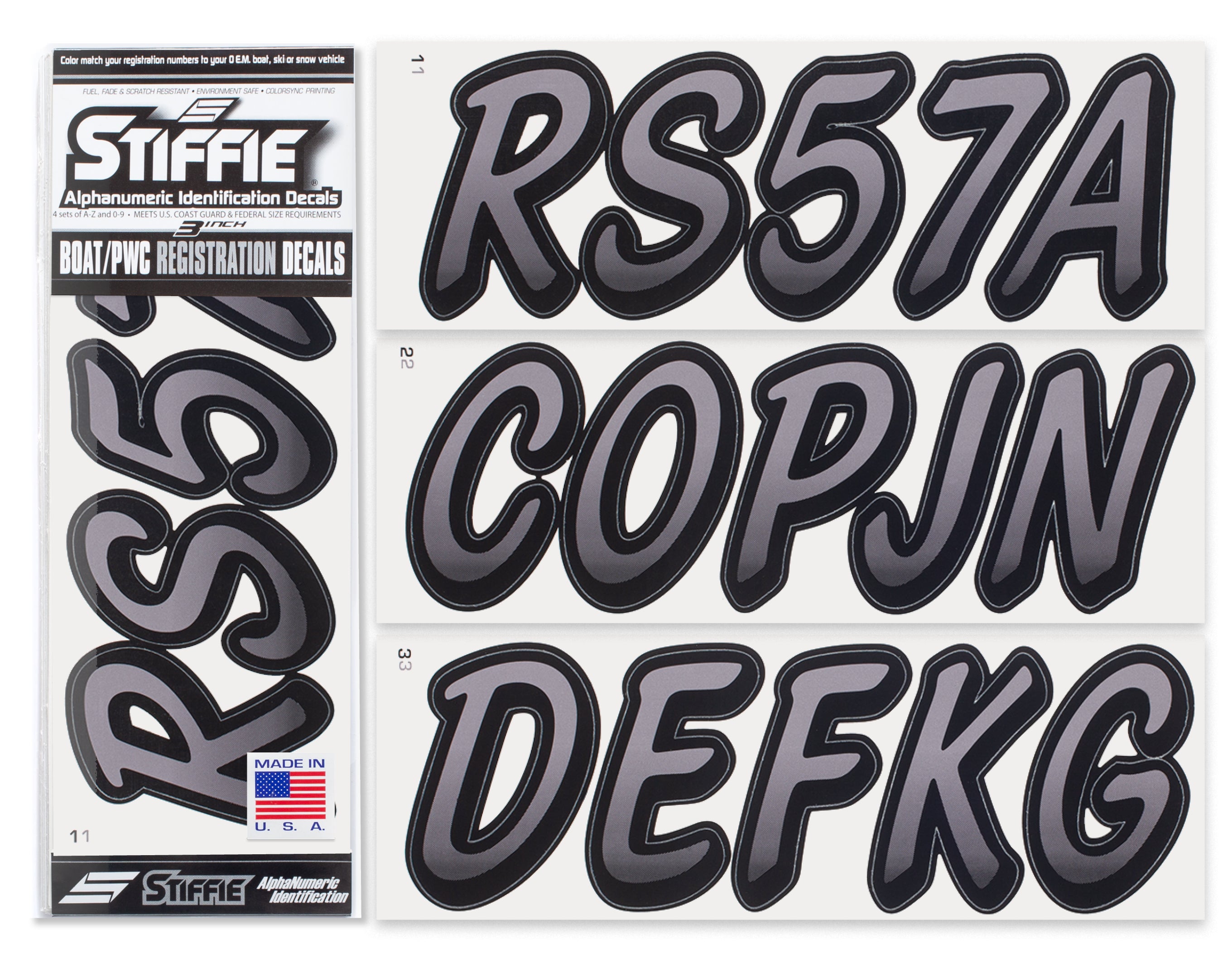 STIFFIE Whipline Gunmetal/Black 3" Boat & PWC Registration Decals • Numbers Letters Stickers