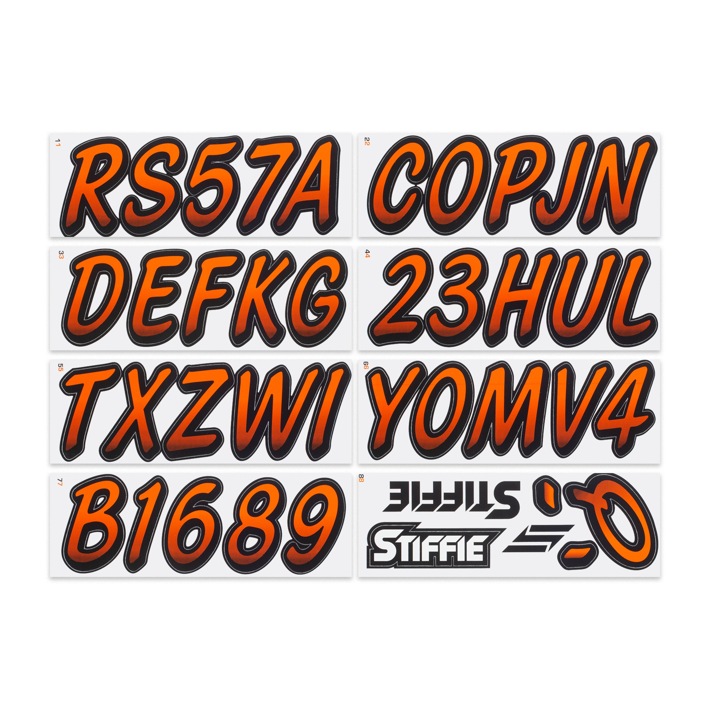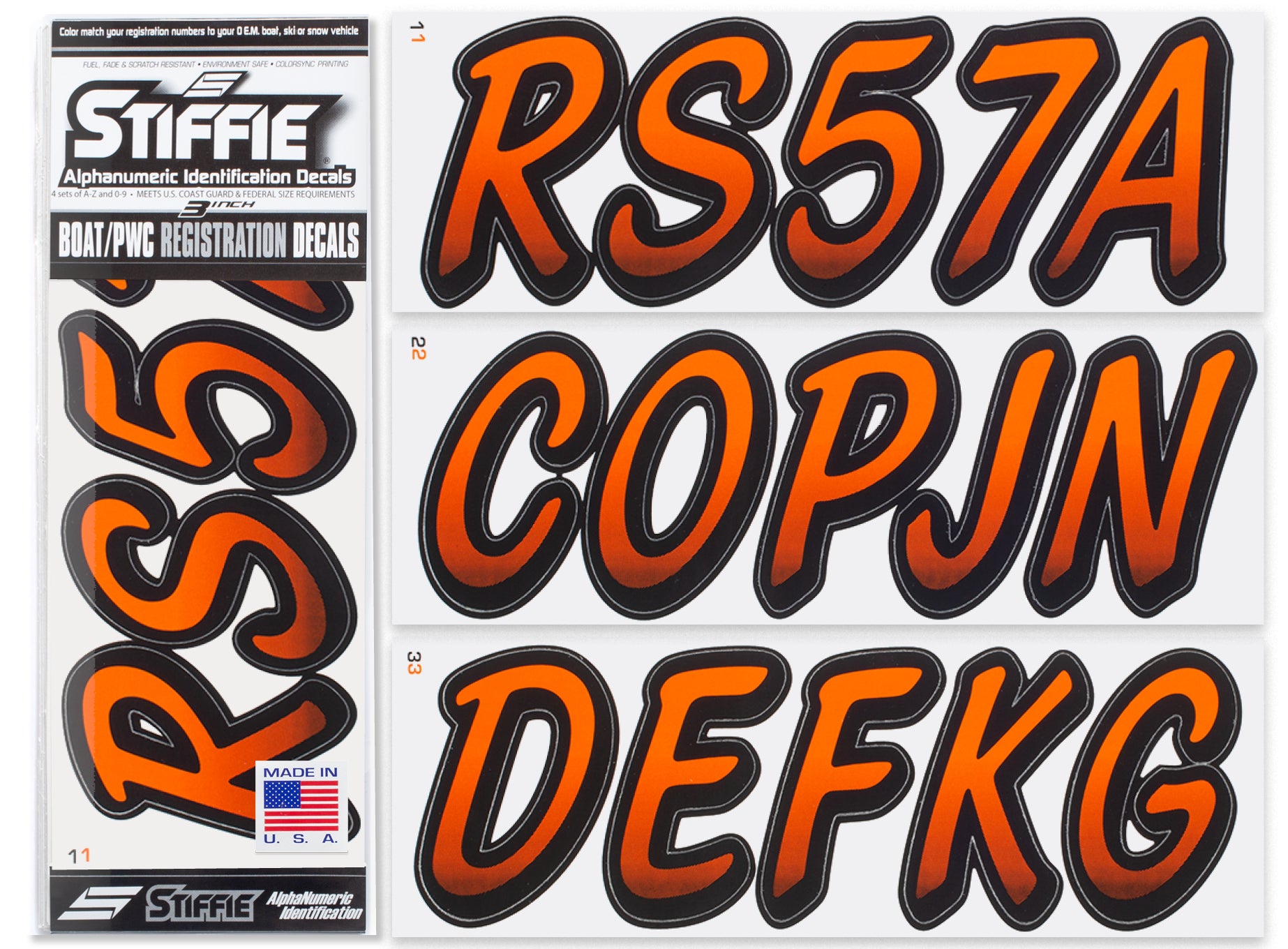 STIFFIE Whipline Orange/Black 3" Boat & PWC Registration Decals • Numbers Letters Stickers