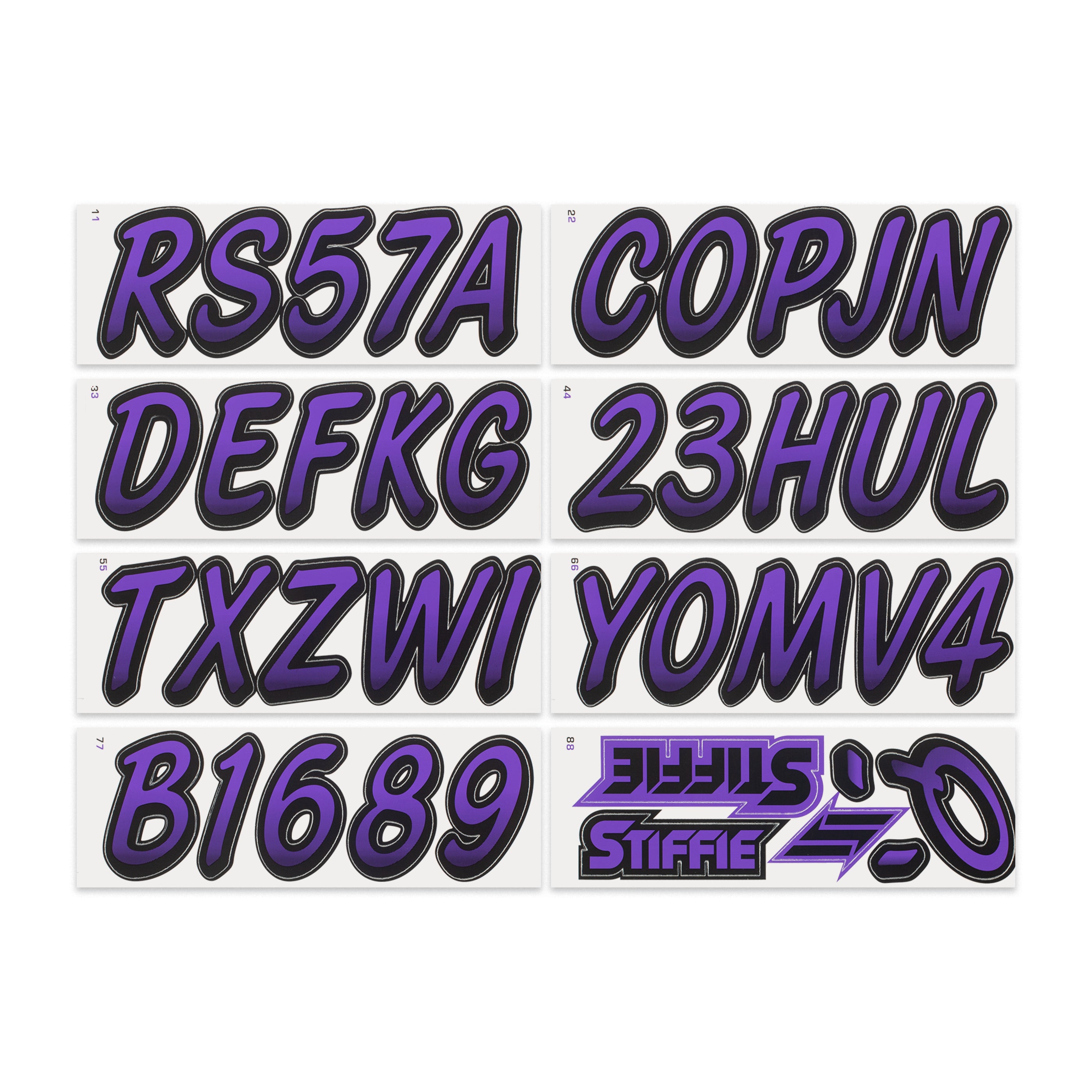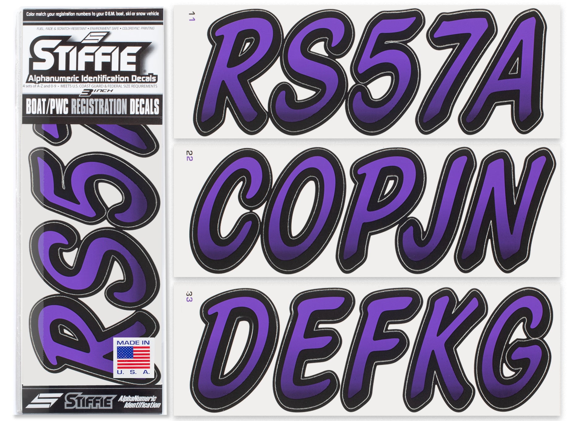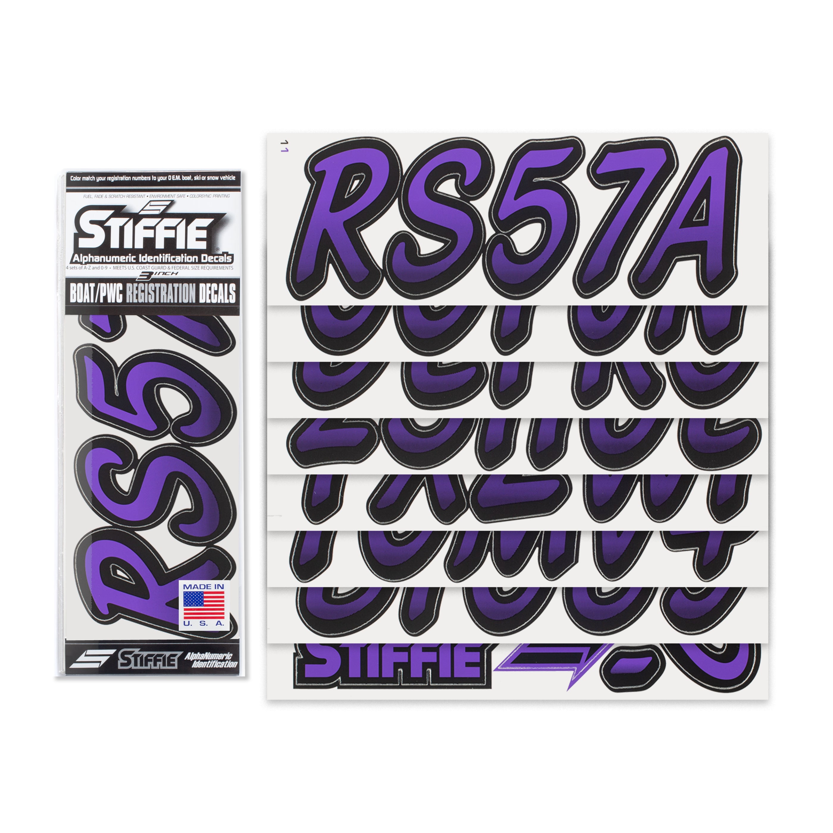 STIFFIE Whipline Purple/Black 3" Boat & PWC Registration Decals • Numbers Letters Stickers