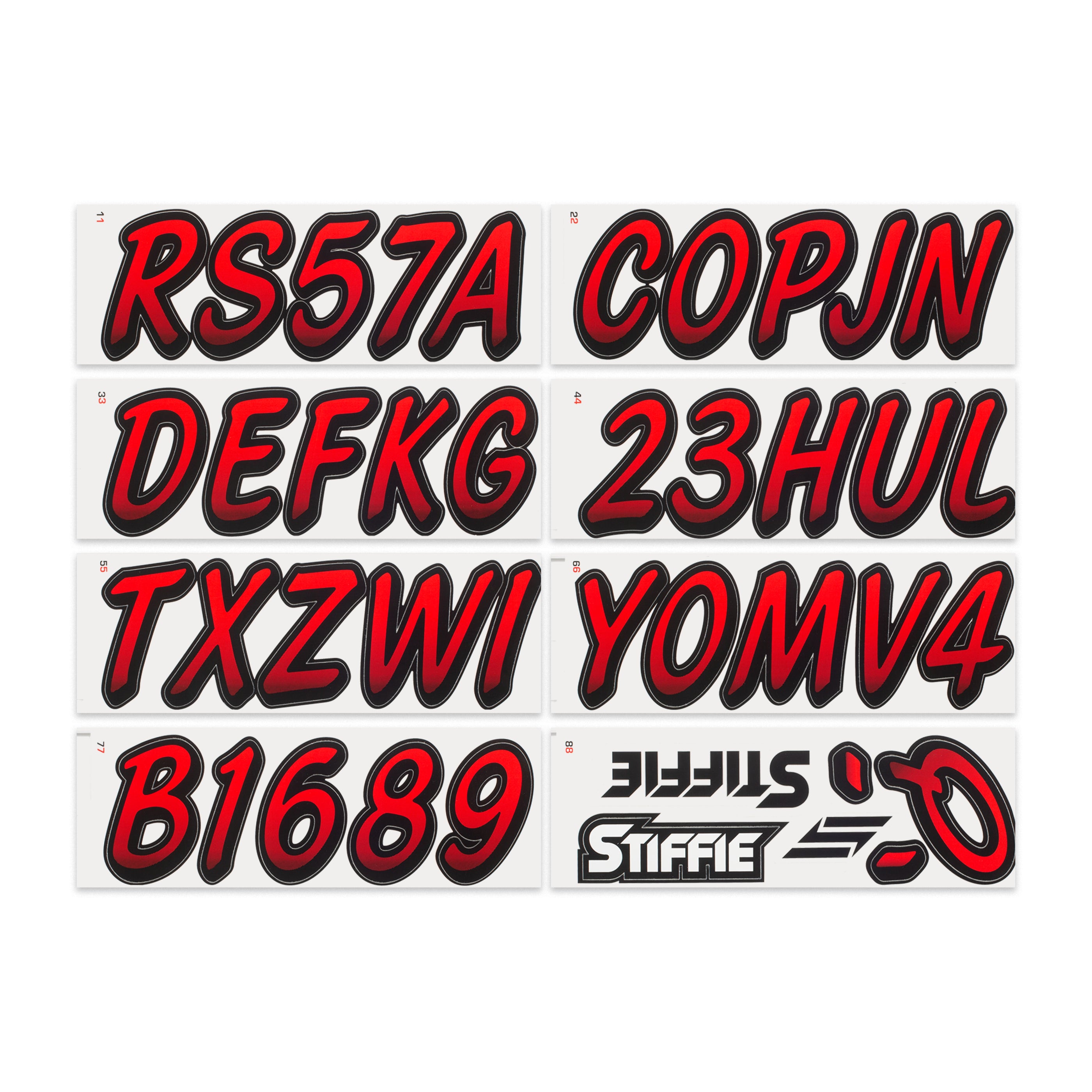 STIFFIE Whipline Red/Black 3" Boat & PWC Registration Decals • Numbers Letters Stickers