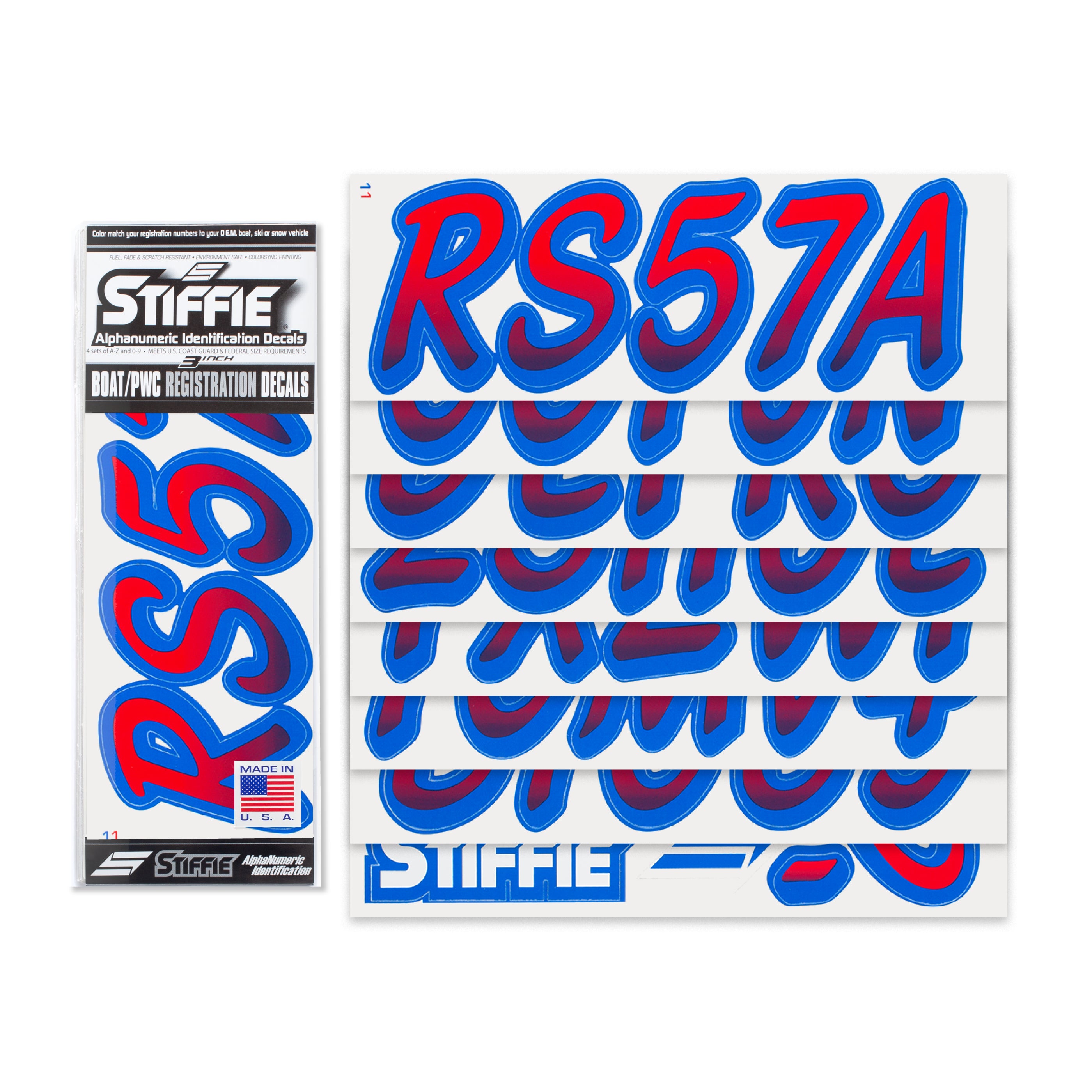 STIFFIE Whipline Red/Blue 3" Boat & PWC Registration Decals • Numbers Letters Stickers