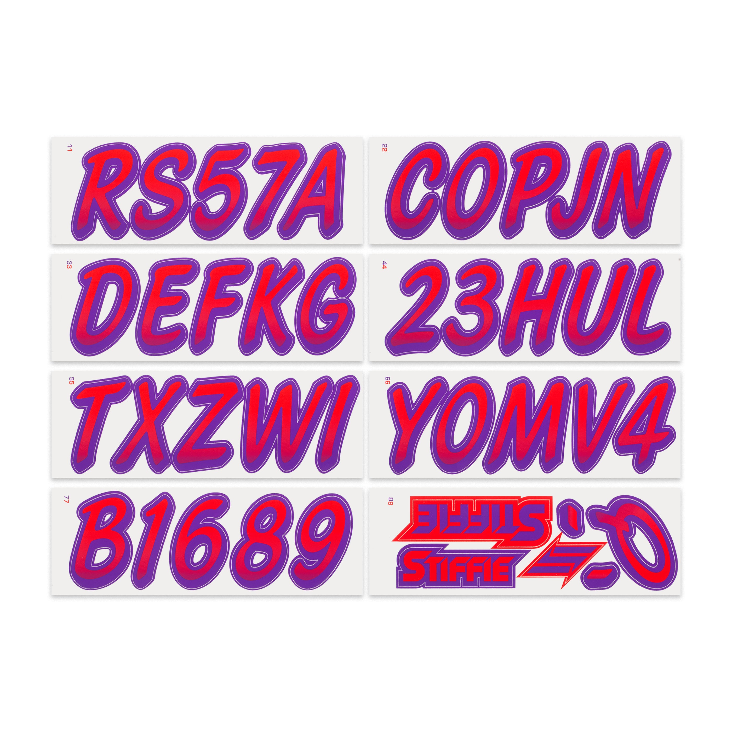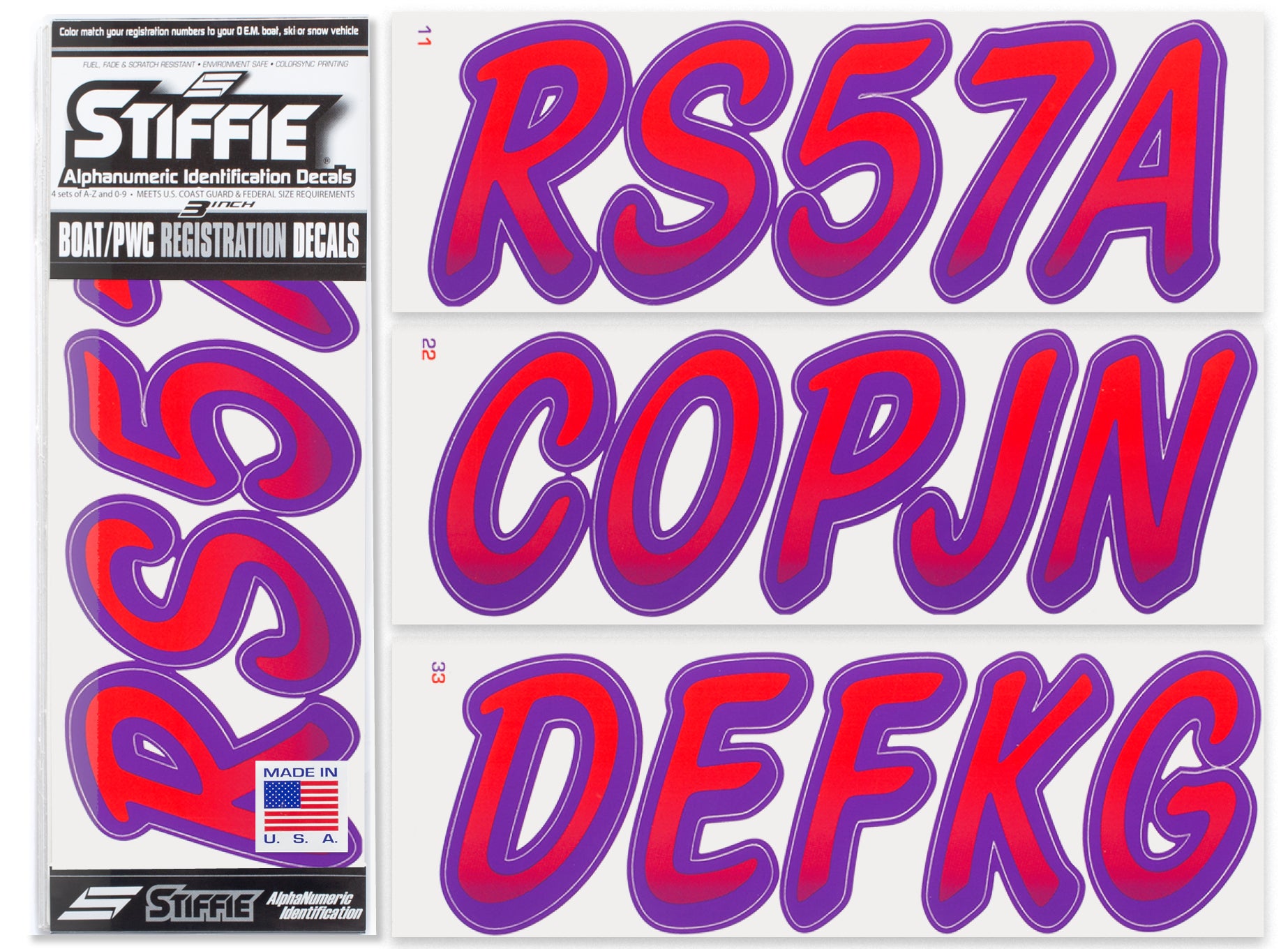 STIFFIE Whipline Red/Purple 3" Boat & PWC Registration Decals • Numbers Letters Stickers