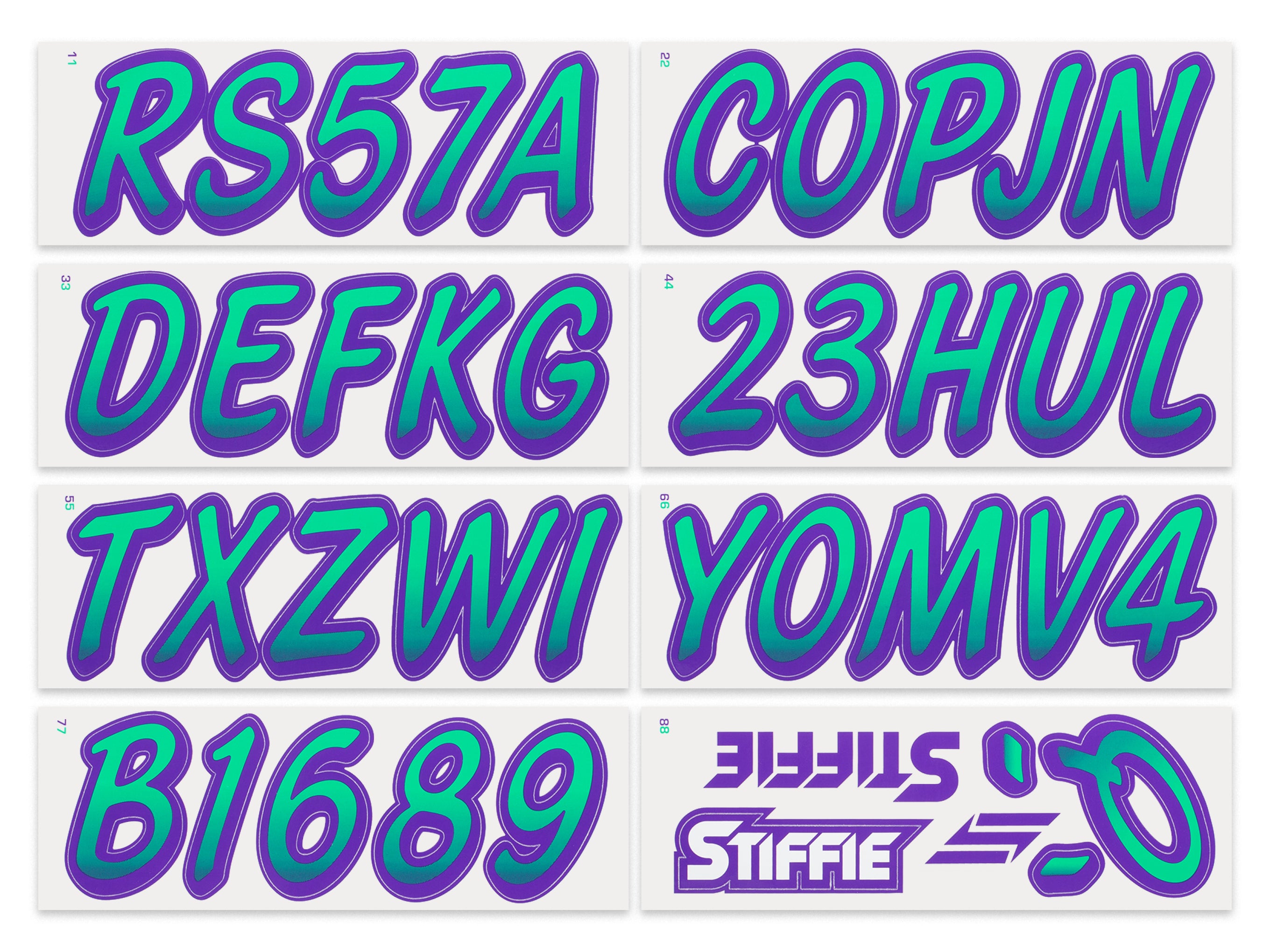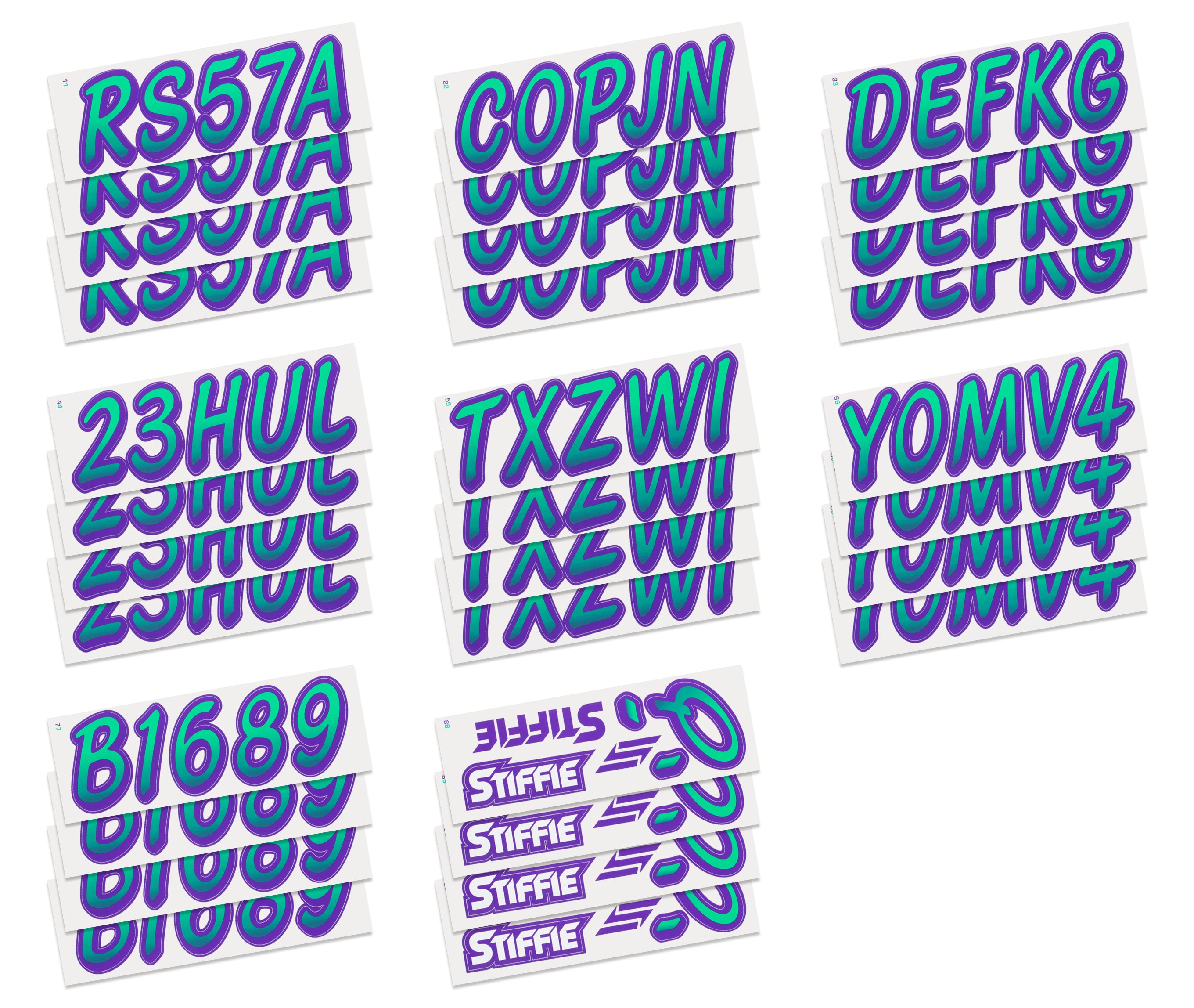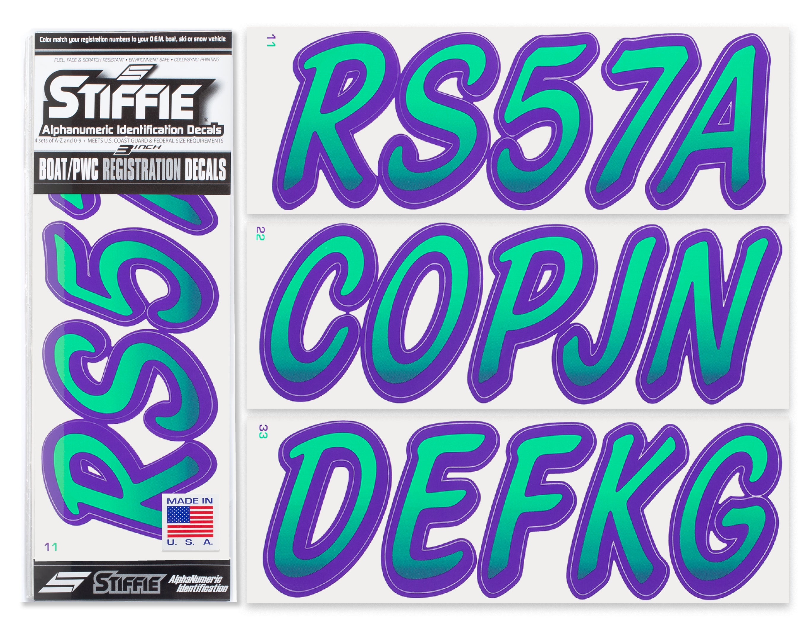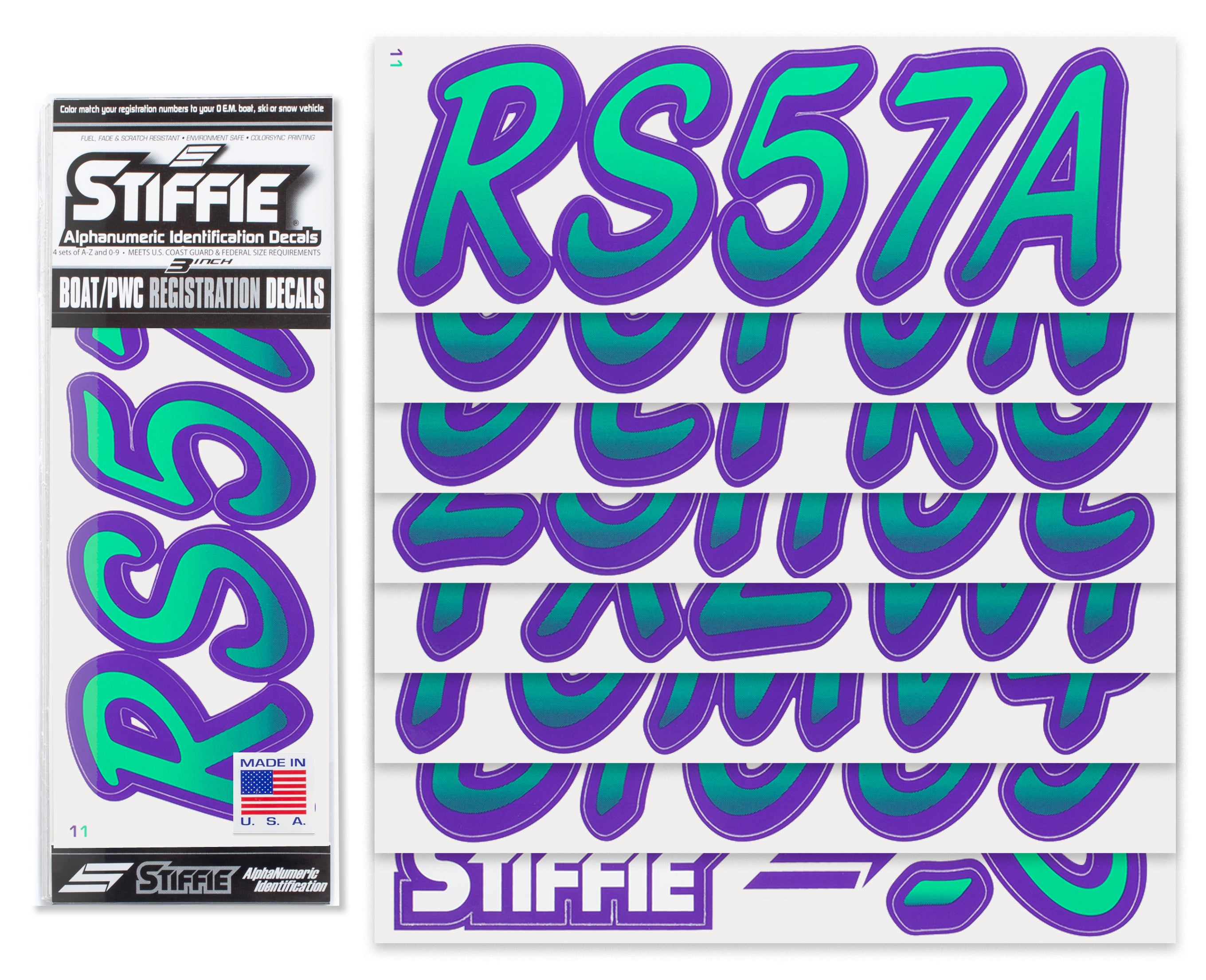 STIFFIE Whipline Seafoam Green/Purple 3" Boat & PWC Registration Decals • Numbers Letters Stickers