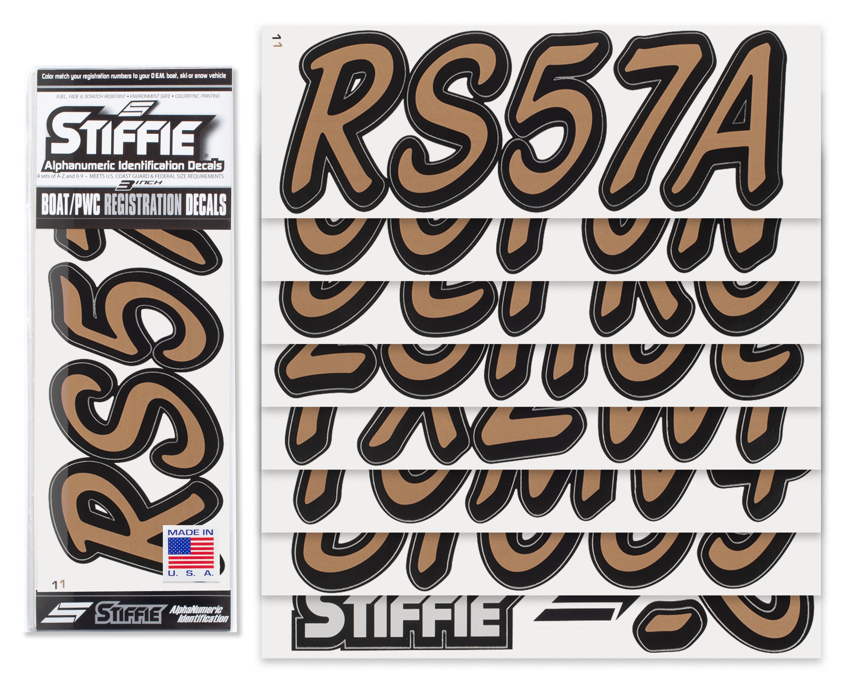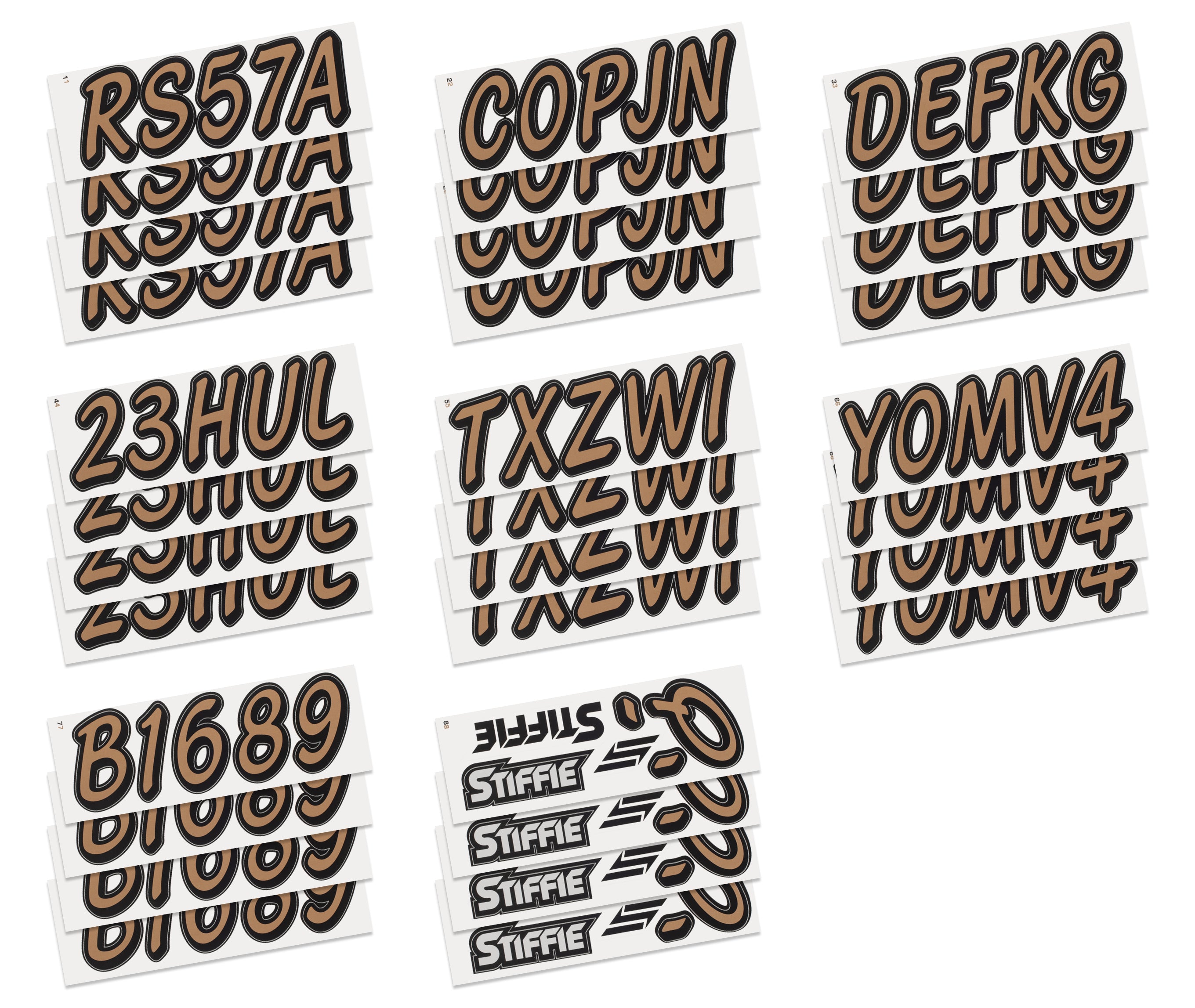 STIFFIE Whipline Solid Copper/Black 3” Boat & PWC Registration Decals • Numbers Letters Stickers