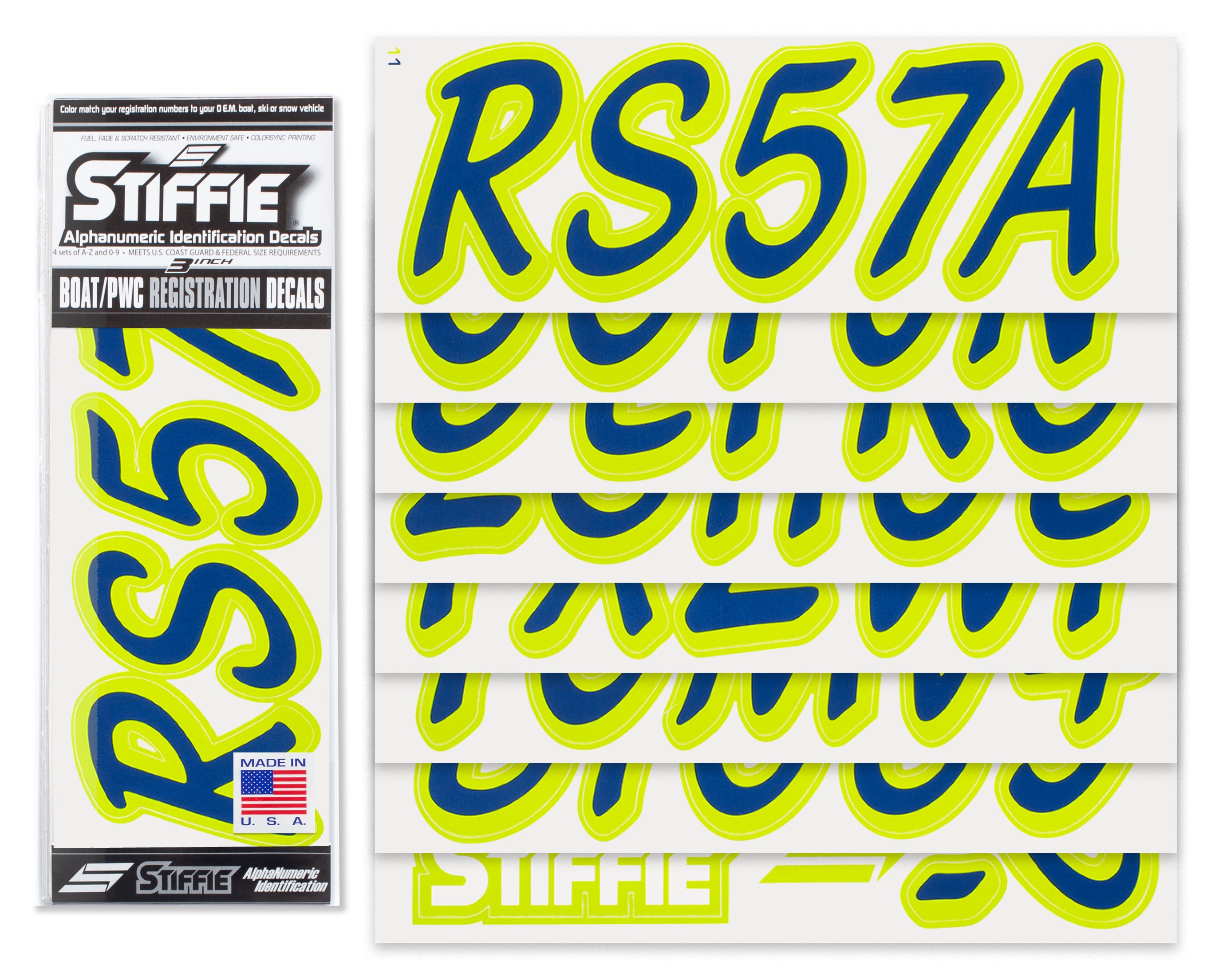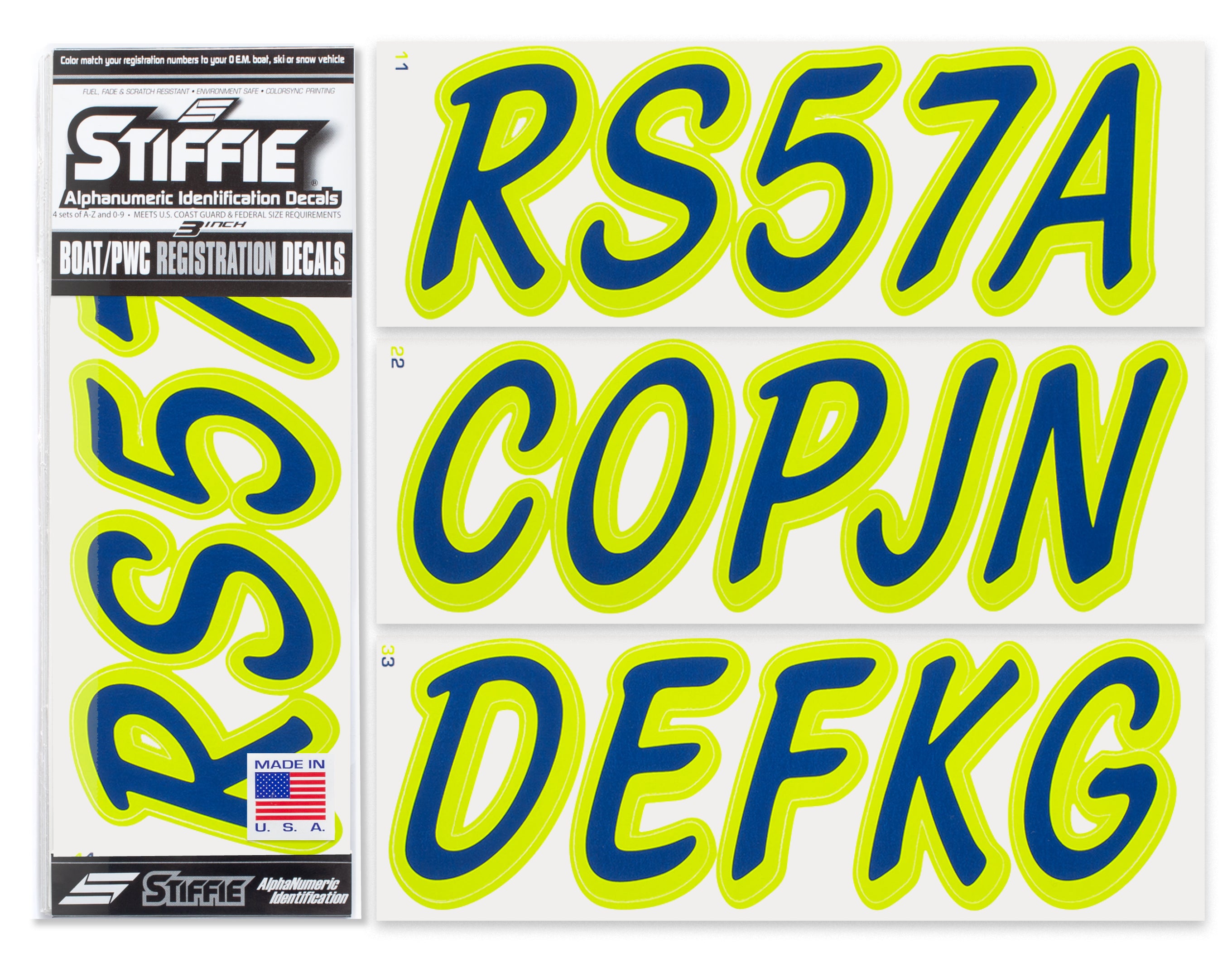 STIFFIE Whipline Solid Navy/Atomic Green 3” Boat & PWC Registration Decals • Numbers Letters Stickers