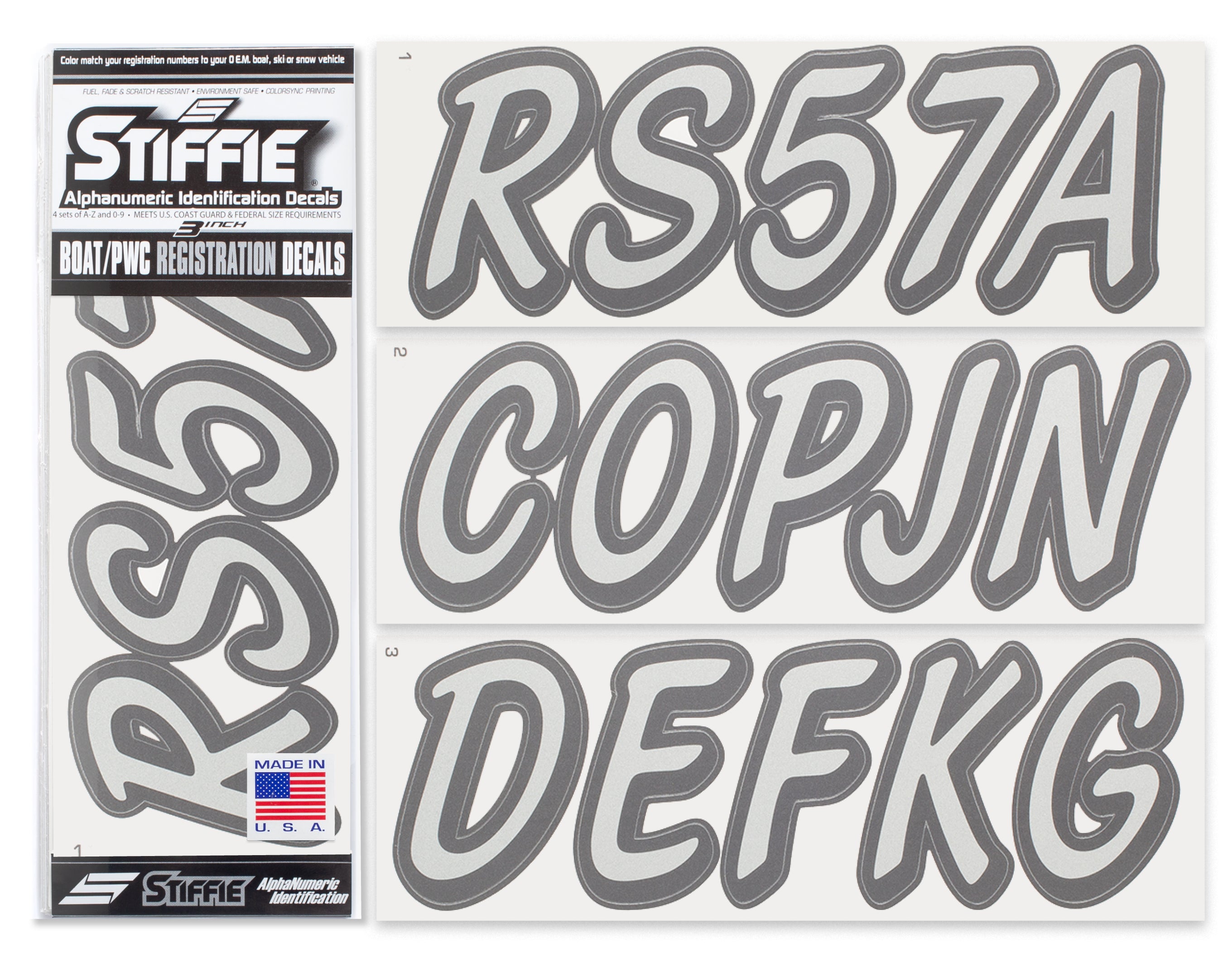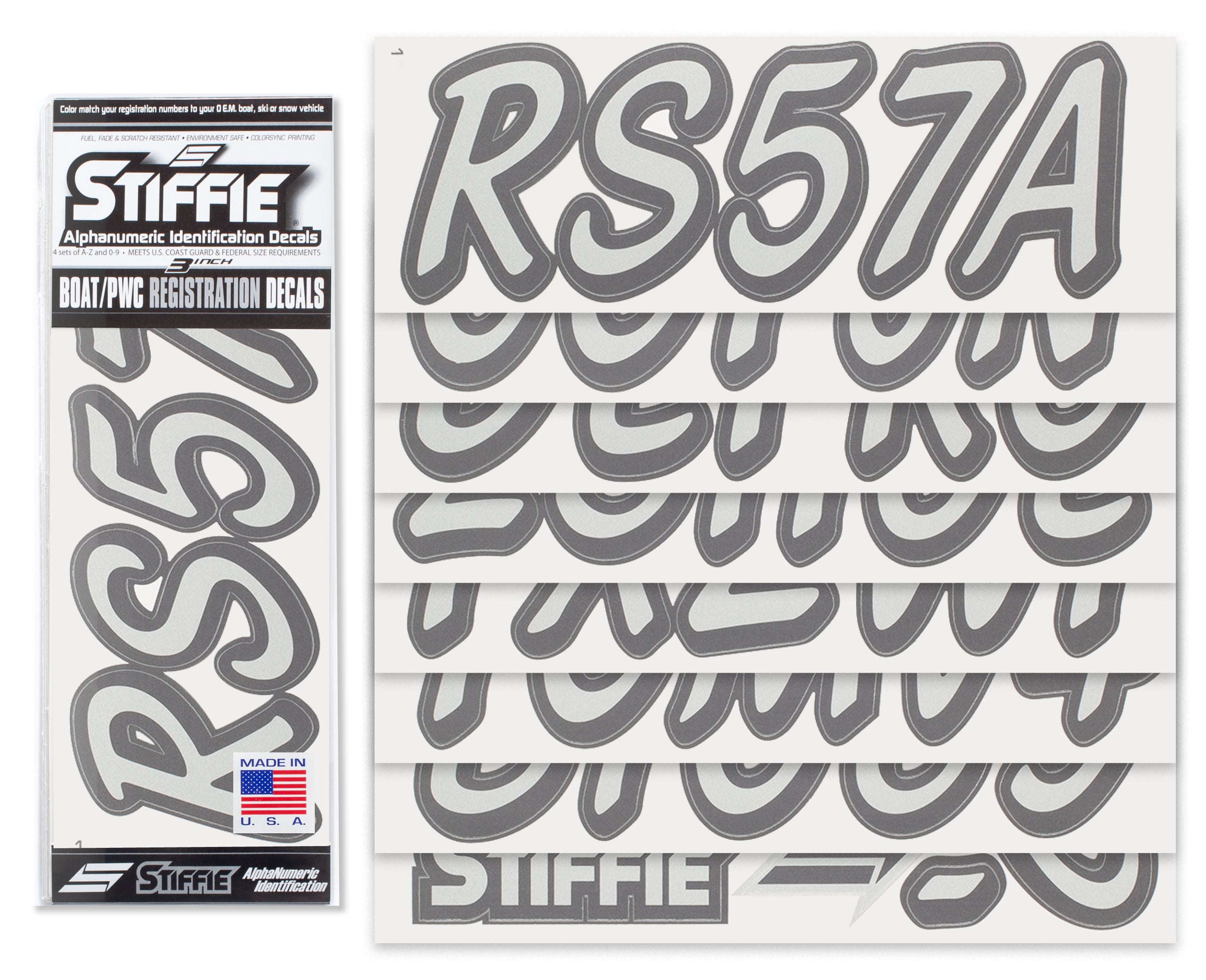 STIFFIE Whipline Solid Metallic Silver/Carbon 3” Boat & PWC Registration Decals • Numbers Letters Stickers