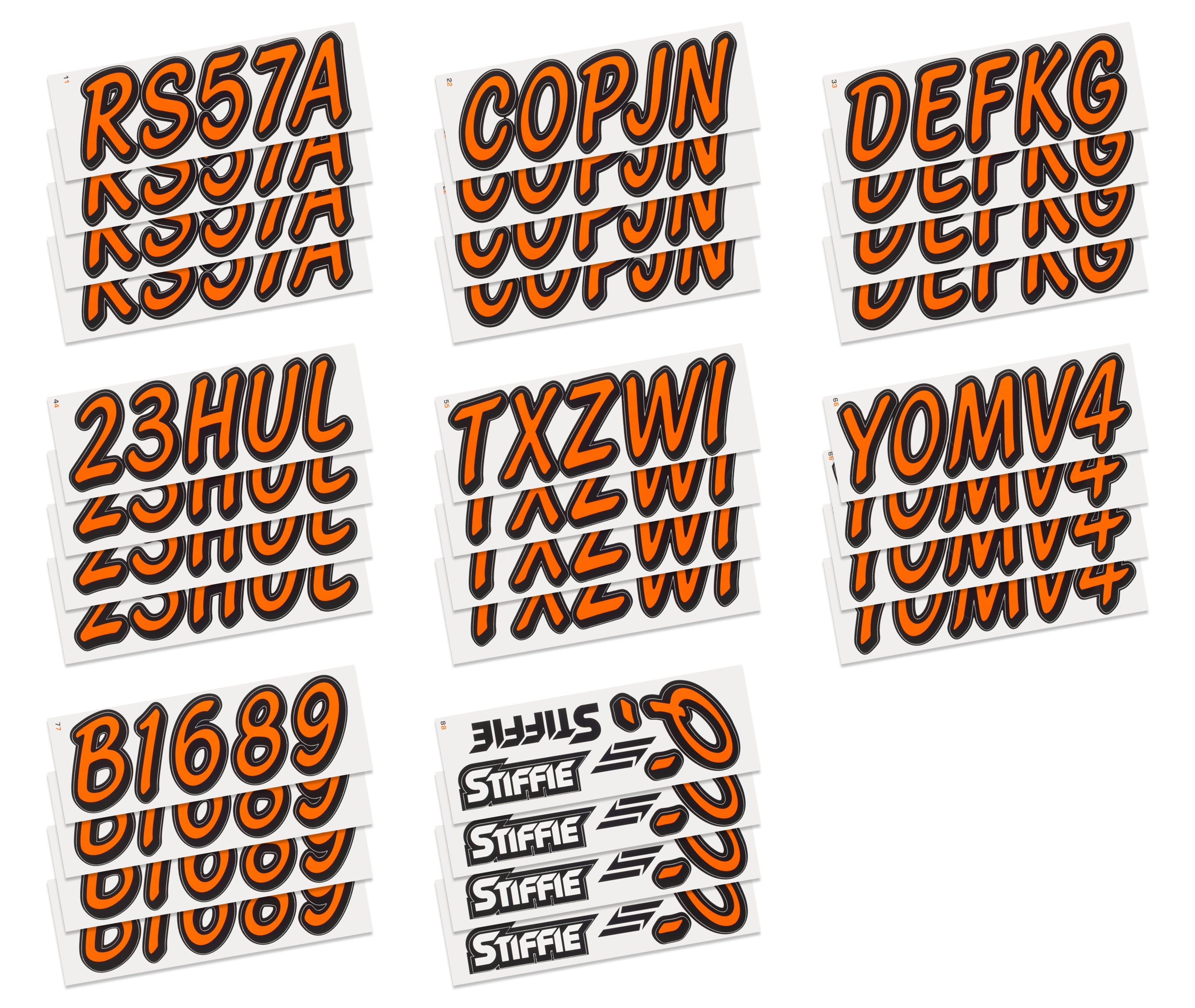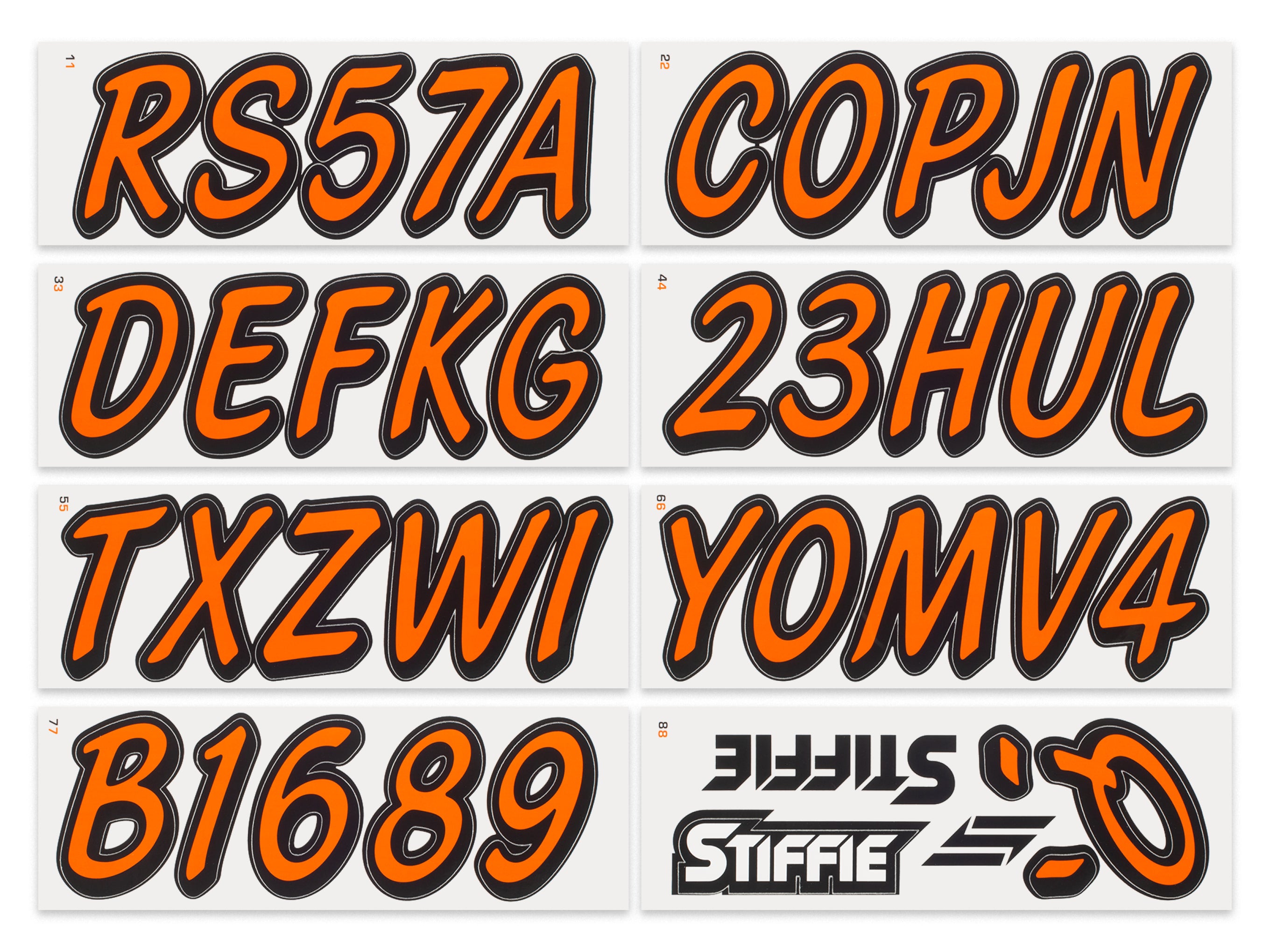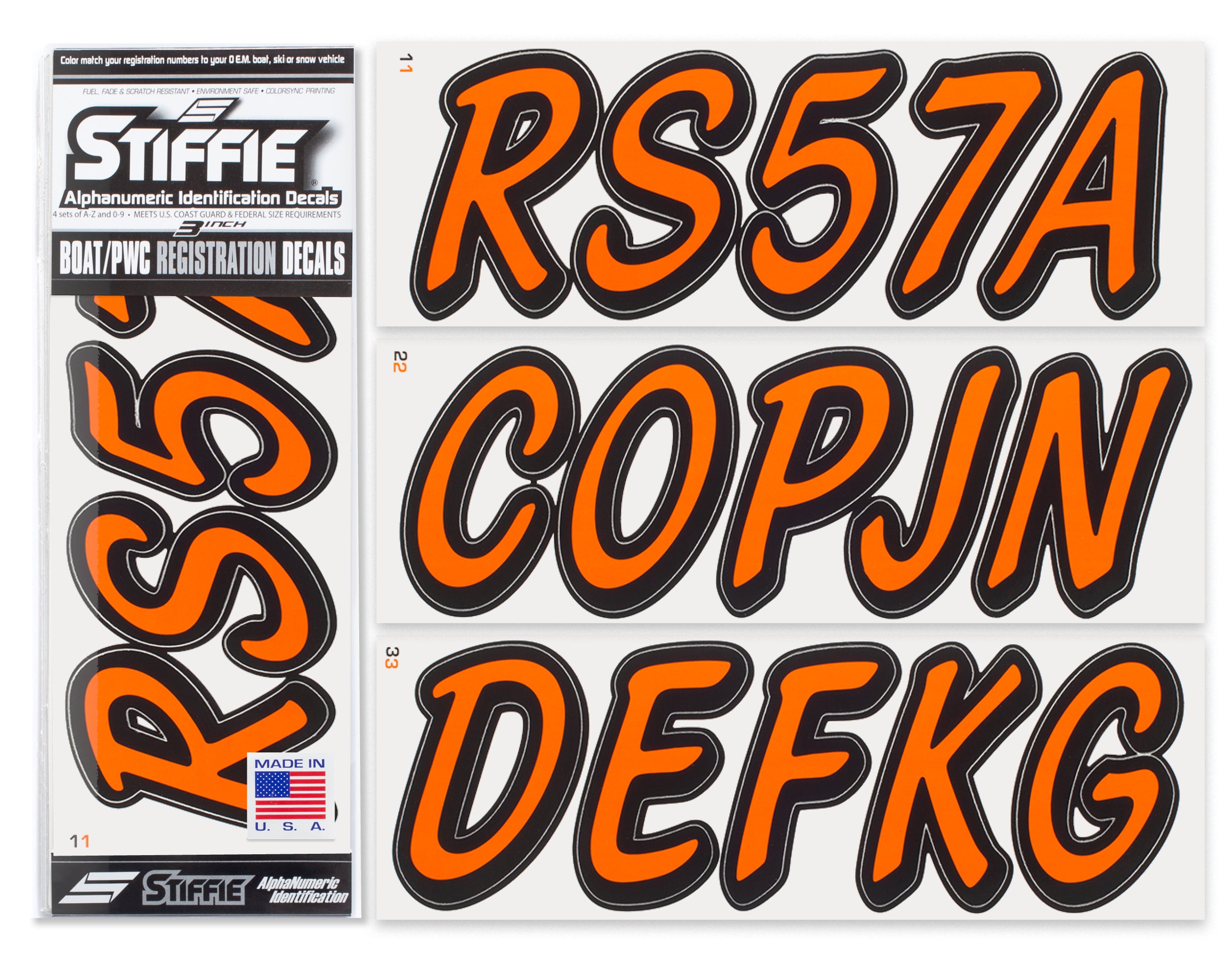 STIFFIE Whipline Solid Orange/Black 3” Boat & PWC Registration Decals • Numbers Letters Stickers