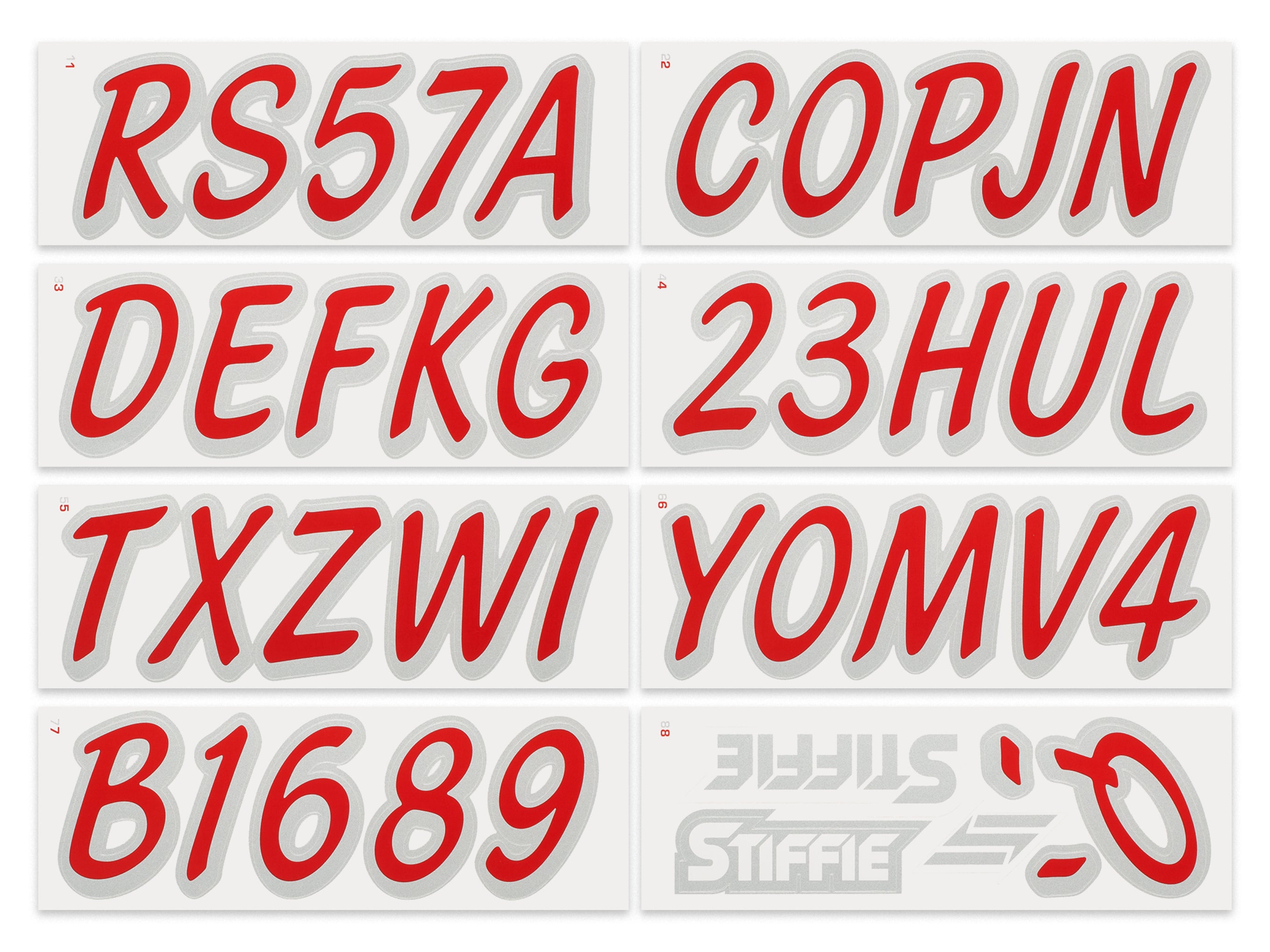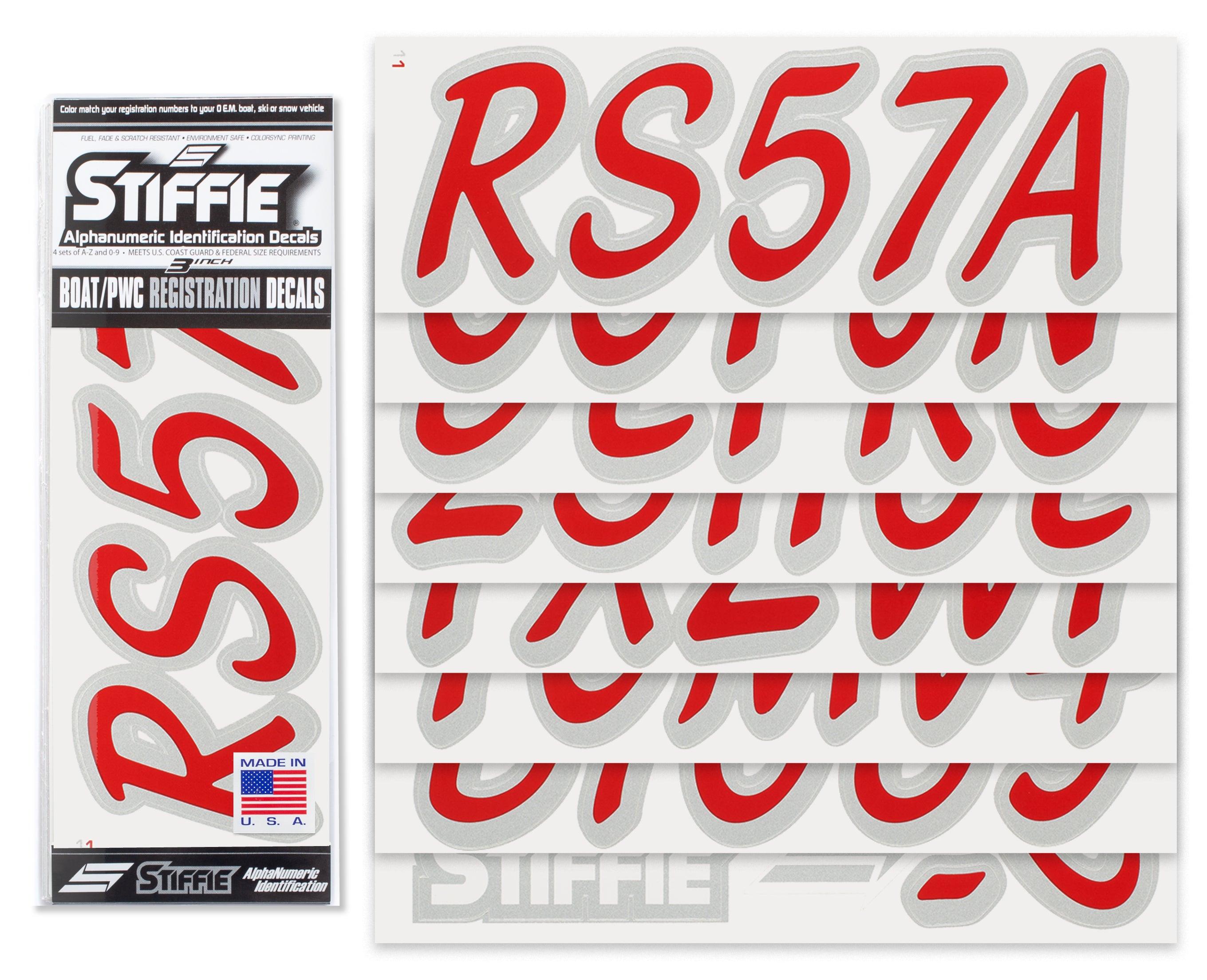 STIFFIE Whipline Solid Red/Metallic Silver 3” Boat & PWC Registration Decals • Numbers Letters Stickers