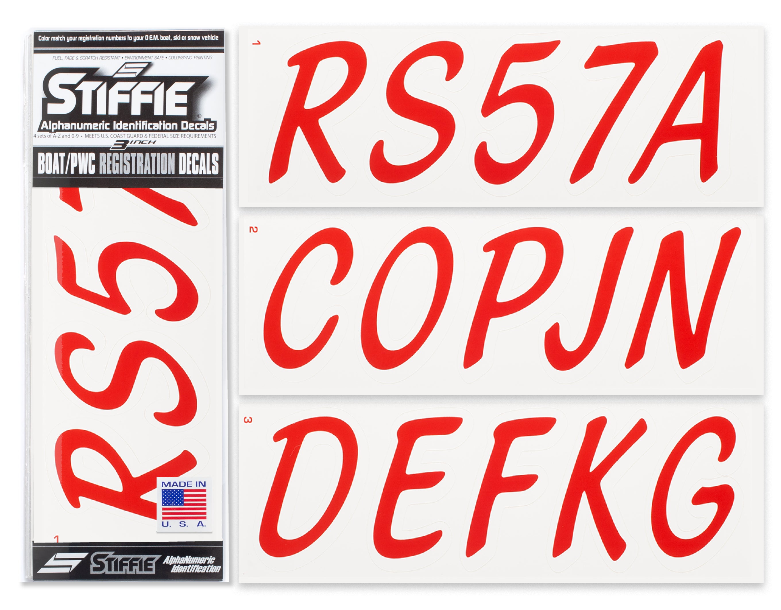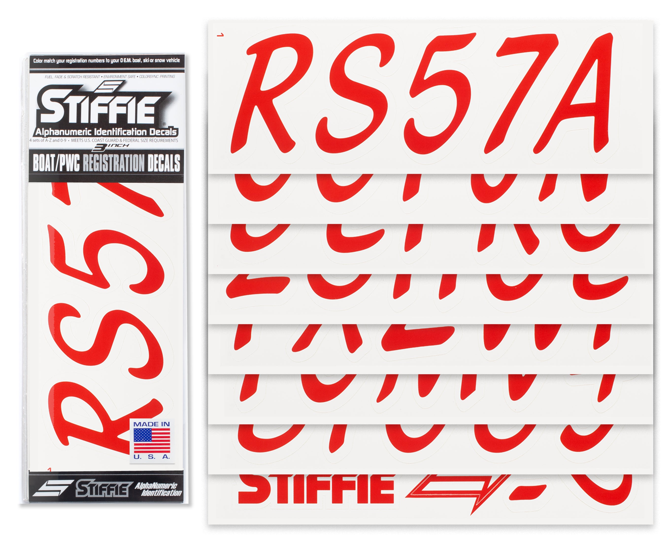 STIFFIE Whipline Solid Red/White 3” Boat & PWC Registration Decals • Numbers Letters Stickers