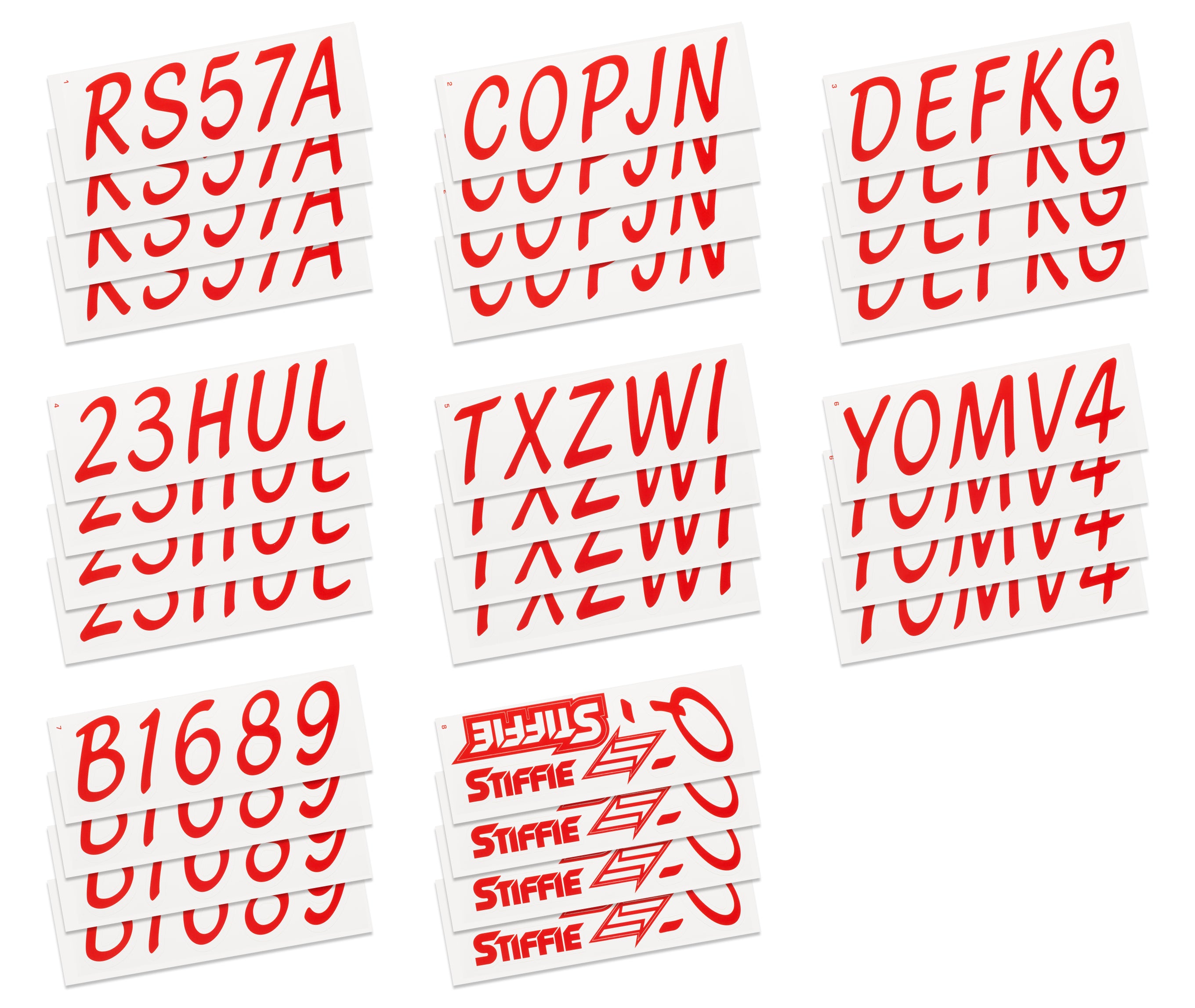 All Alphanumeric ID Kits offered by STIFFIE come with characters that are 3" in height and meet or exceed US Coast Guard Regulations. Every ID kit comes with 4 sets of 0-9 and A-Z decals (146 total decals). STIFFIE Alphanumeric registration decals are resistant to chemical deterioration, fading, curling, tearing and scratching. STIFFIE decals are also UV Coated for protection from harmful ultra-violet (UV) rays.