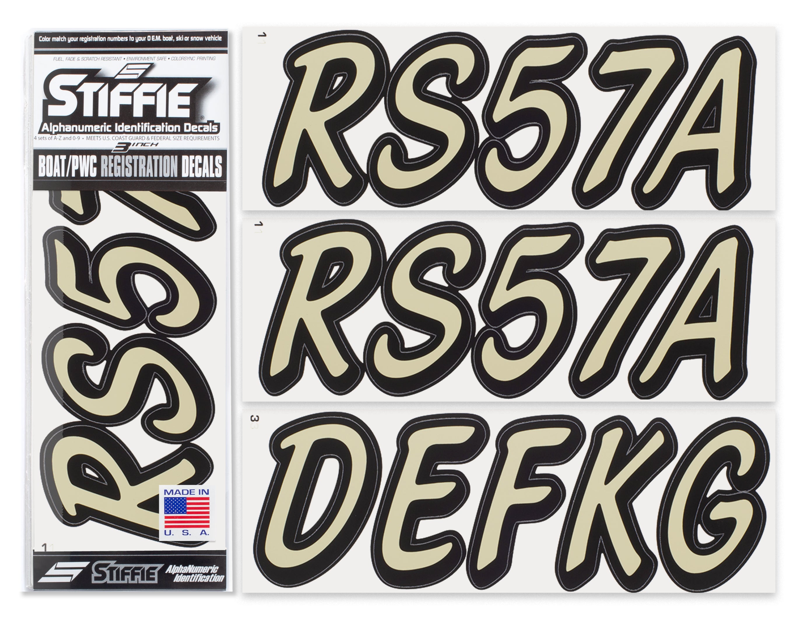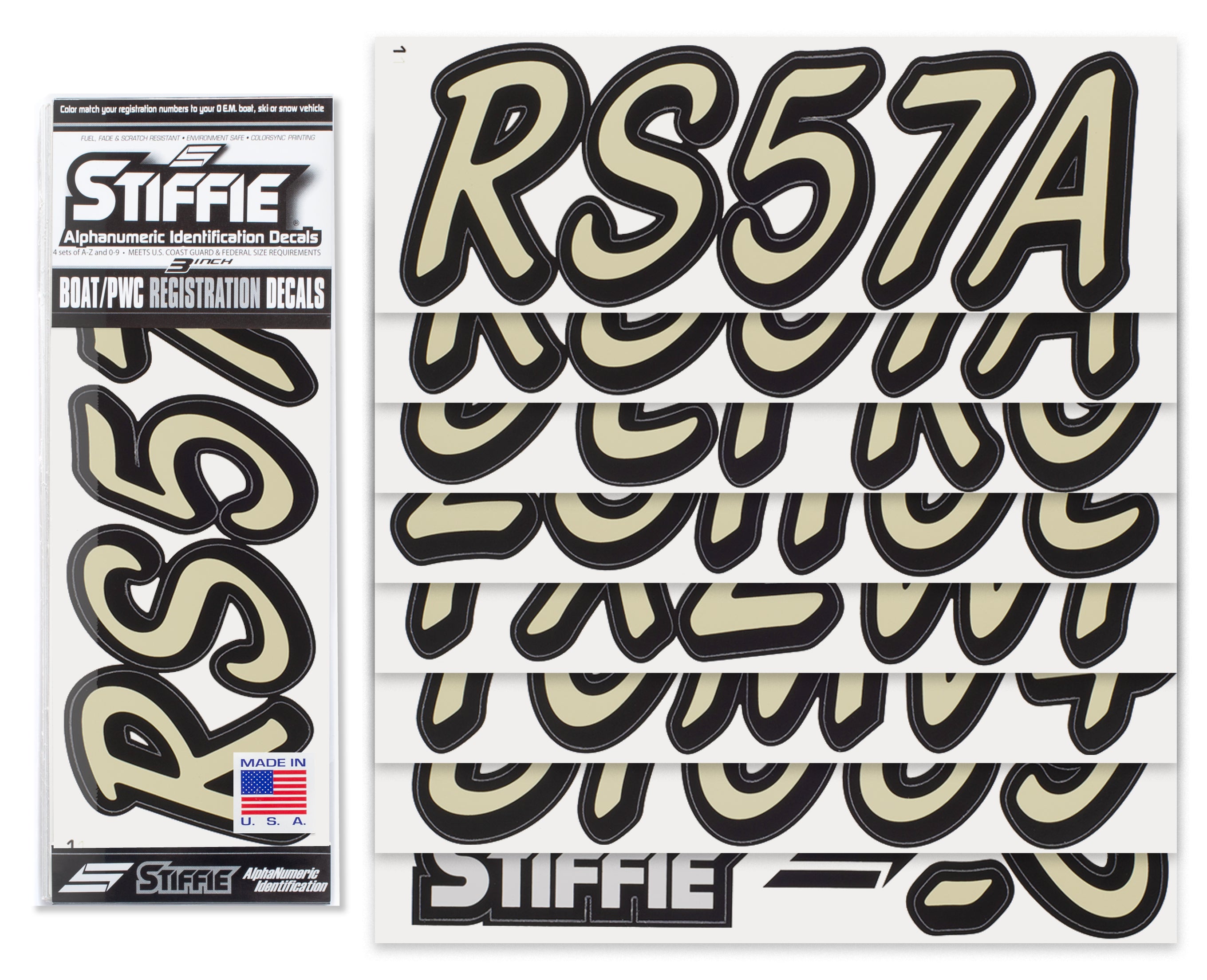 STIFFIE Whipline Solid Sand/Black 3” Boat & PWC Registration Decals • Numbers Letters Stickers