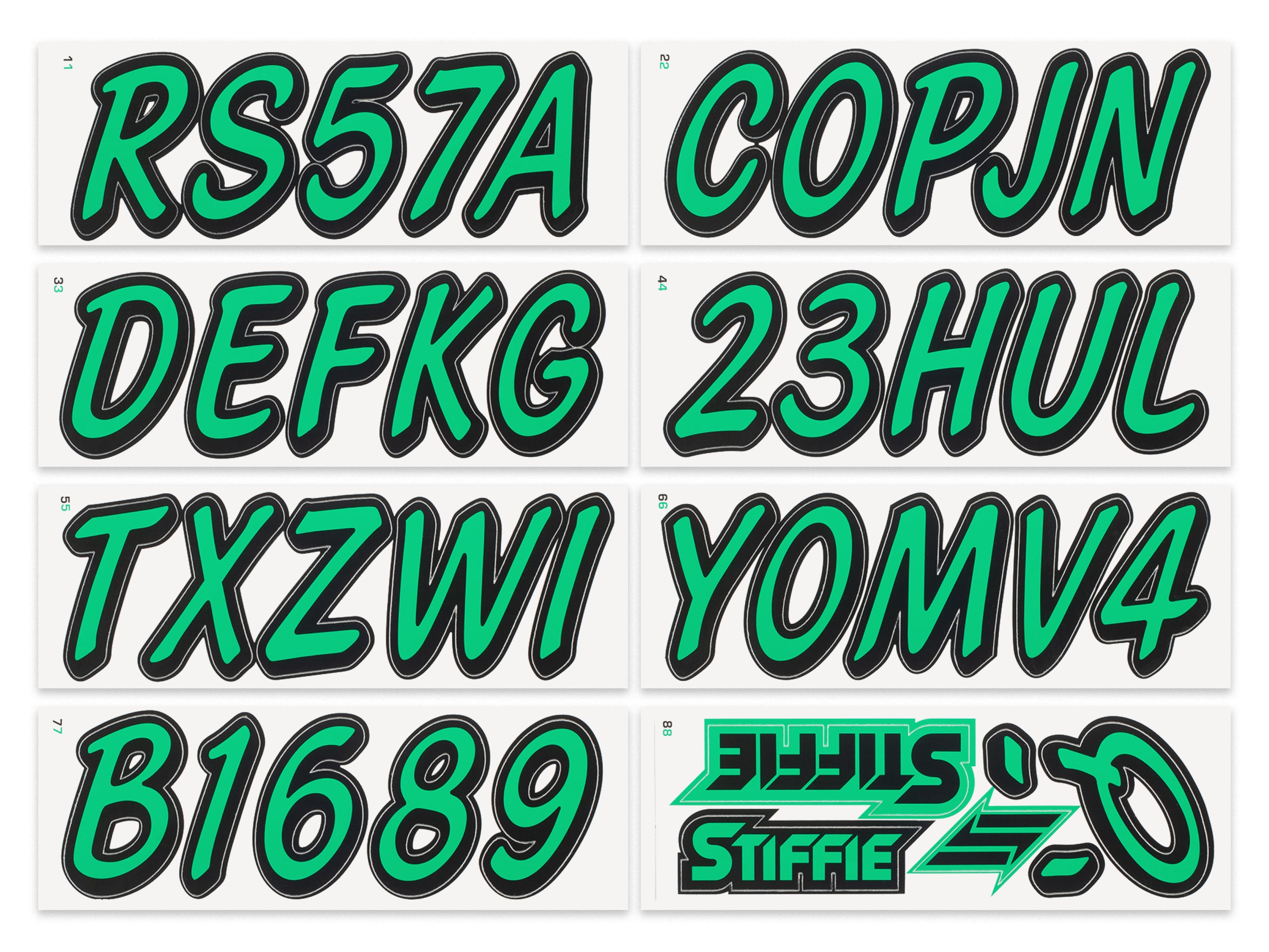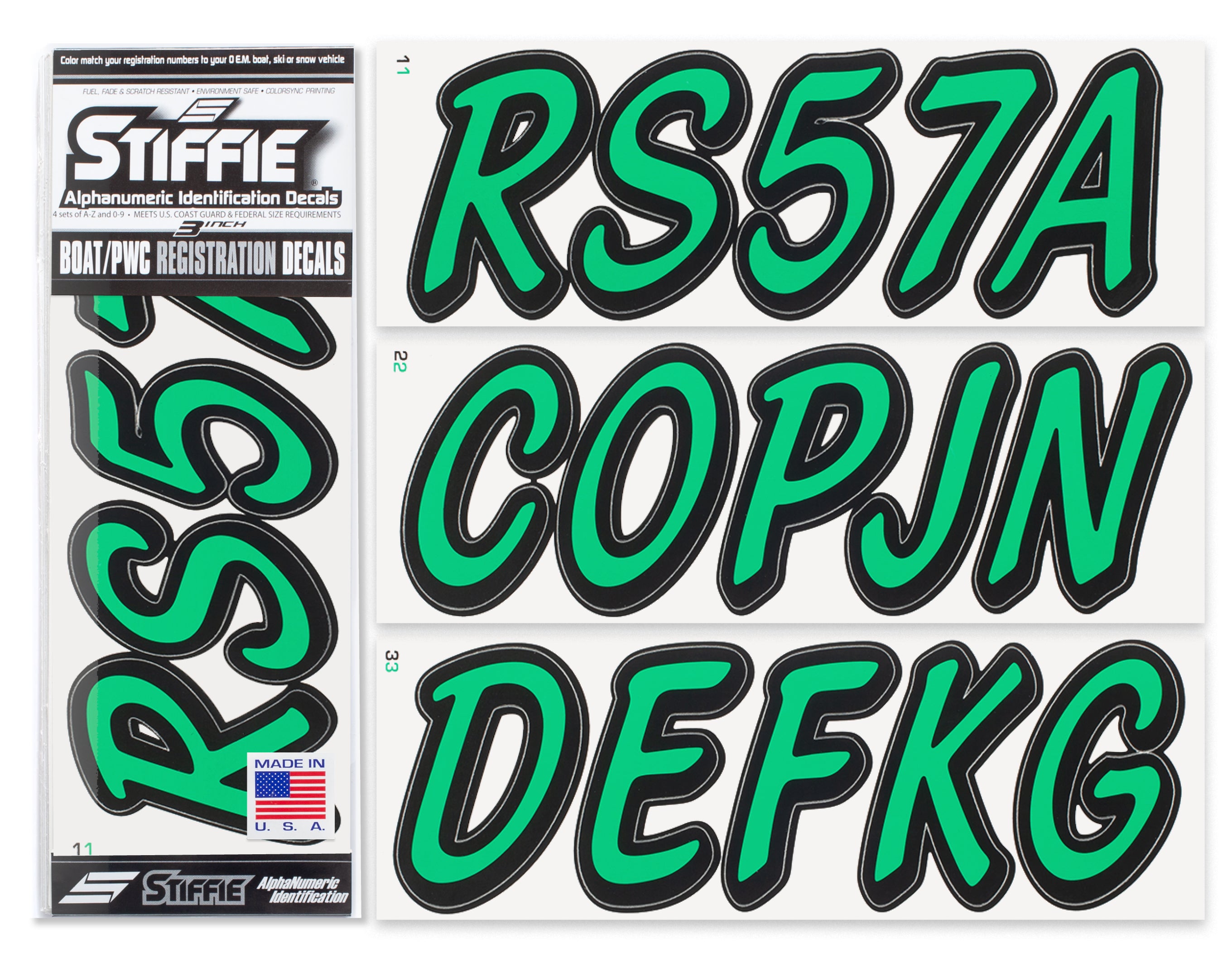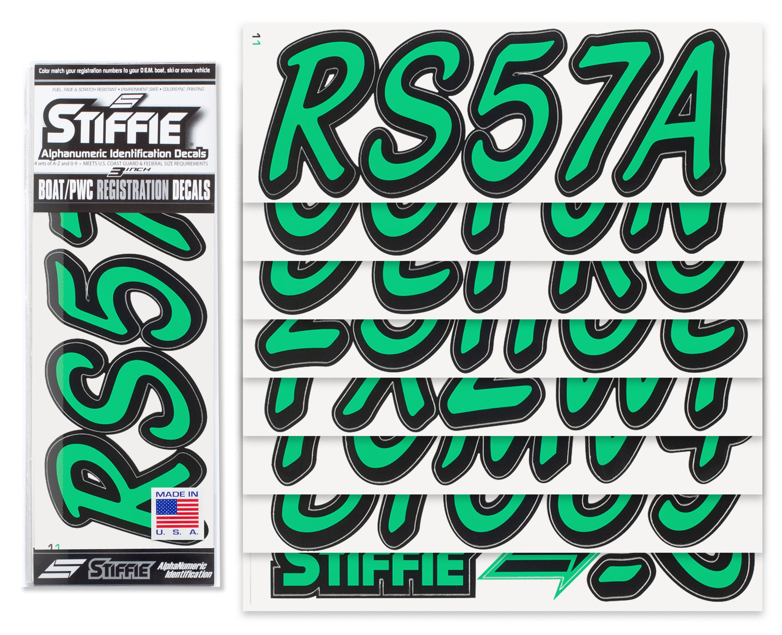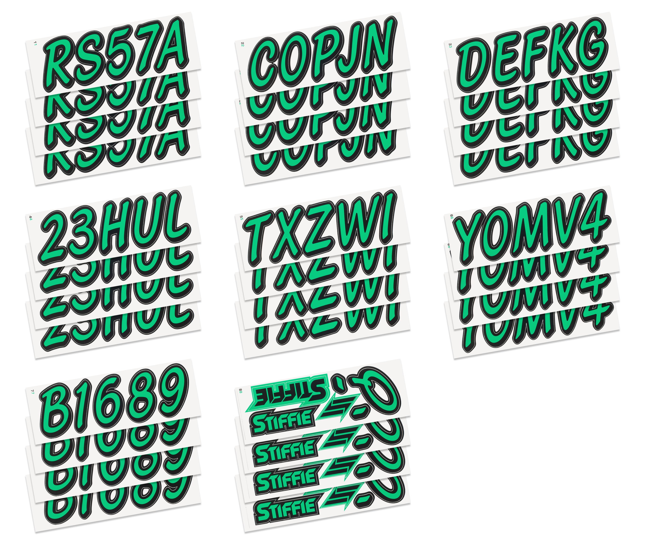 STIFFIE Whipline Solid Sea Foam Green/Black 3” Boat & PWC Registration Decals • Numbers Letters Stickers