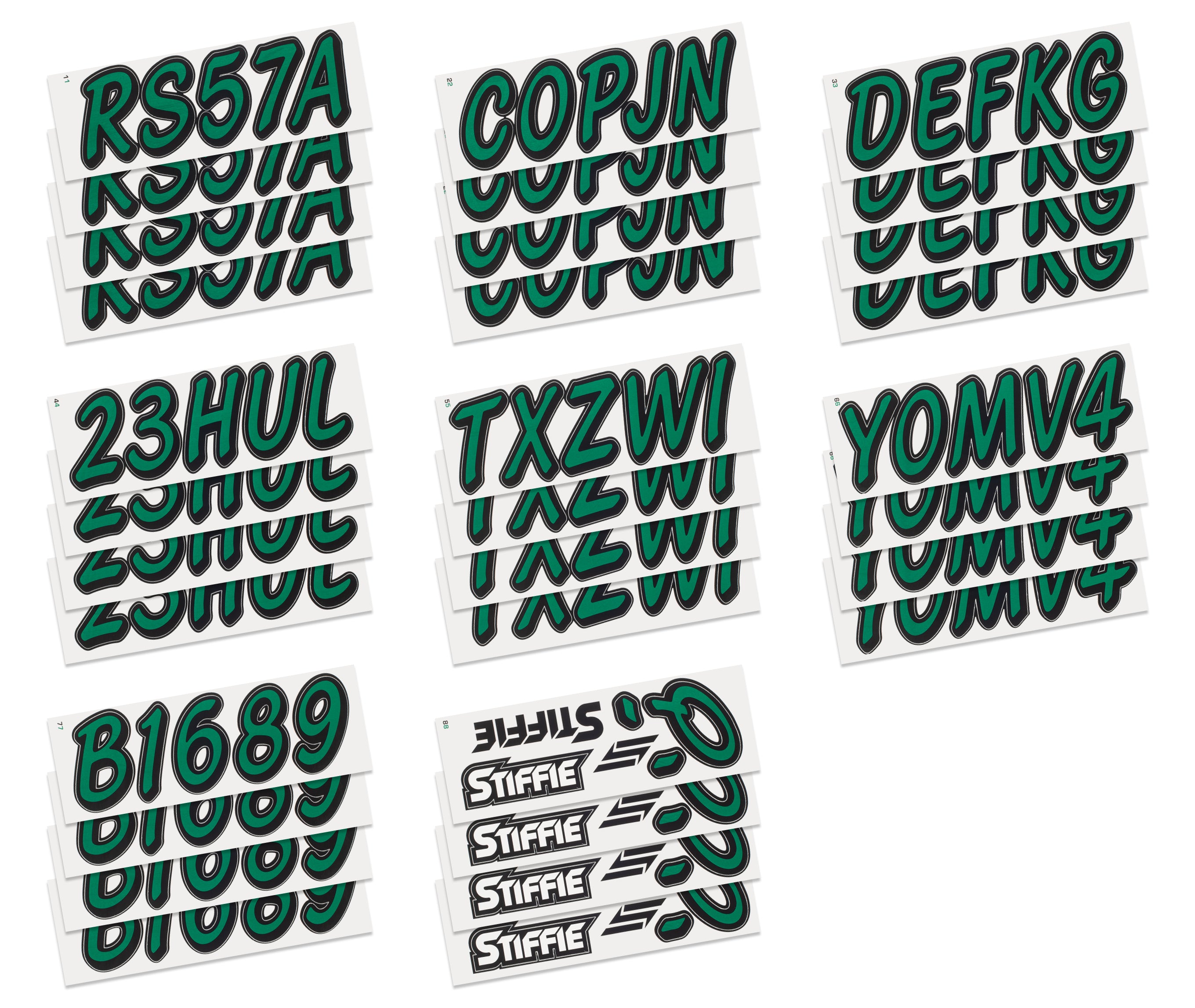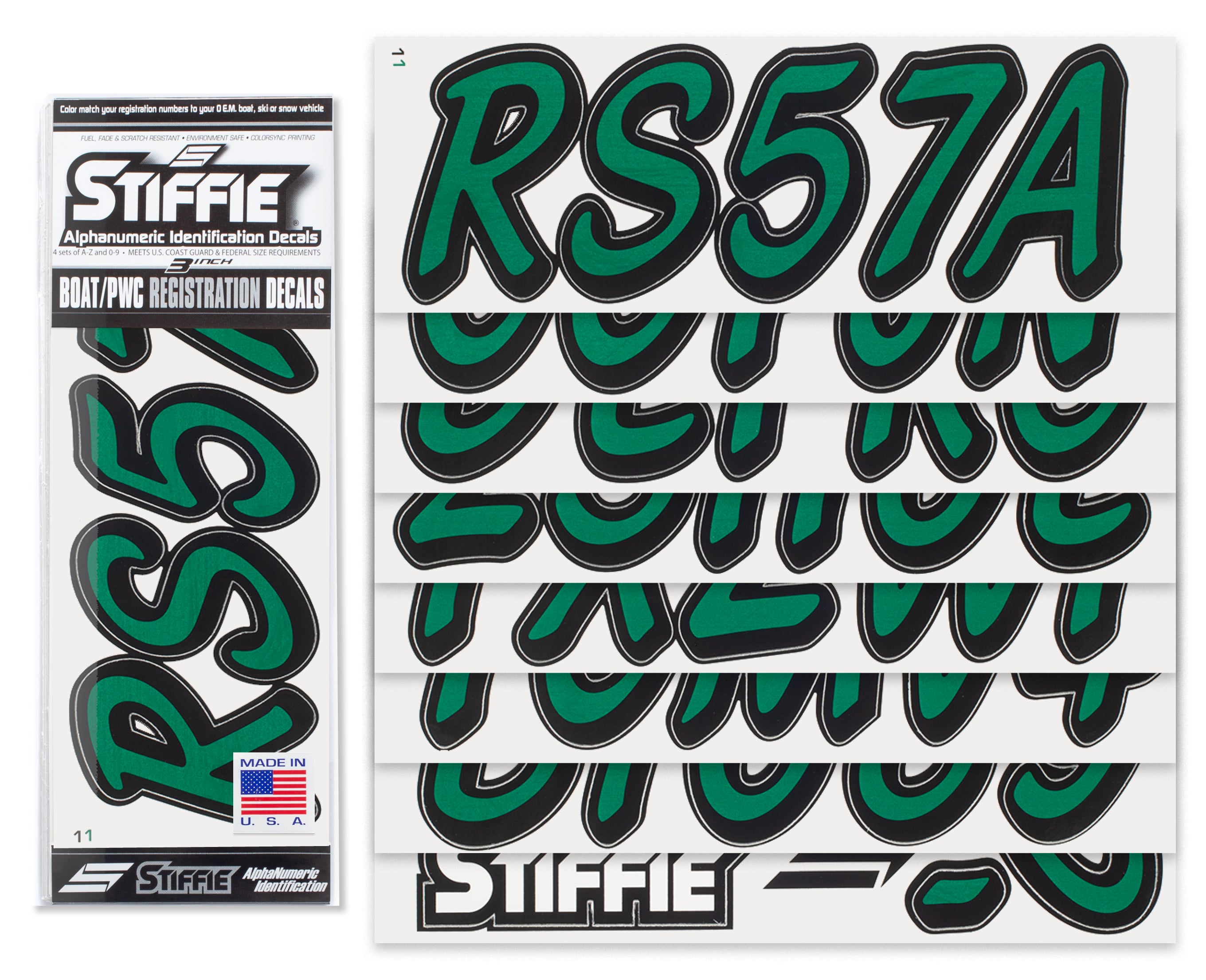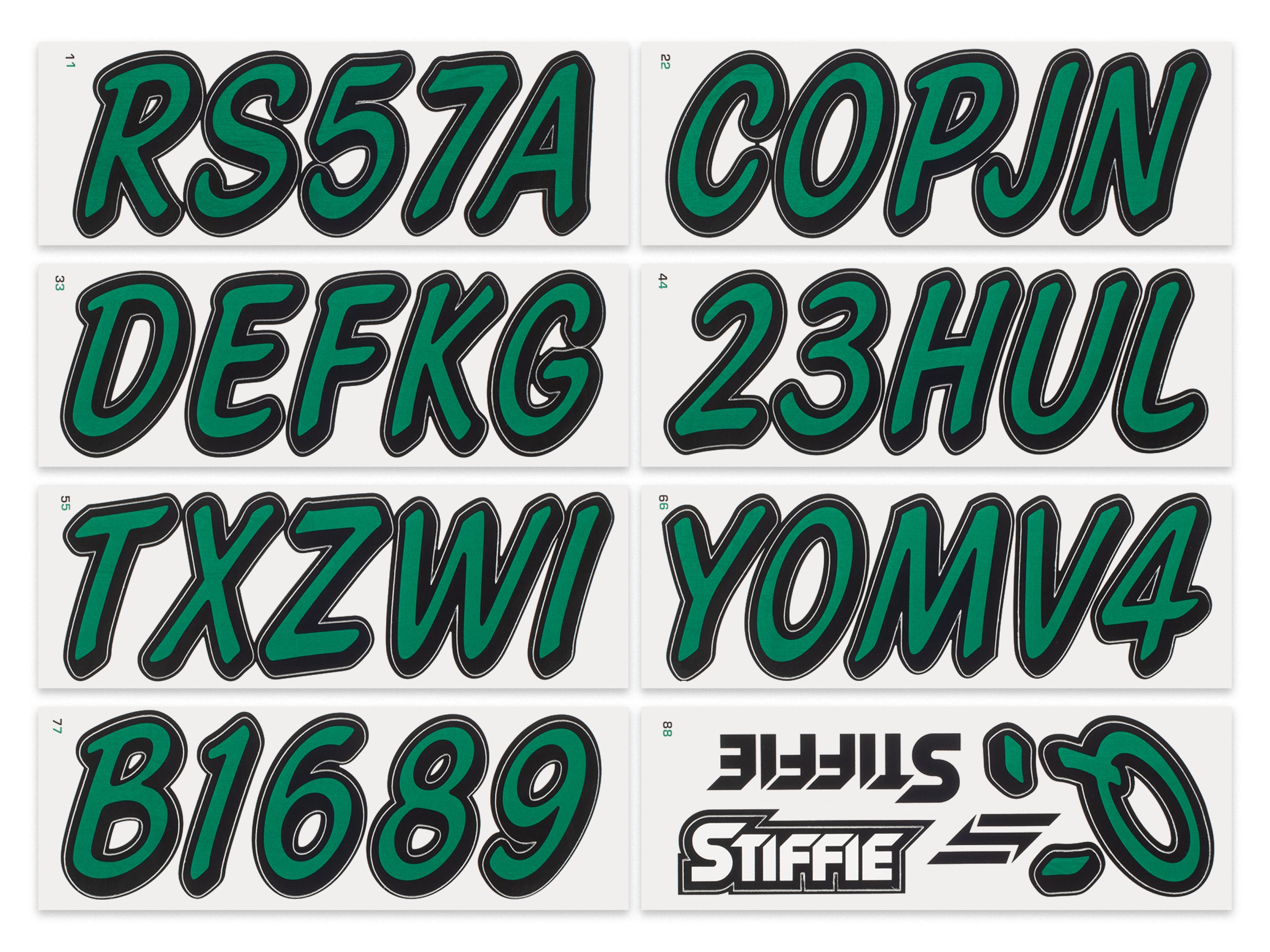 STIFFIE Whipline Solid Racing Green/Black 3” Boat & PWC Registration Decals • Numbers Letters Stickers