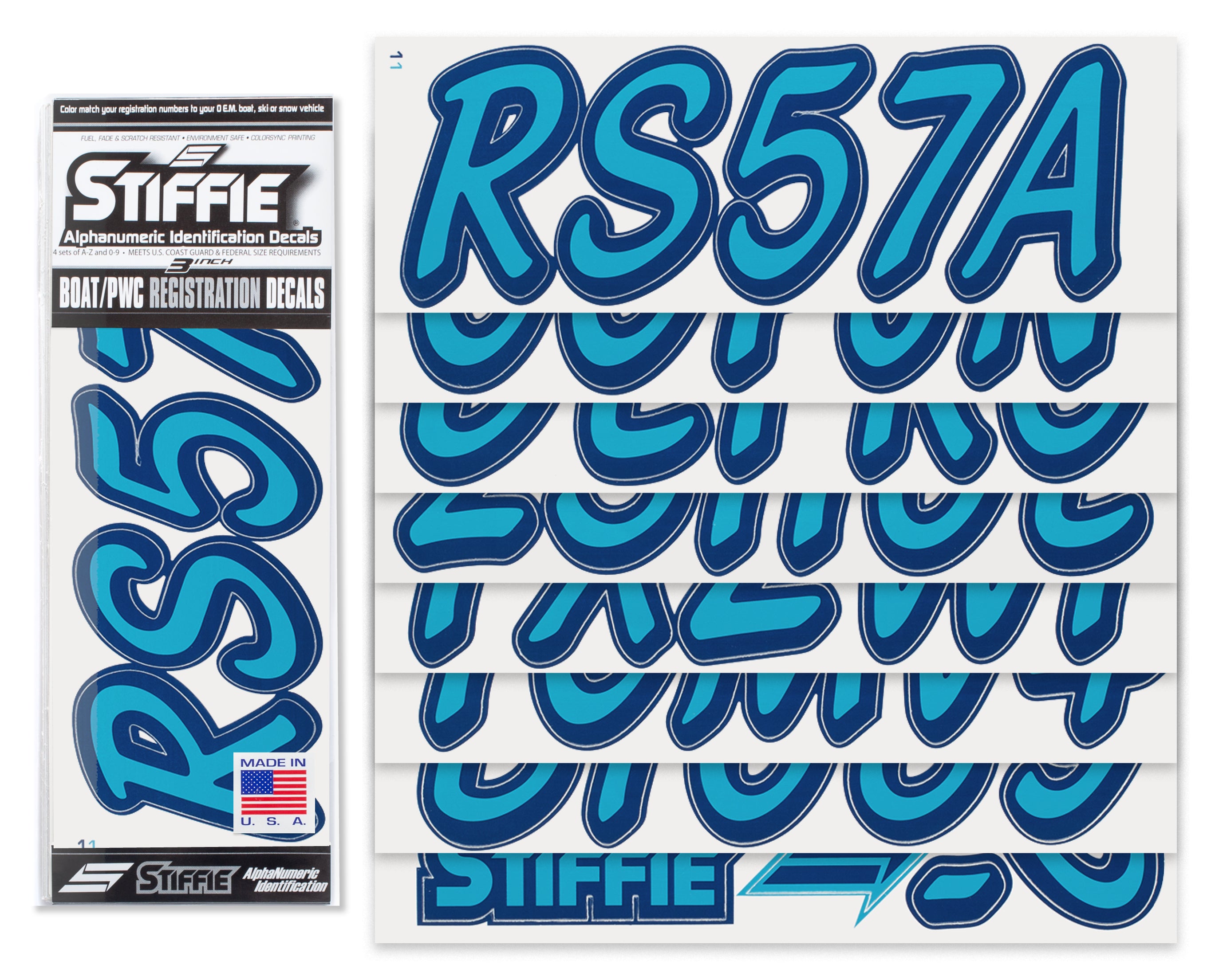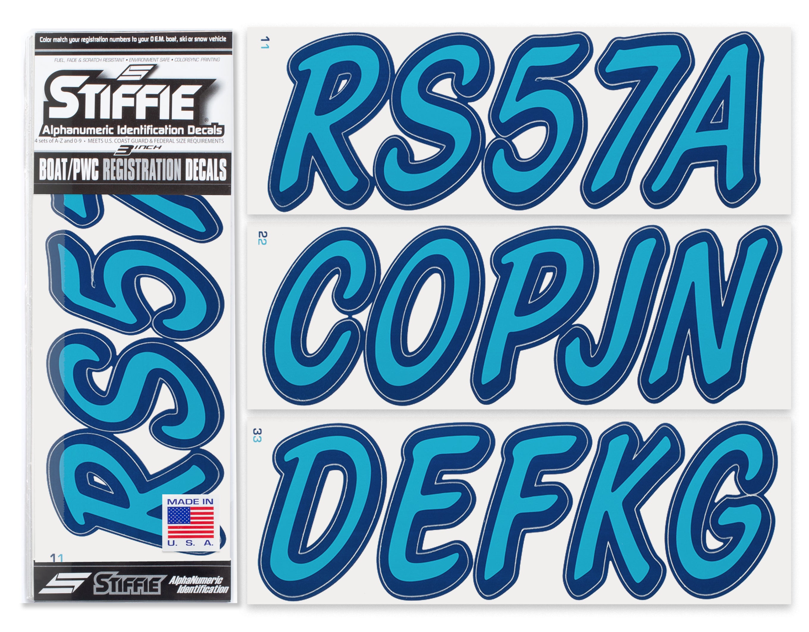 STIFFIE Whipline Solid Sky Blue/Navy 3” Boat & PWC Registration Decals • Numbers Letters Stickers