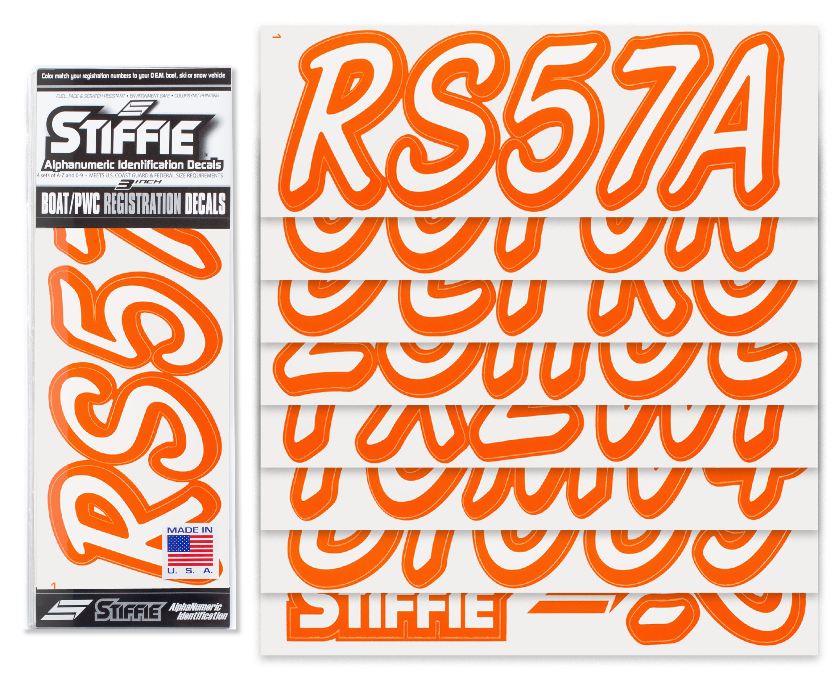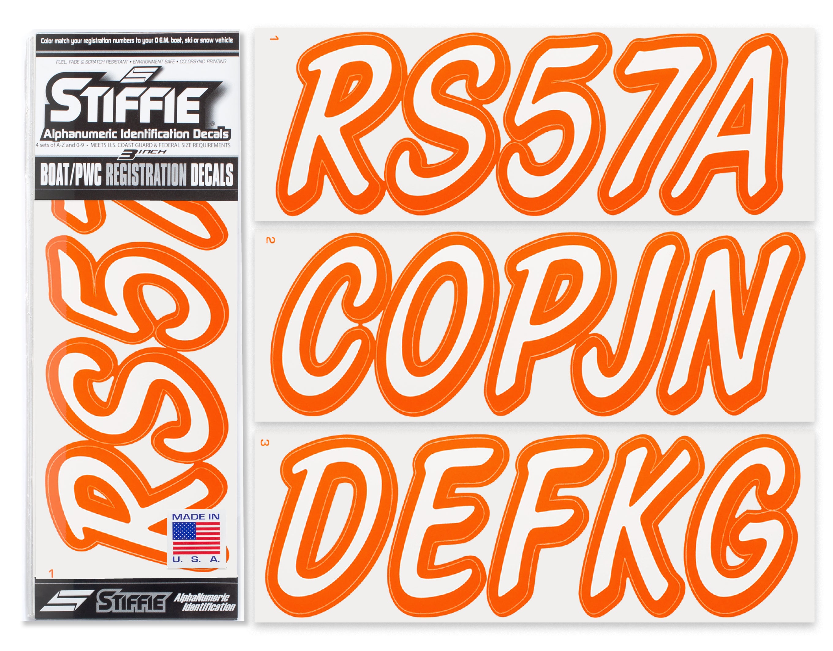 STIFFIE Whipline Solid White/Orange 3” Boat & PWC Registration Decals • Numbers Letters Stickers