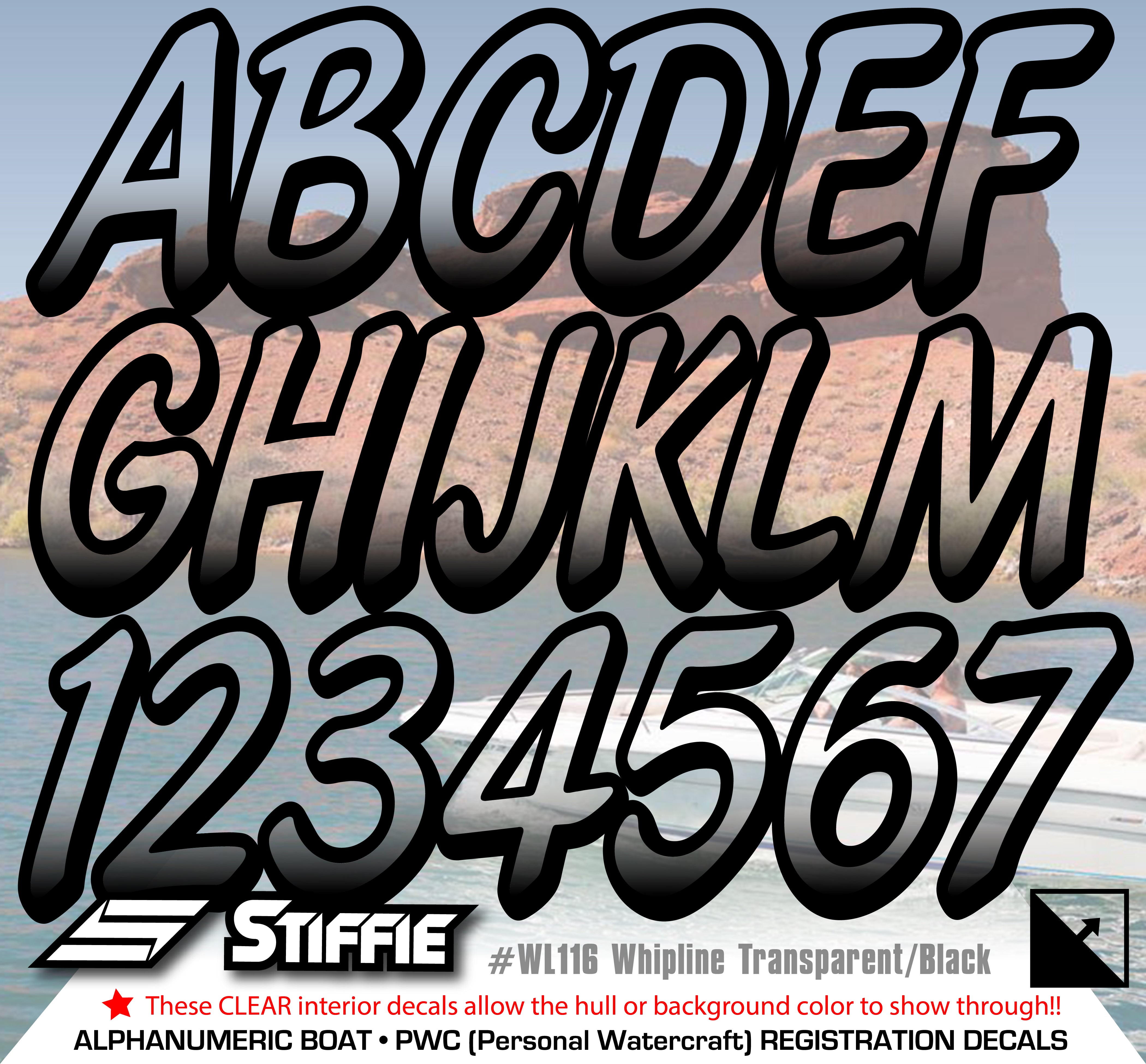 STIFFIE Whipline Transparent/Black 3" Boat & PWC Registration Decals • Numbers Letters Stickers