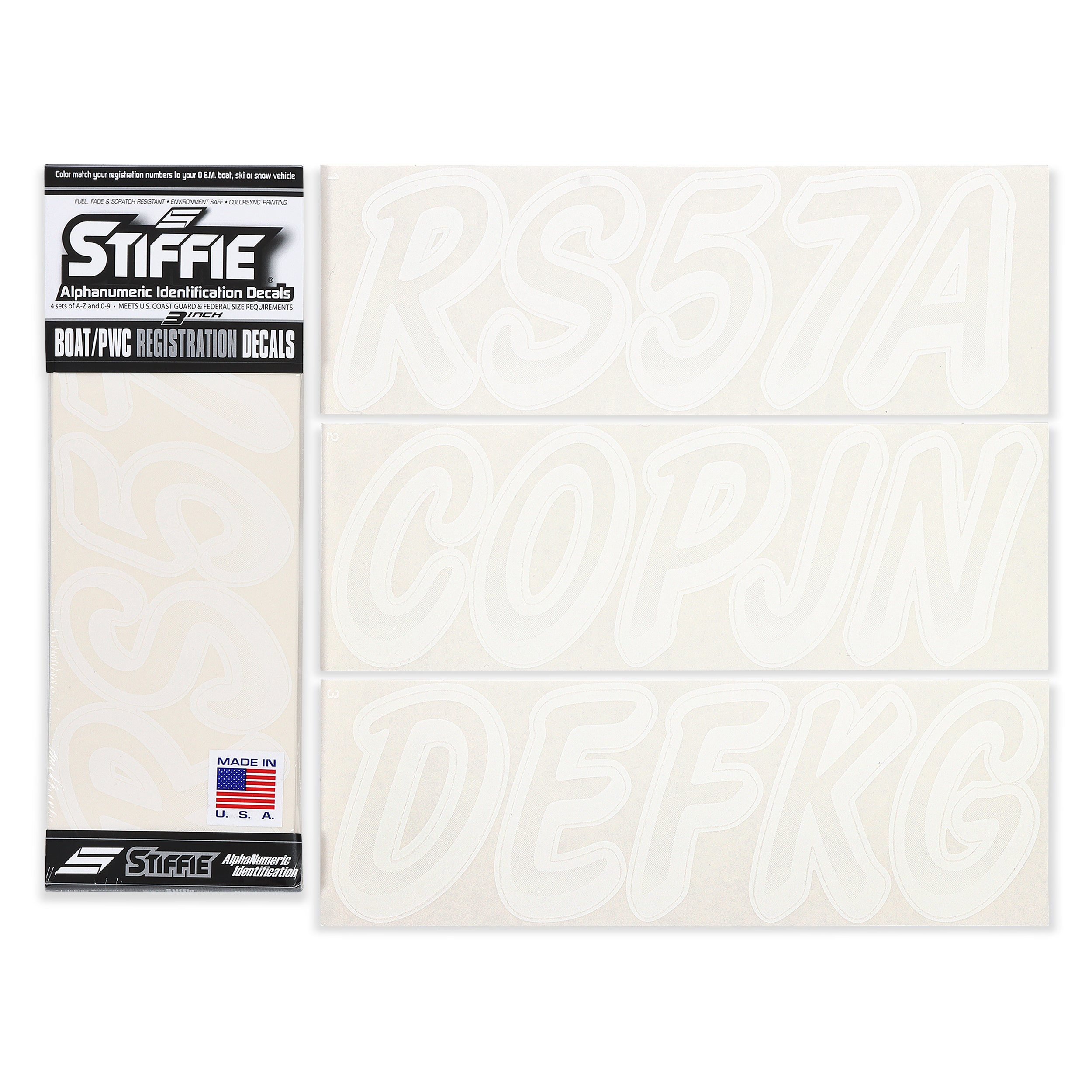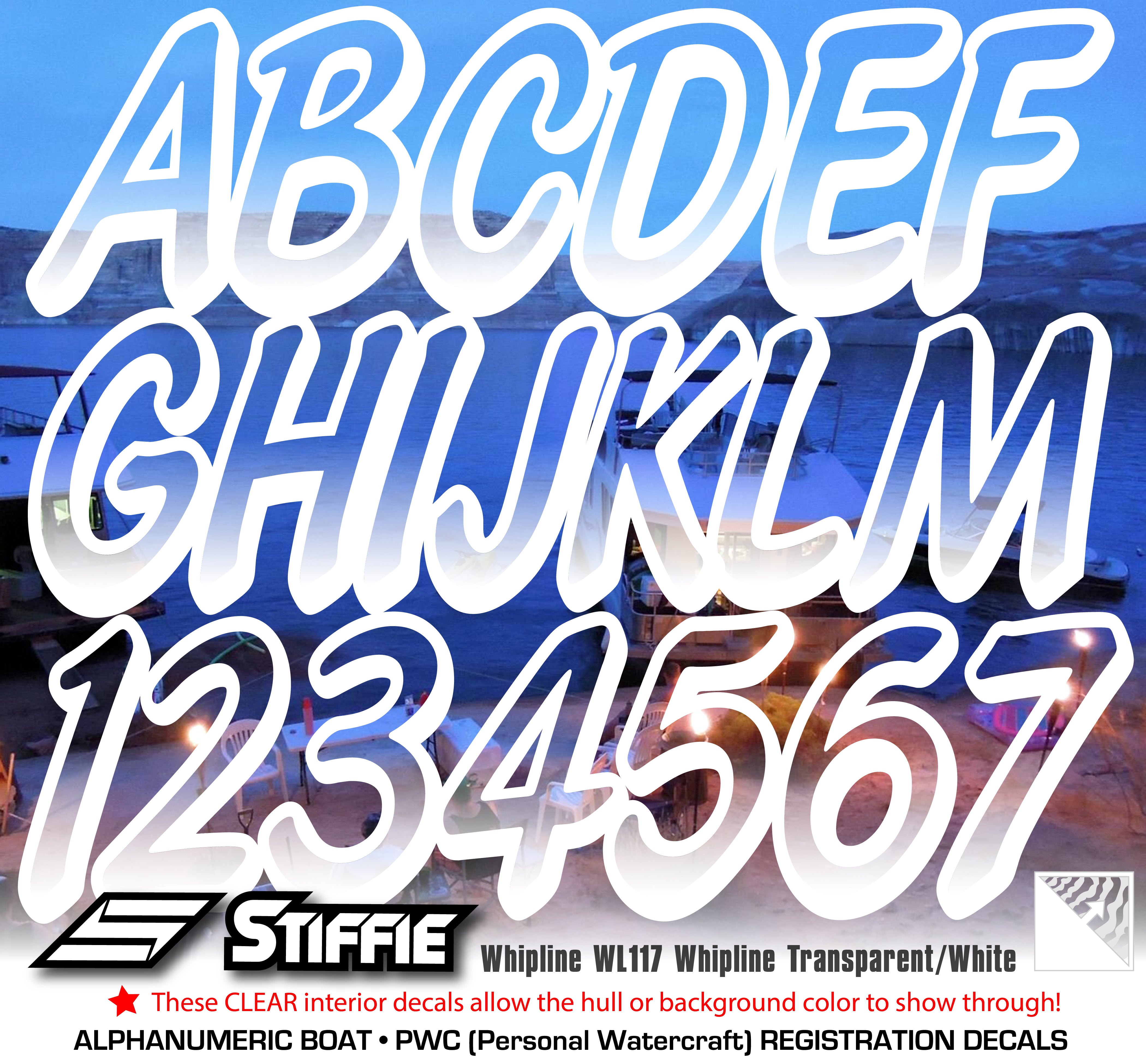 STIFFIE Whipline Transparent/White 3" Boat & PWC Registration Decals • Numbers Letters Stickers