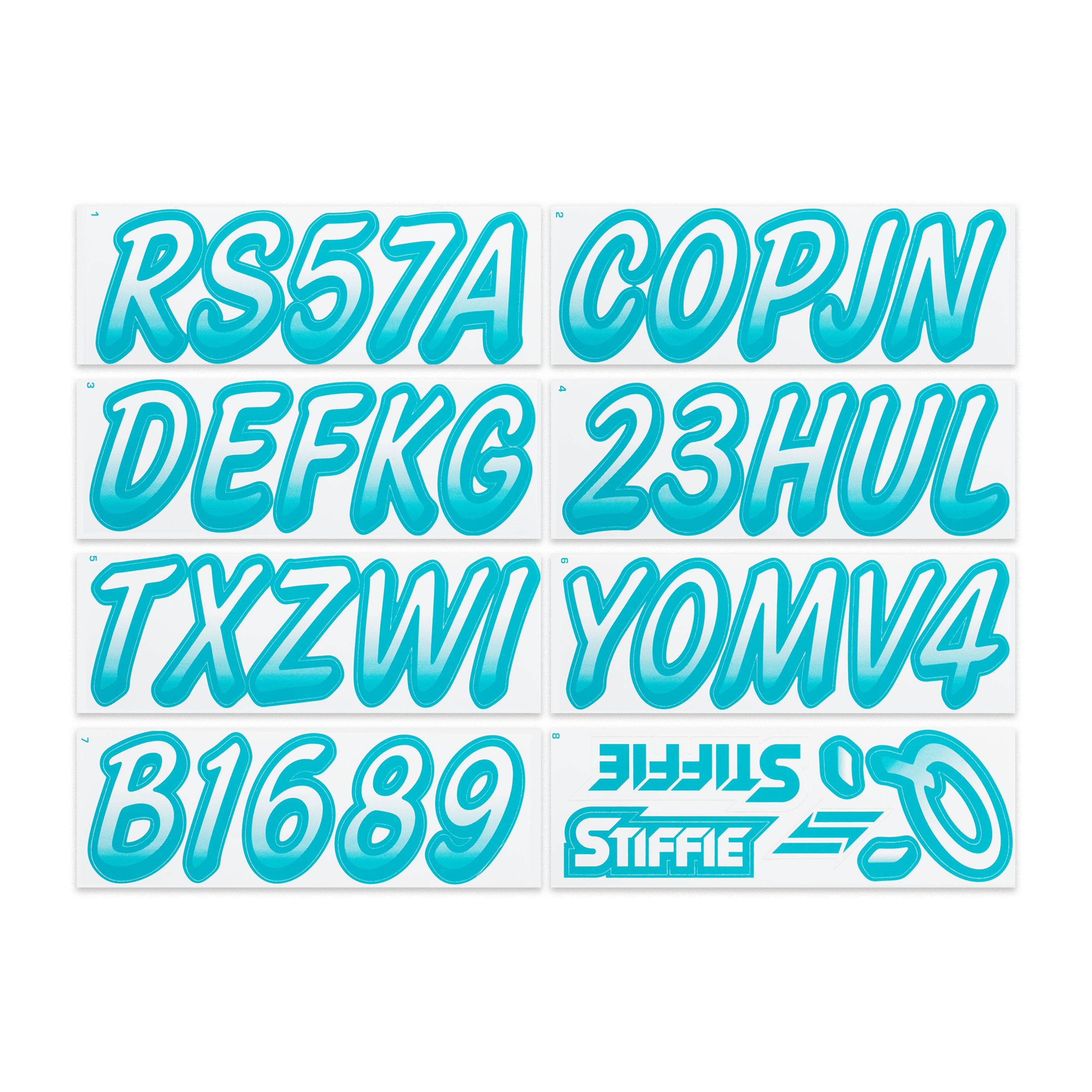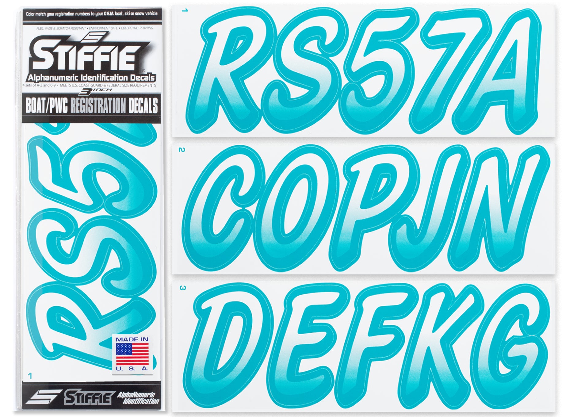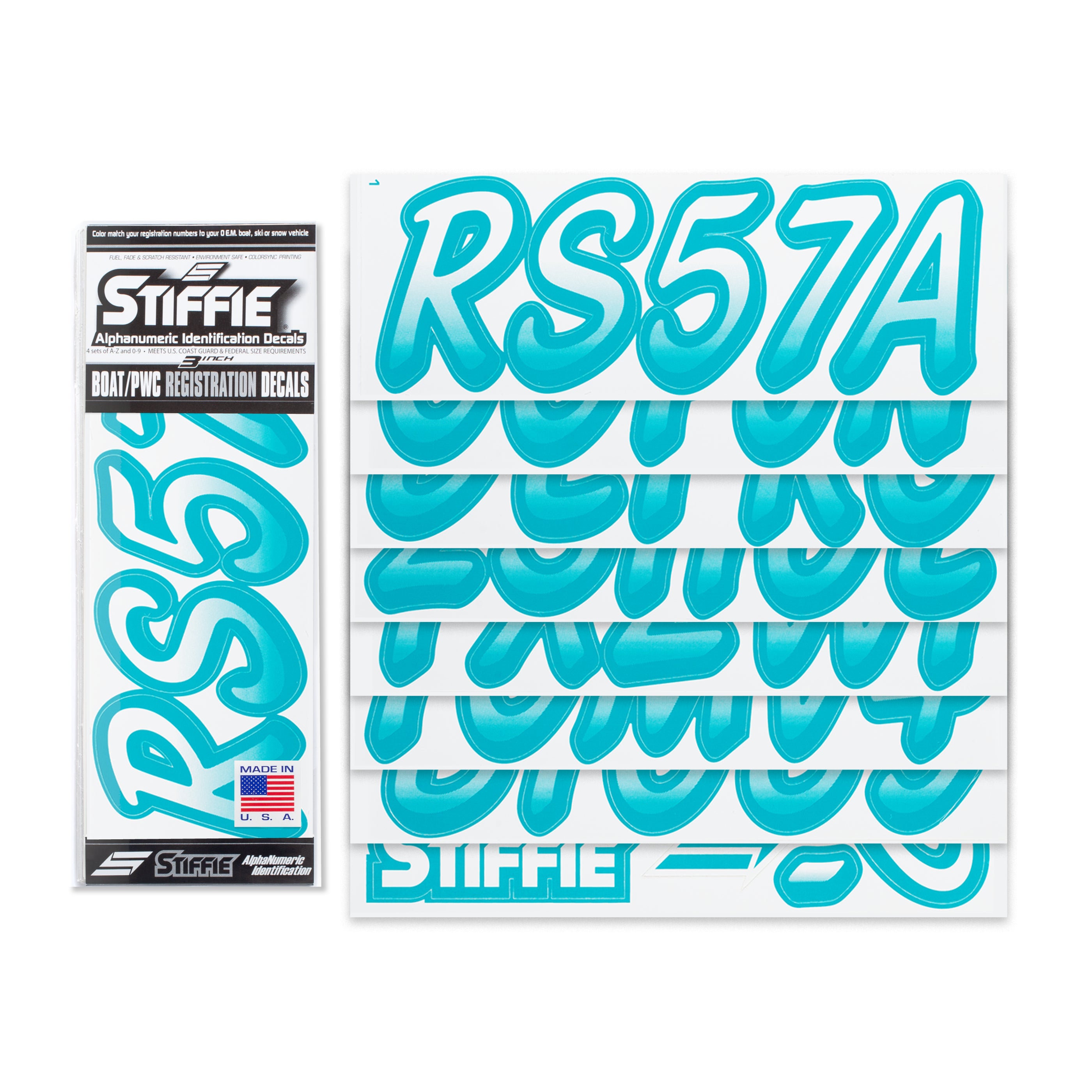 STIFFIE Whipline White / Aqua 3" Alpha-Numeric Registration Identification Numbers Stickers Decals for Boats & Personal Watercraft