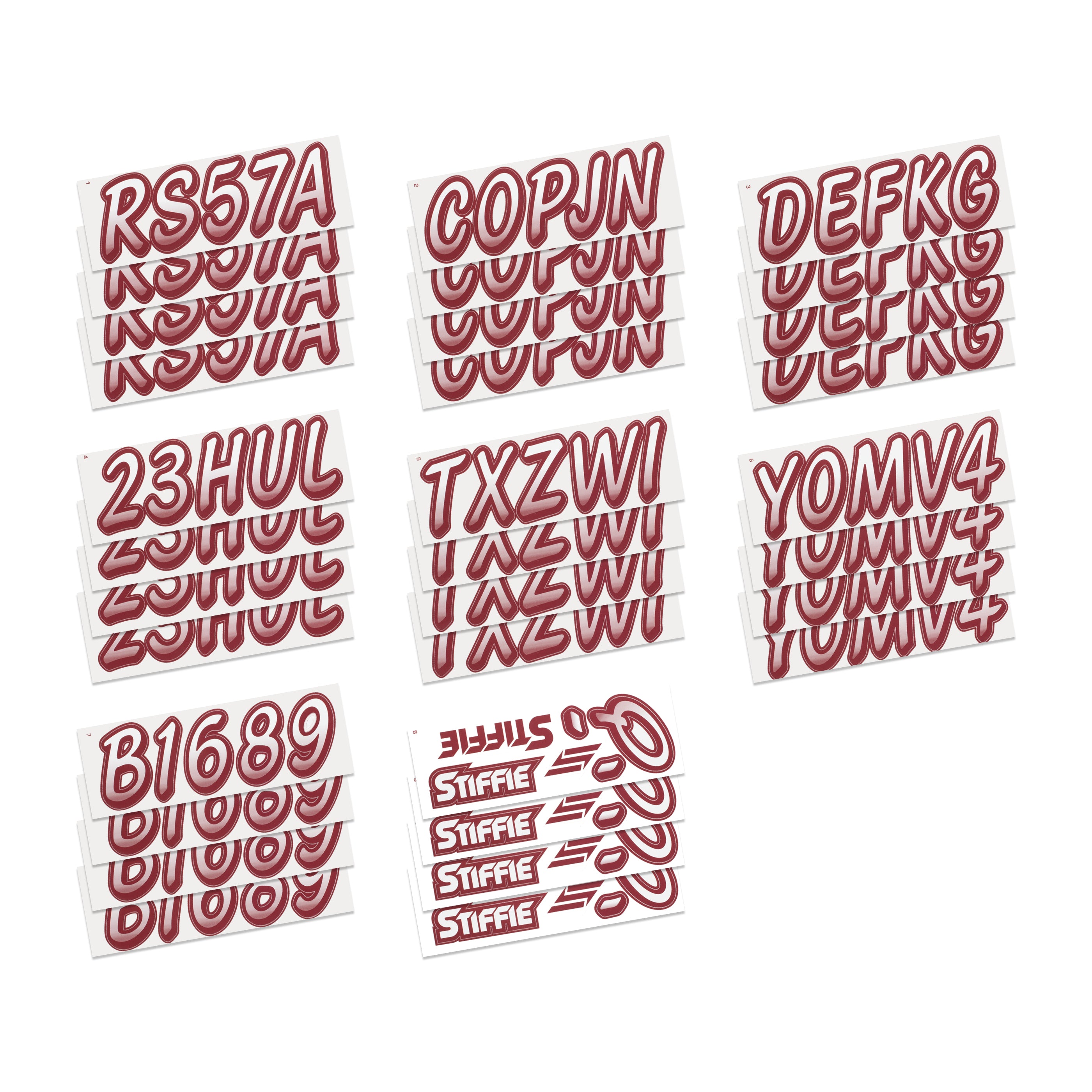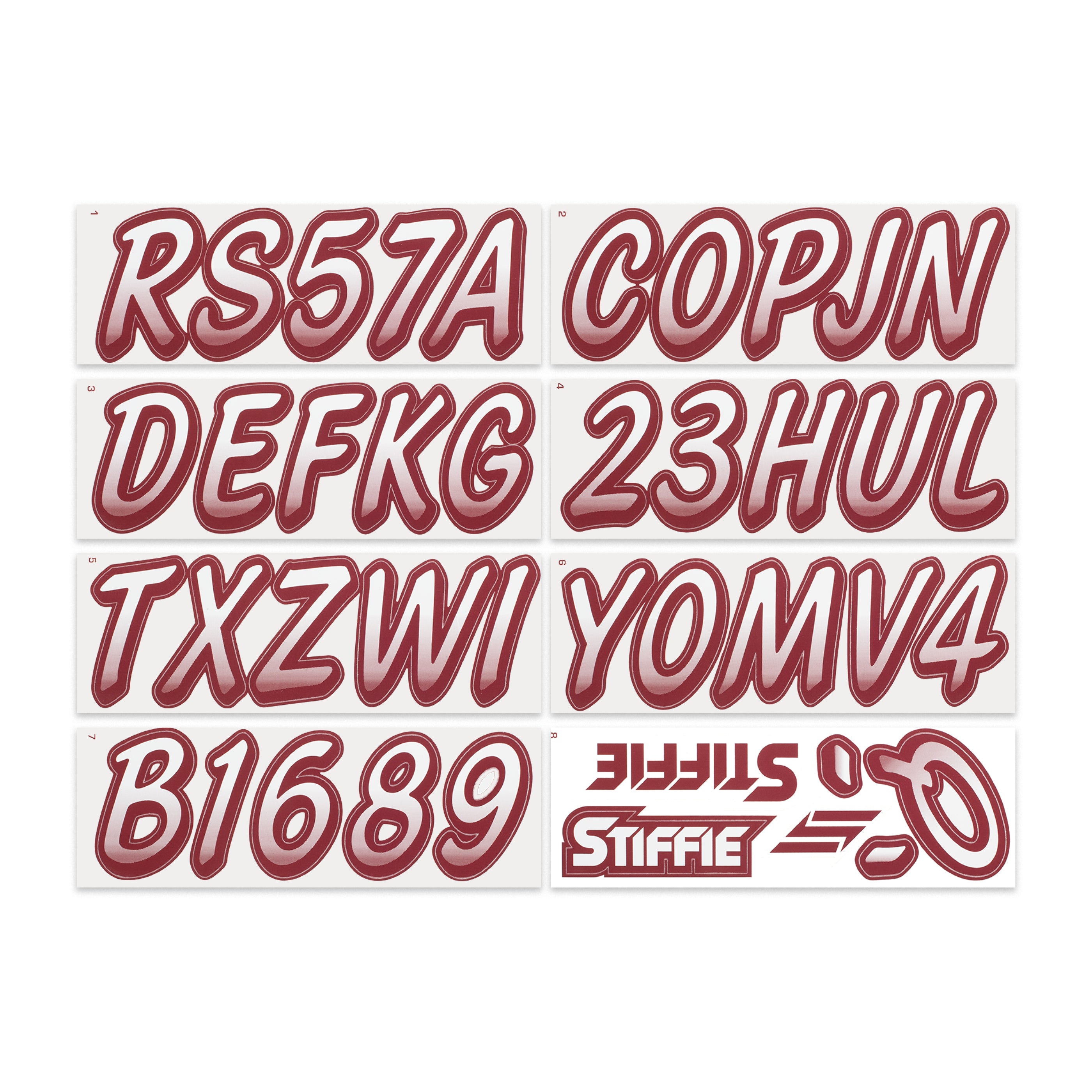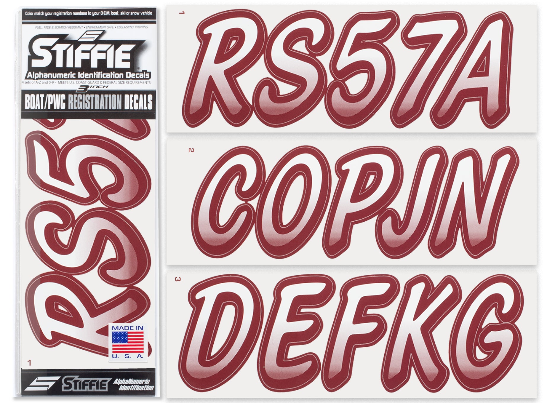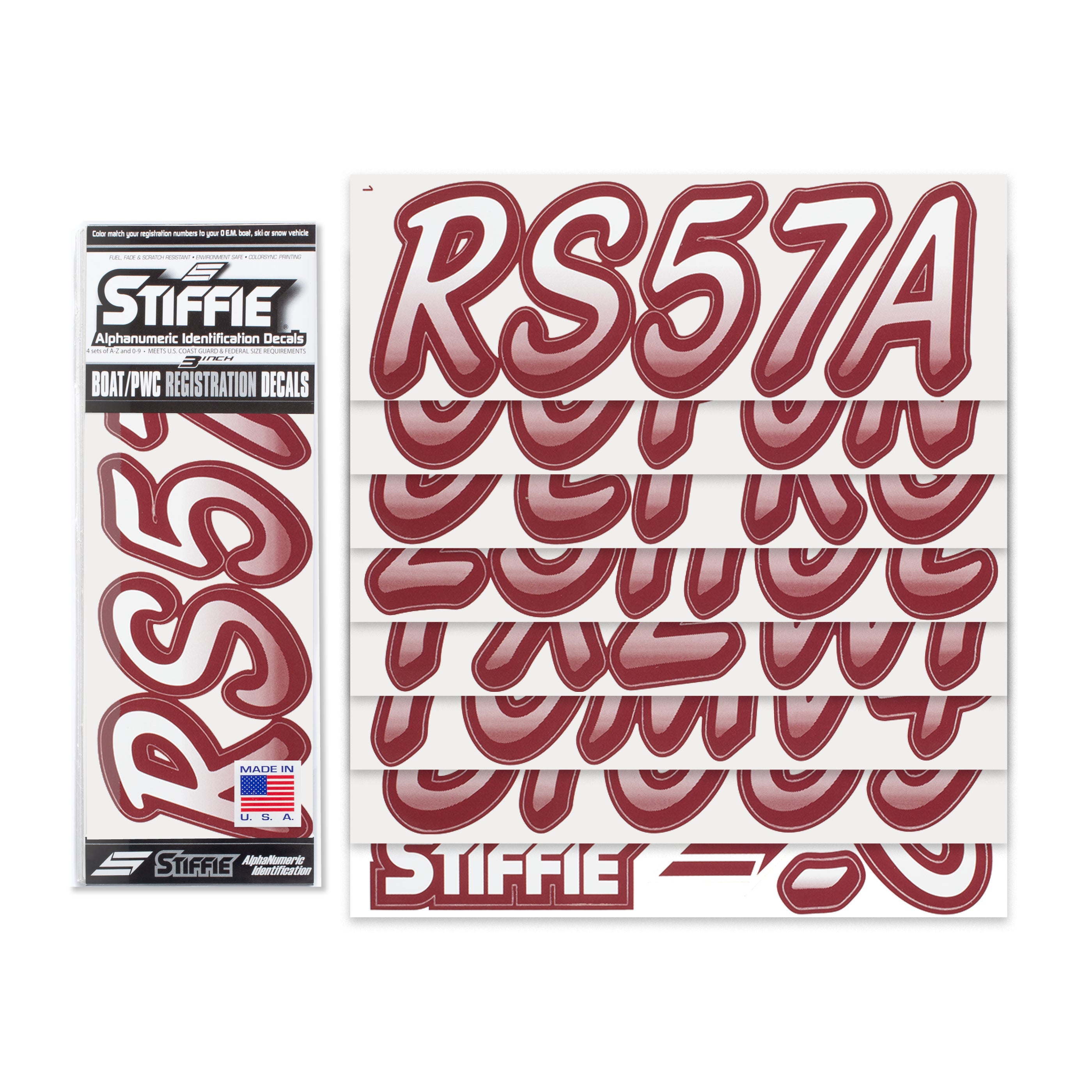 Stiffie Whipline White/Burgundy 3" Alpha-Numeric Registration Identification Numbers Stickers Decals for Boats & Personal Watercraft