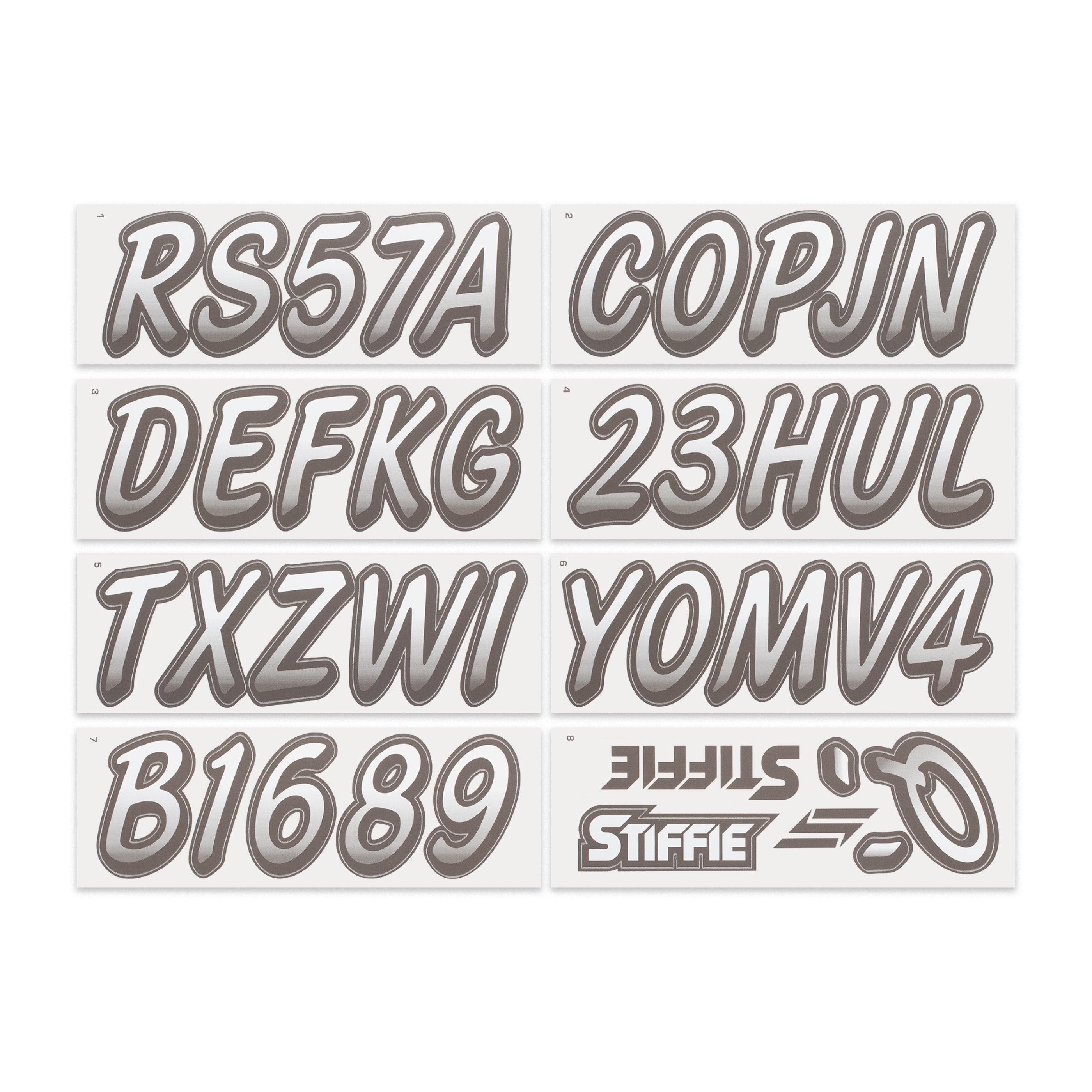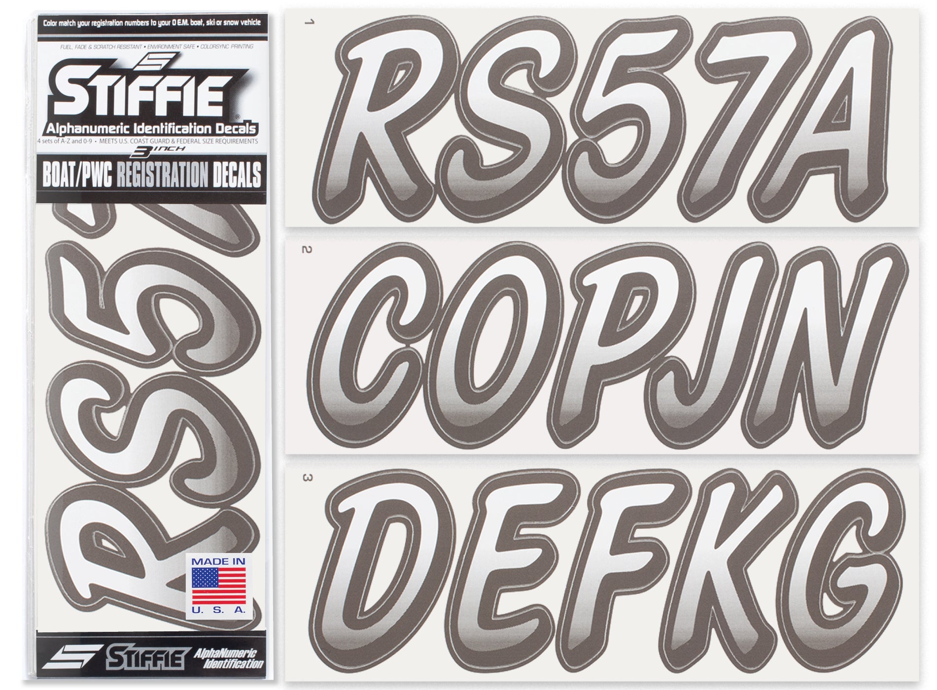 STIFFIE Whipline White/Carbon 3" Boat & PWC Registration Decals • Numbers Letters Stickers