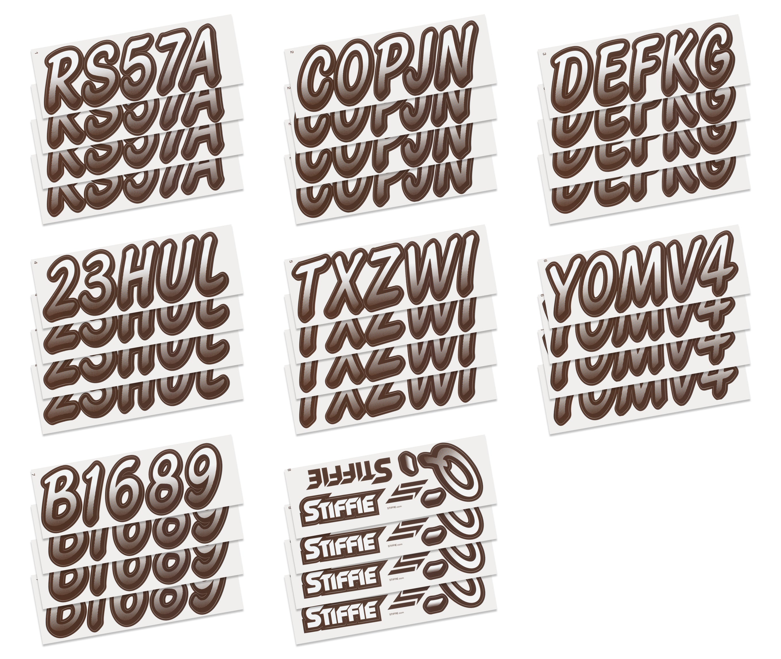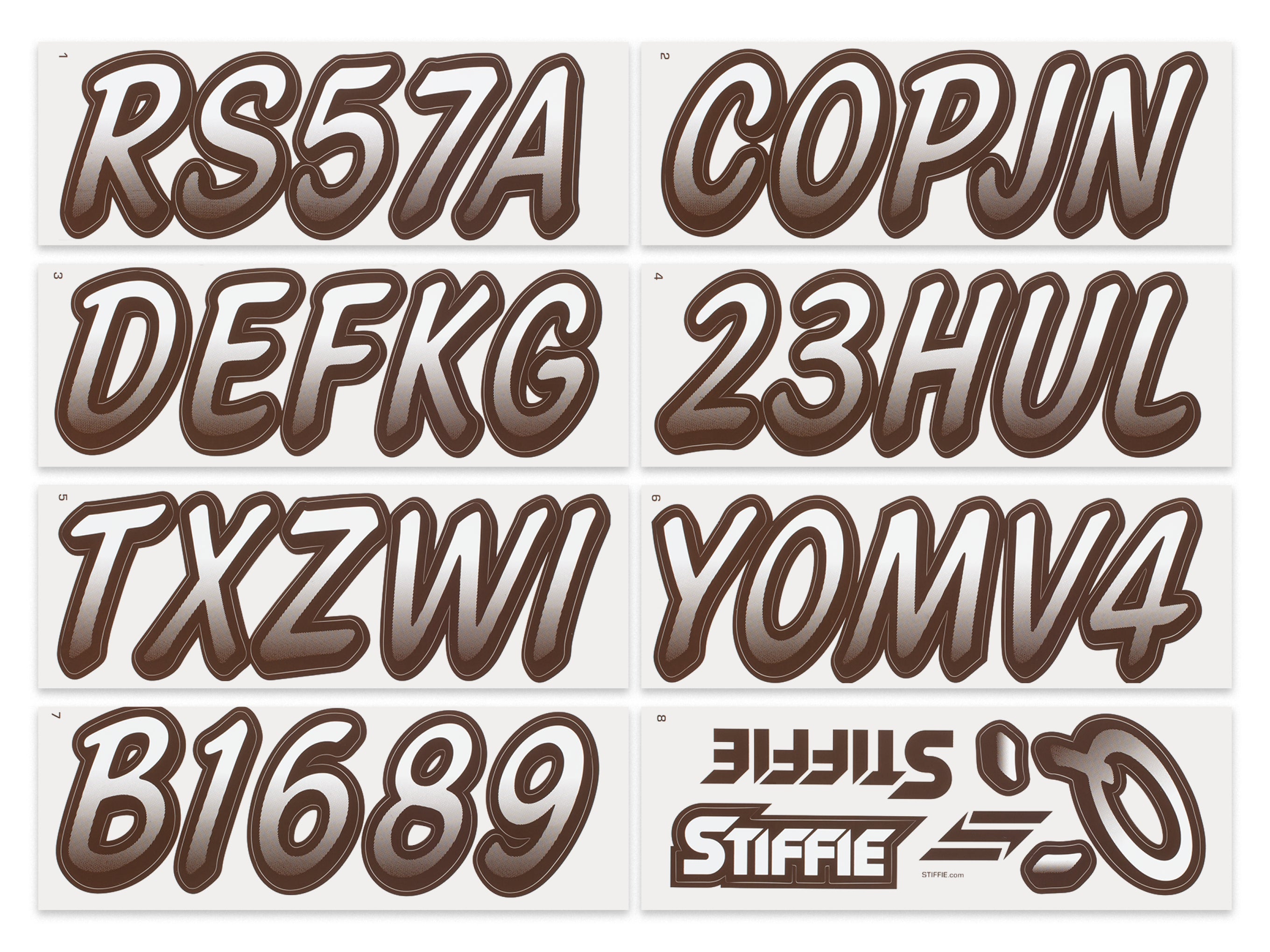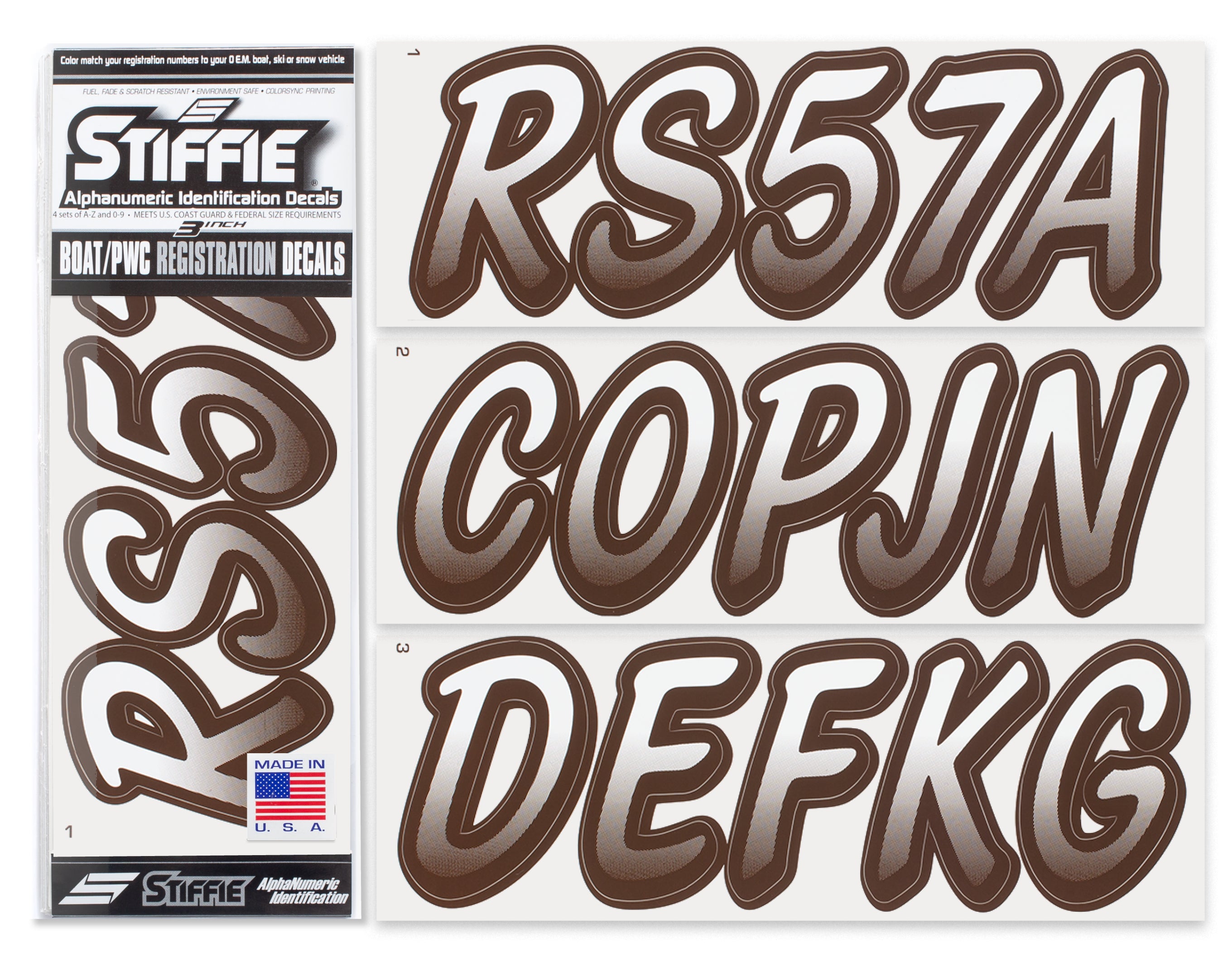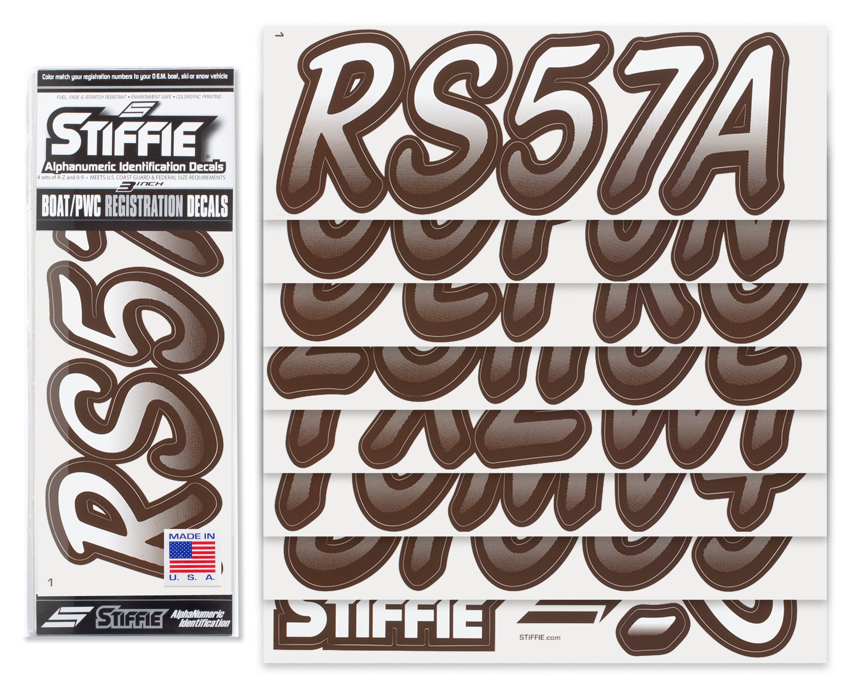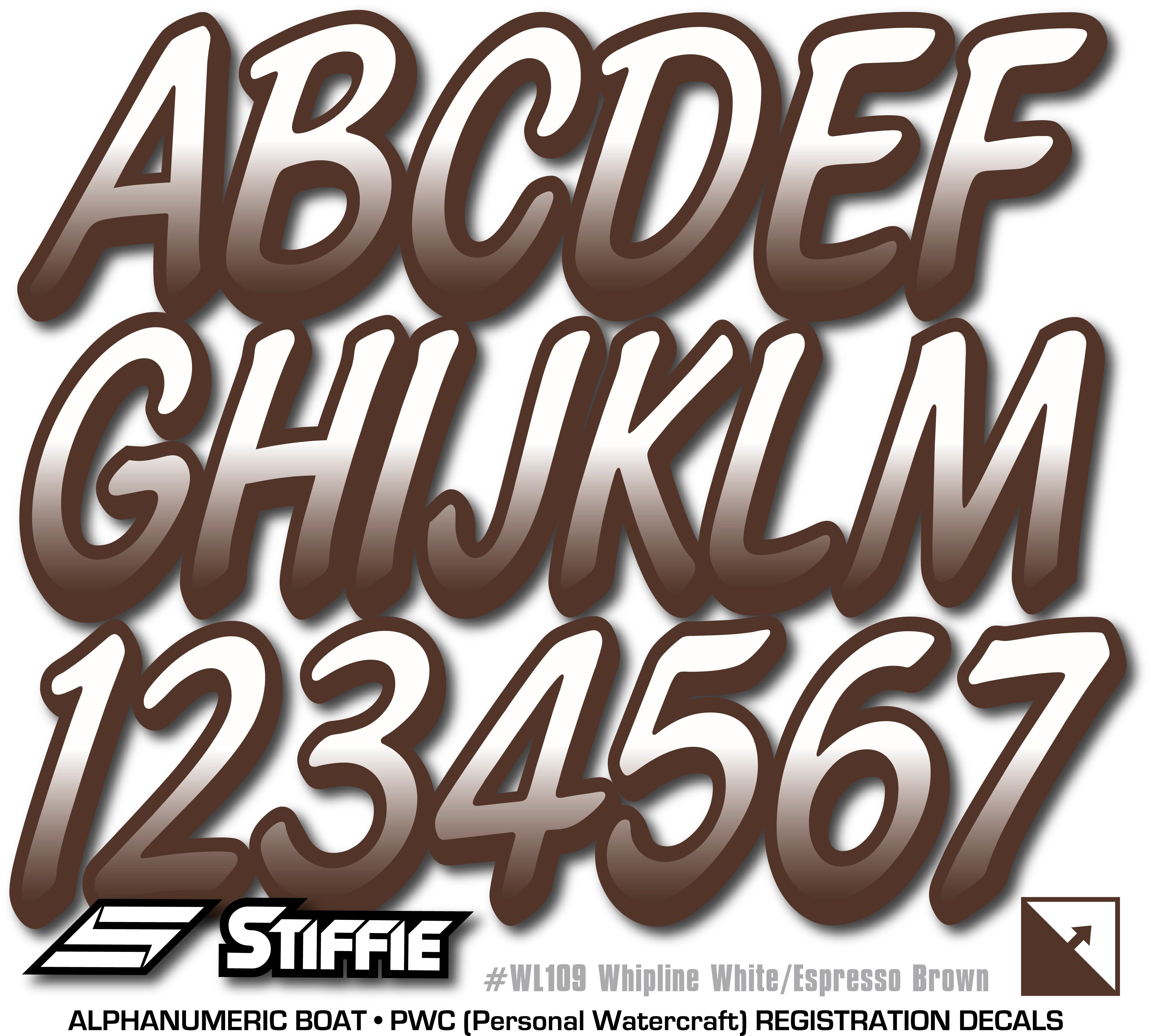 STIFFIE Whipline White /Espresso Brown 3" Boat & PWC Registration Decals • Numbers Letters Stickers