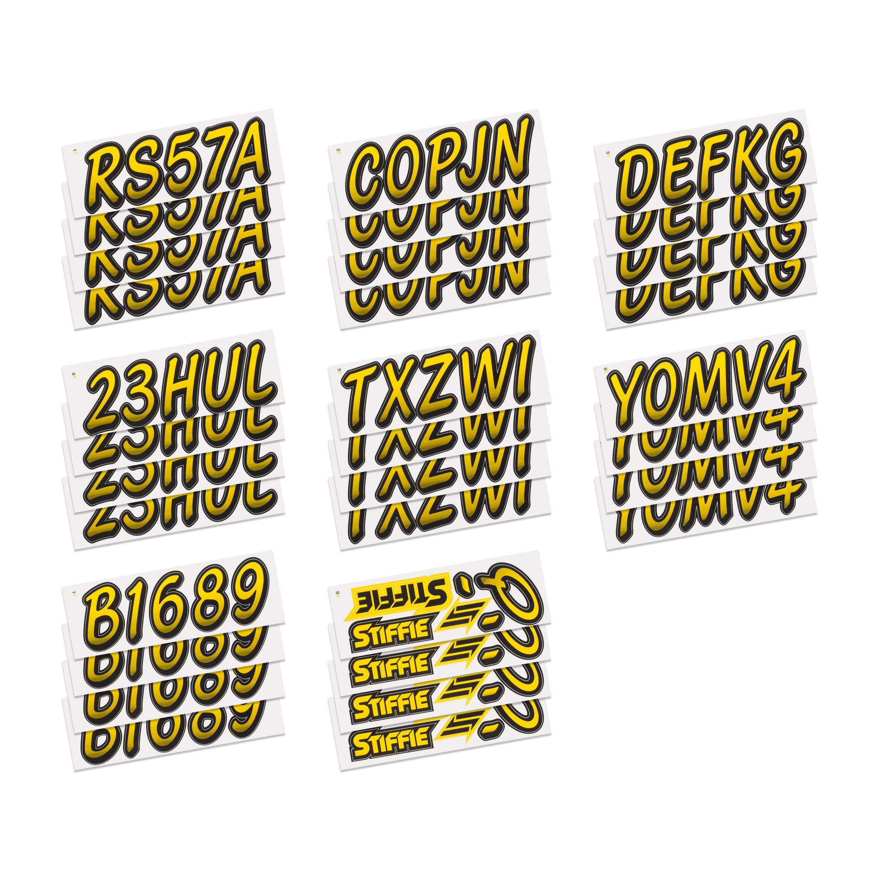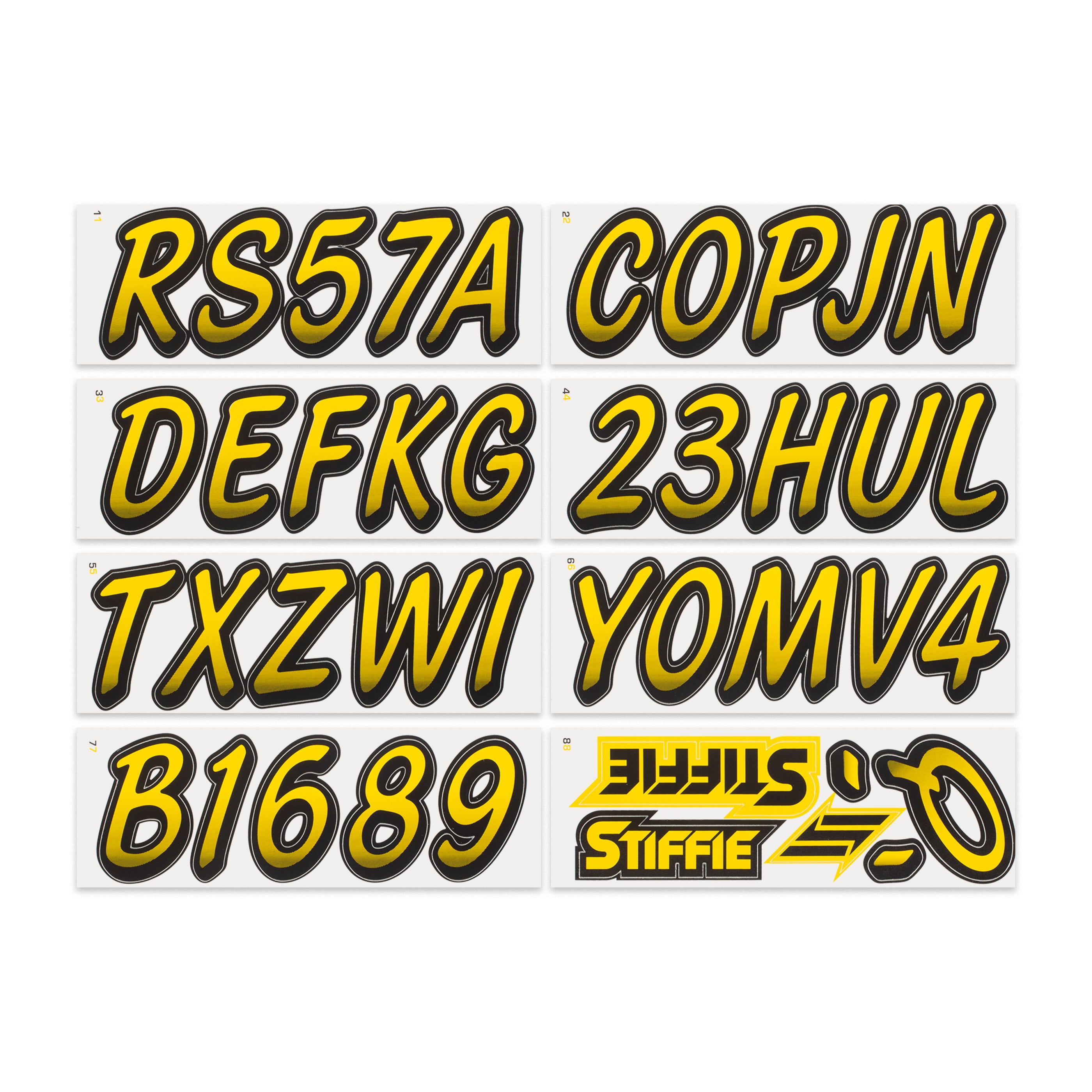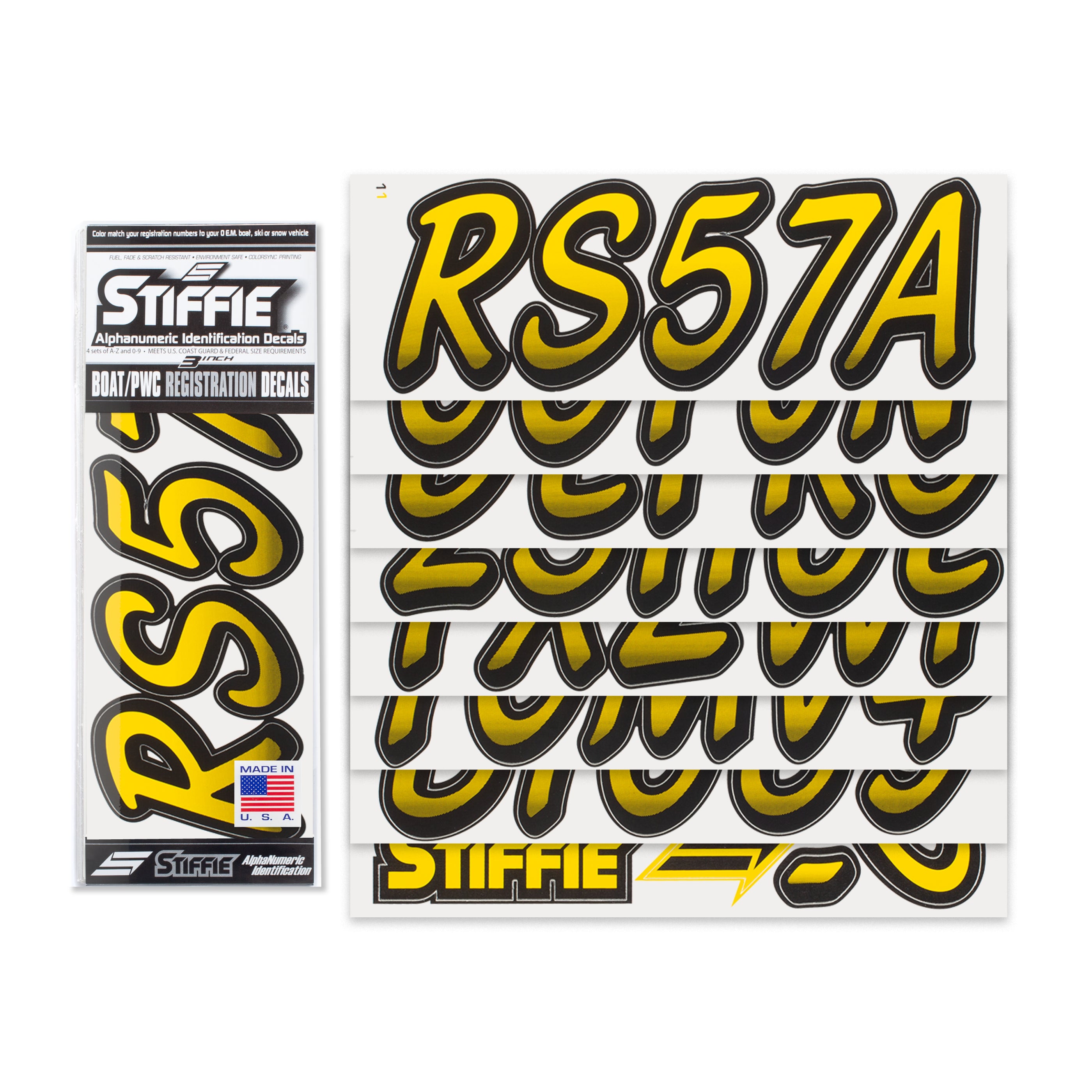 STIFFIE Whipline Yellow/Black 3" Boat & PWC Registration Decals • Numbers Letters Stickers