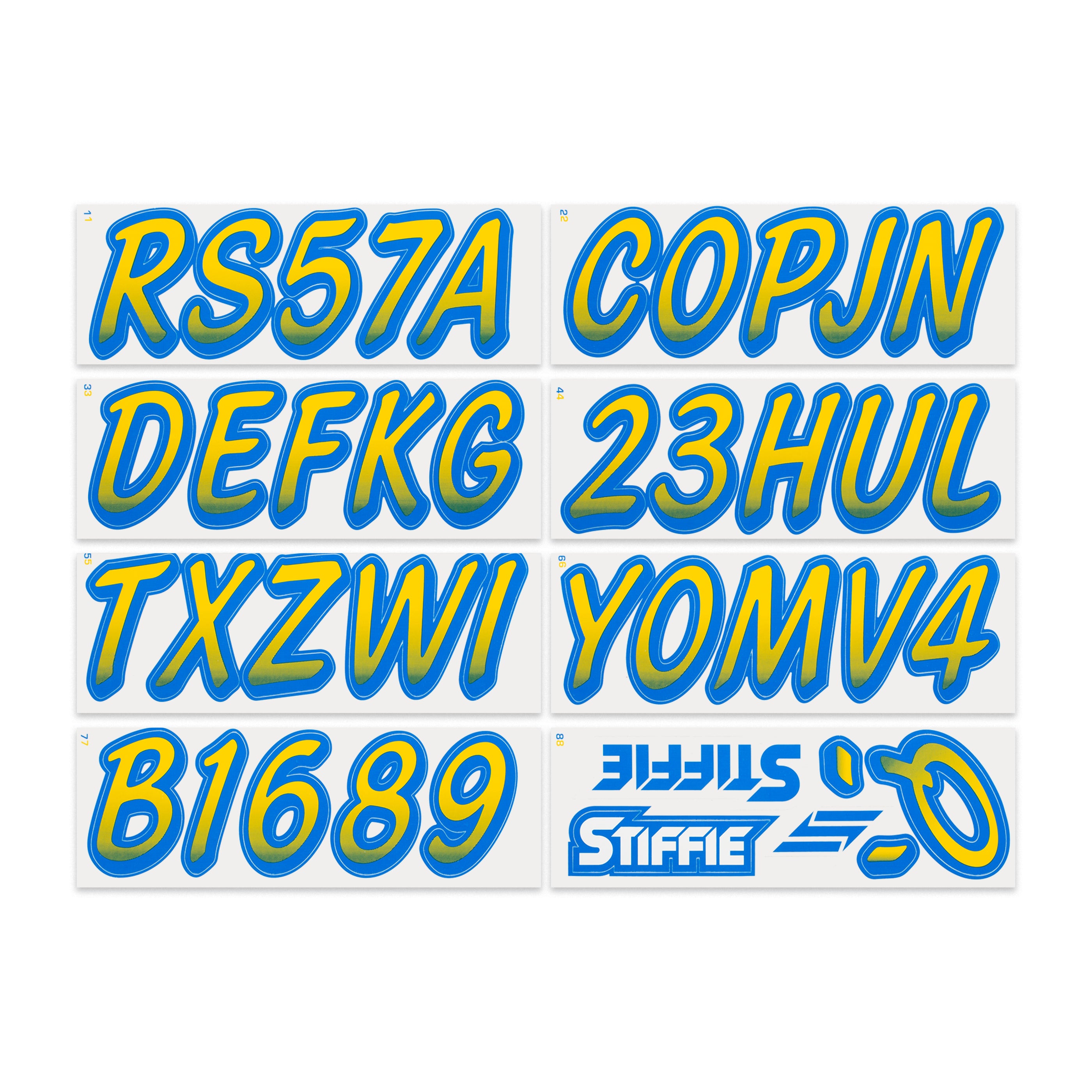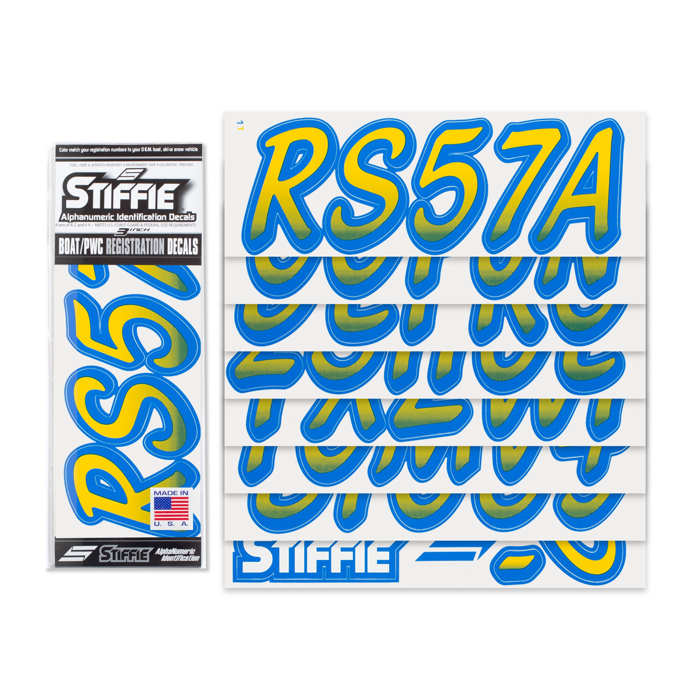STIFFIE Whipline Yellow/Blue 3" Boat & PWC Registration Decals • Numbers Letters Stickers