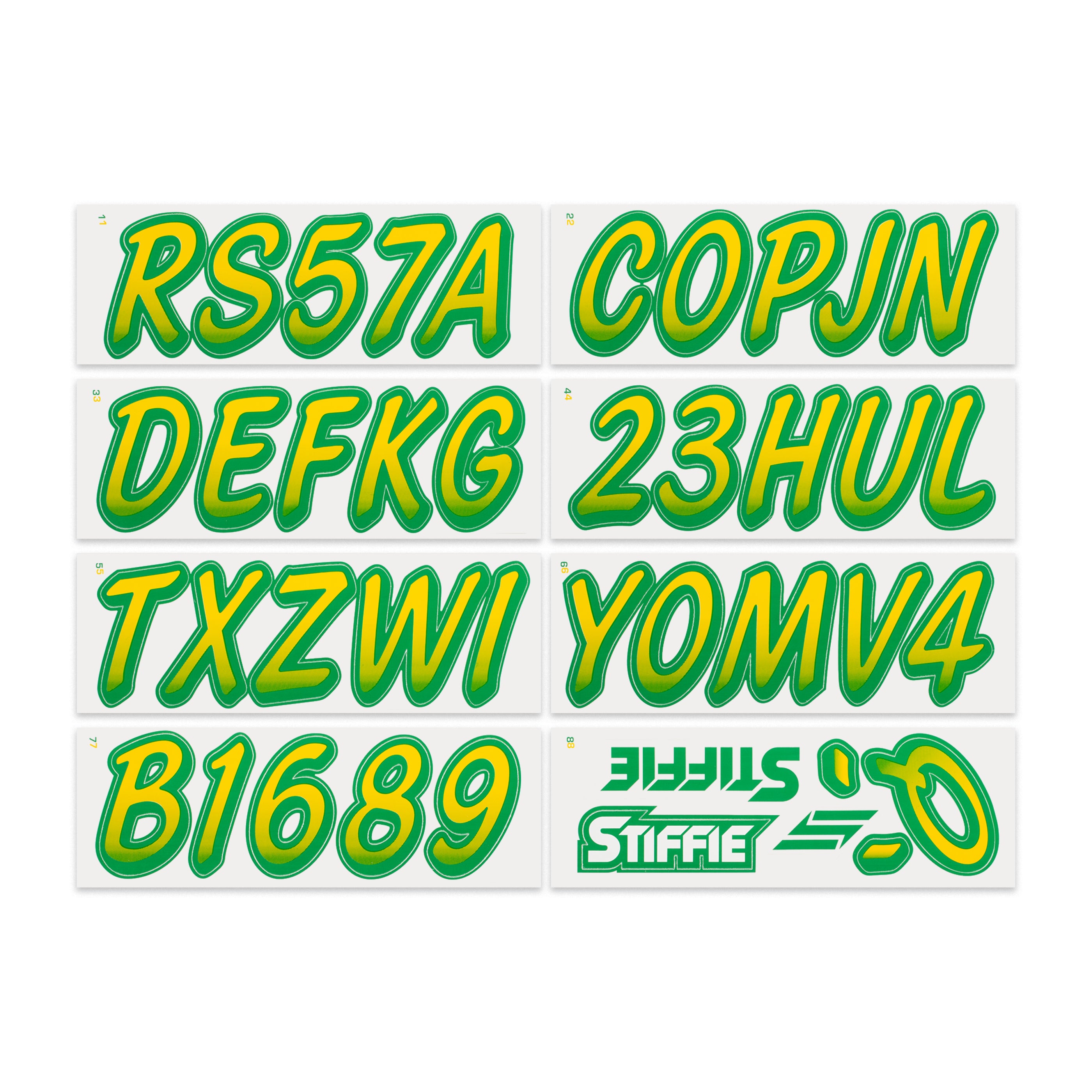 STIFFIE Whipline Yellow/Green 3" Alpha-Numeric Registration Identification Numbers Stickers Decals for Boats & Personal Watercraft