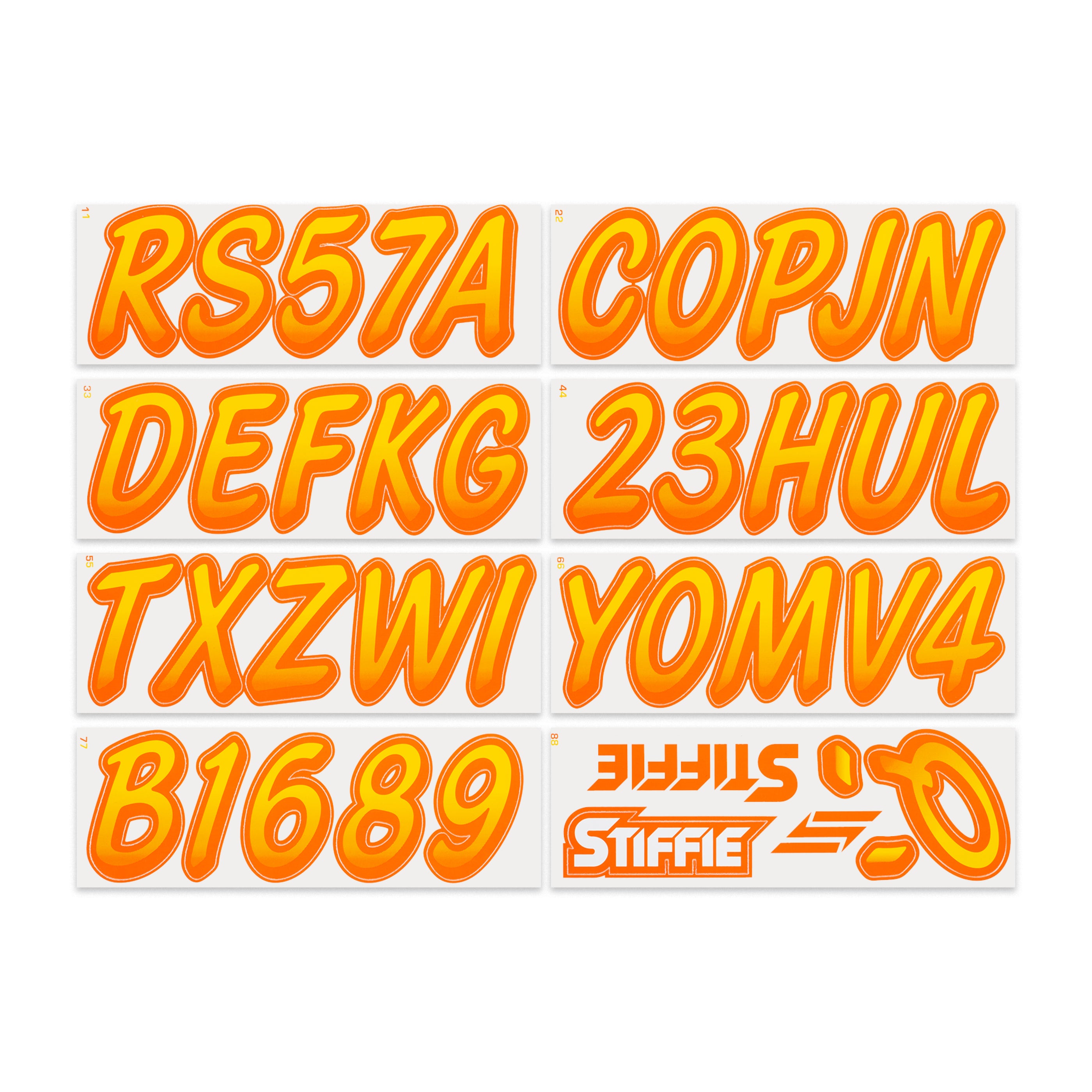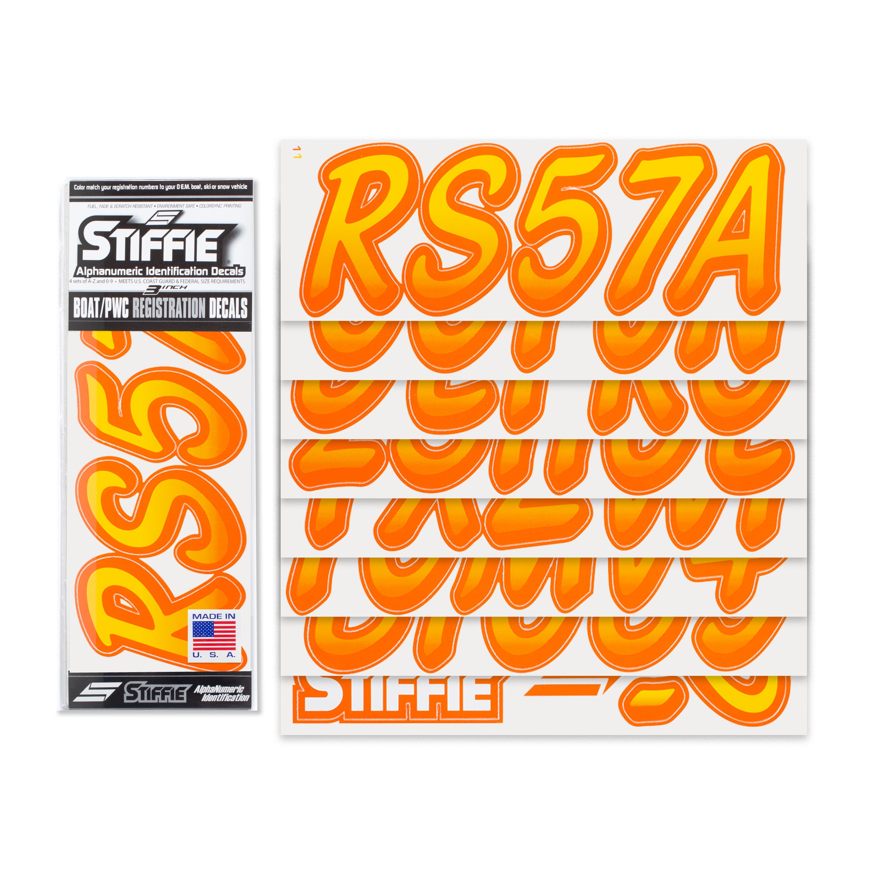 STIFFIE Whipline Yellow/Orange 3" Boat & PWC Registration Decals • Numbers Letters Stickers