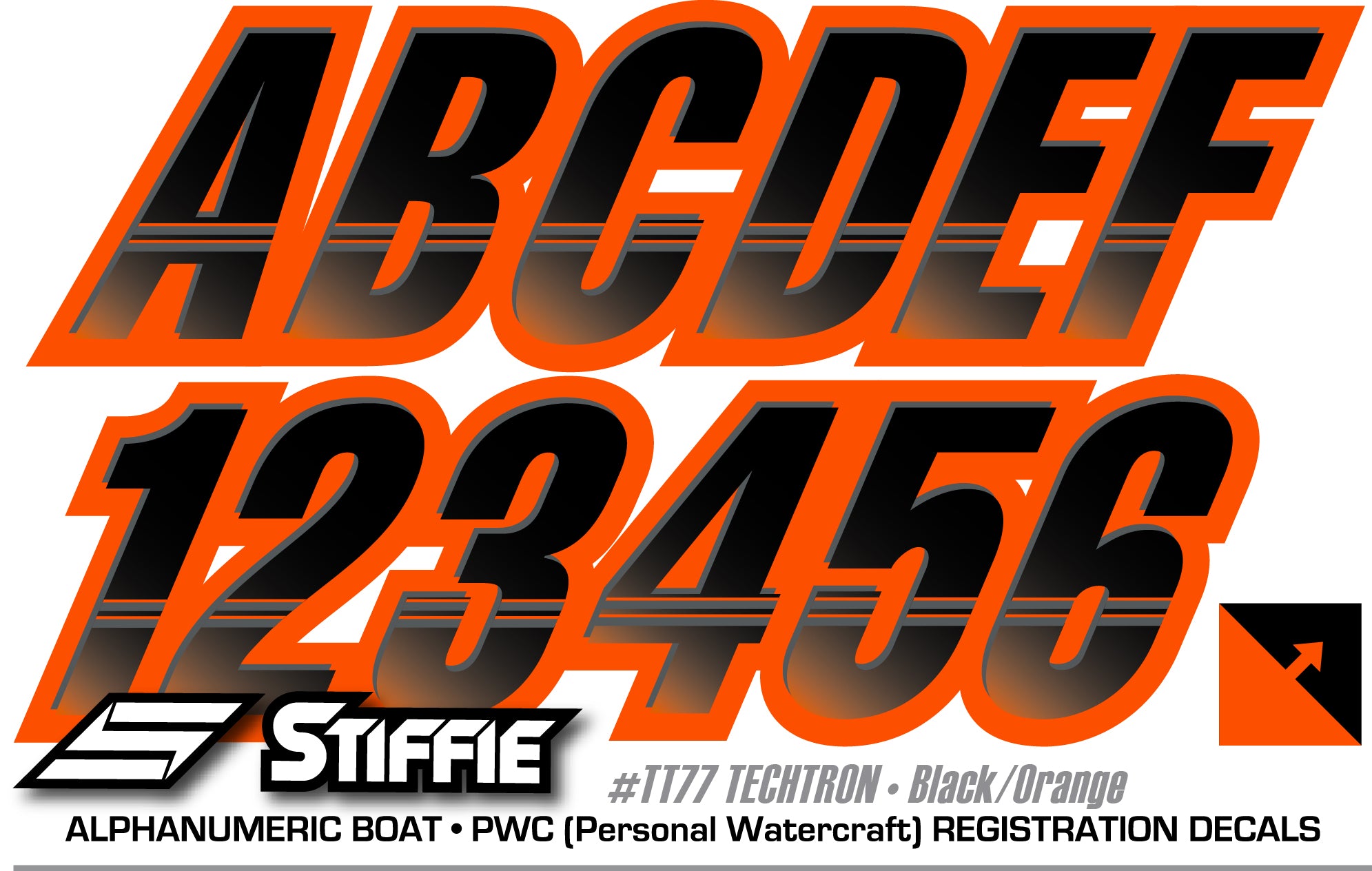 STIFFIE Techtron Black/Orange 3” Boat & PWC Registration Decals • Numbers Letters Stickers