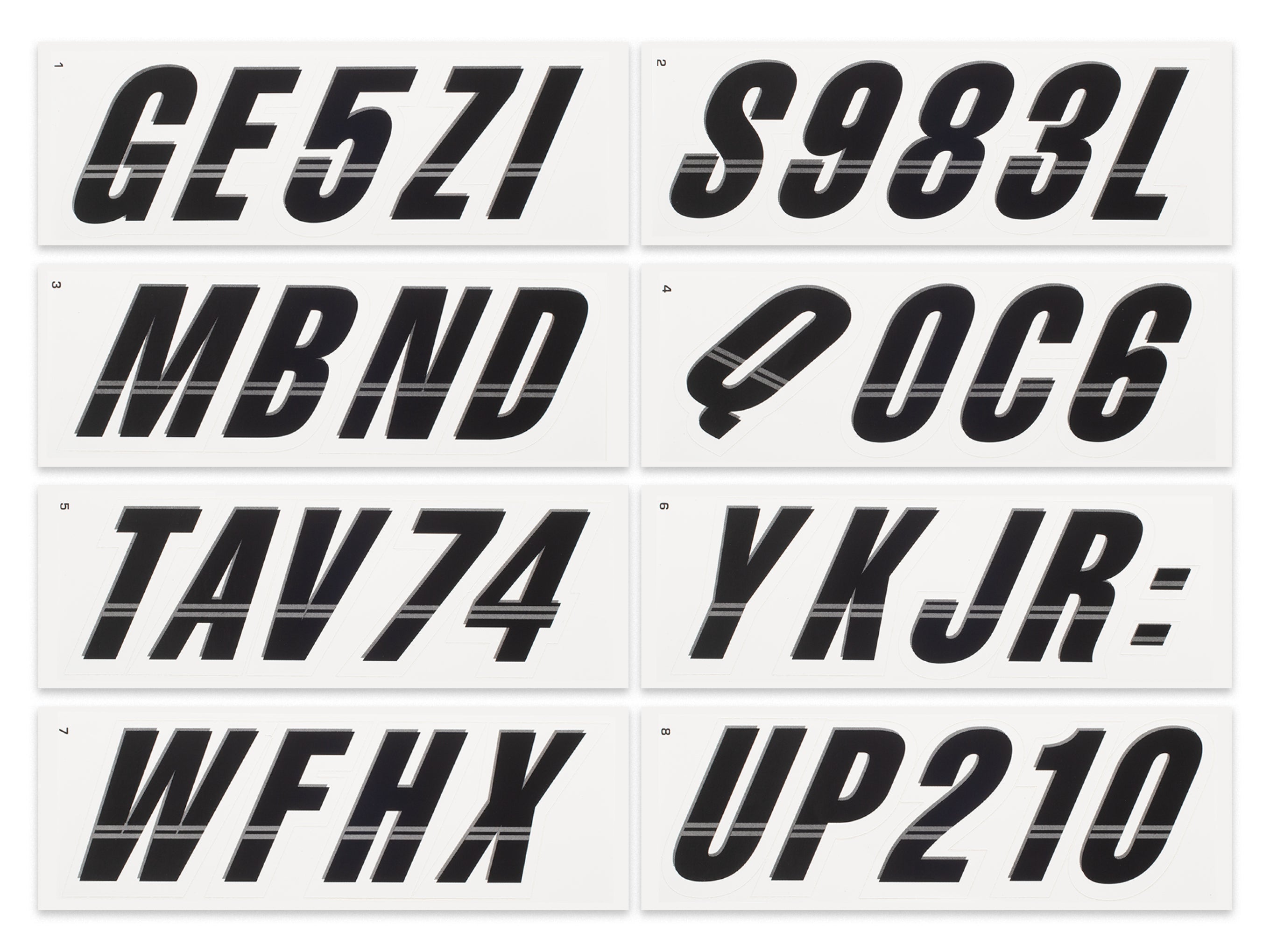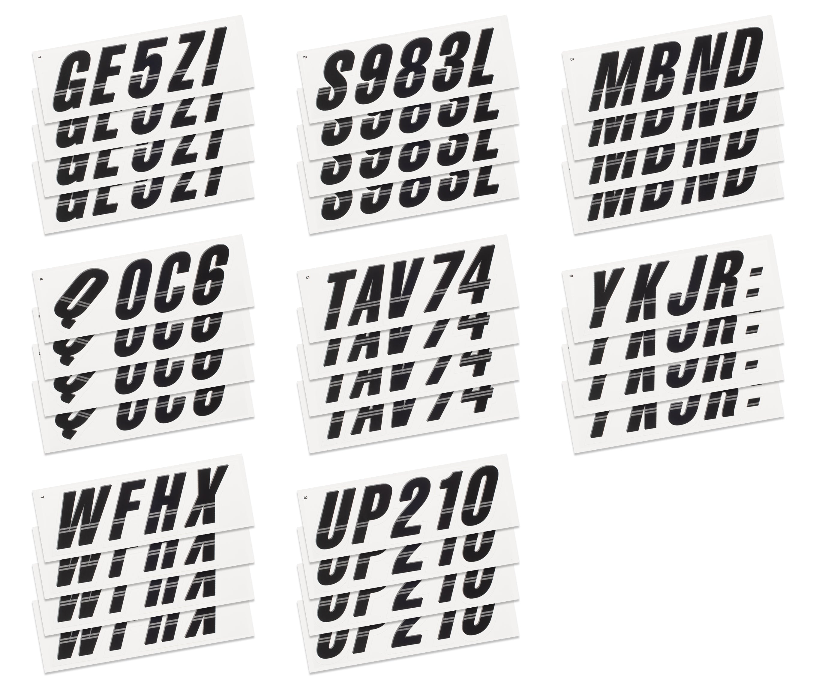 All Alphanumeric ID Kits offered by STIFFIE come with characters that are 3" in height and meet or exceed US Coast Guard Regulations. Every ID kit comes with 4 sets of 0-9 and A-Z decals (146 total decals). STIFFIE Alphanumeric registration decals are resistant to chemical deterioration, fading, curling, tearing and scratching. STIFFIE decals are also UV Coated for protection from harmful ultra-violet (UV) rays.