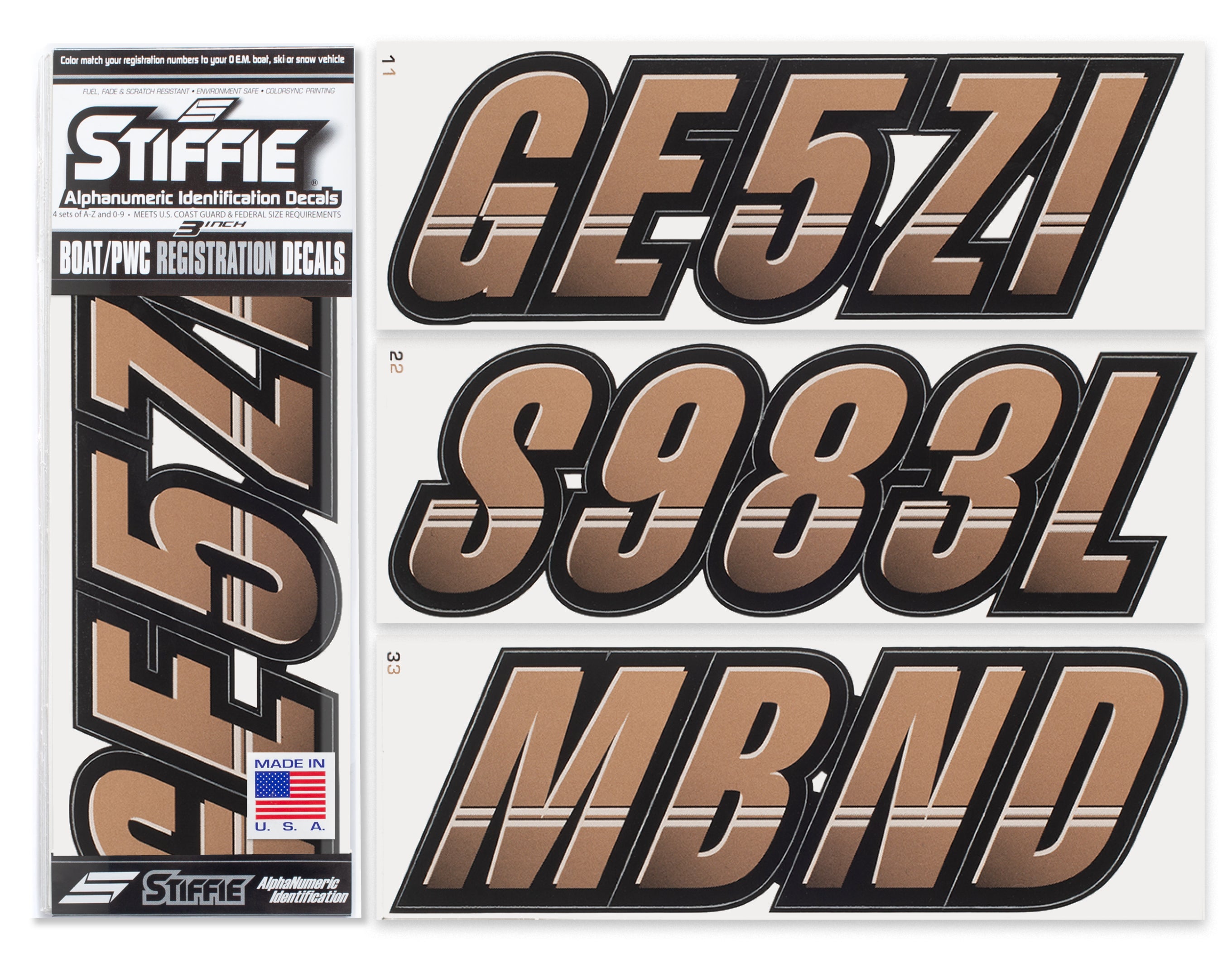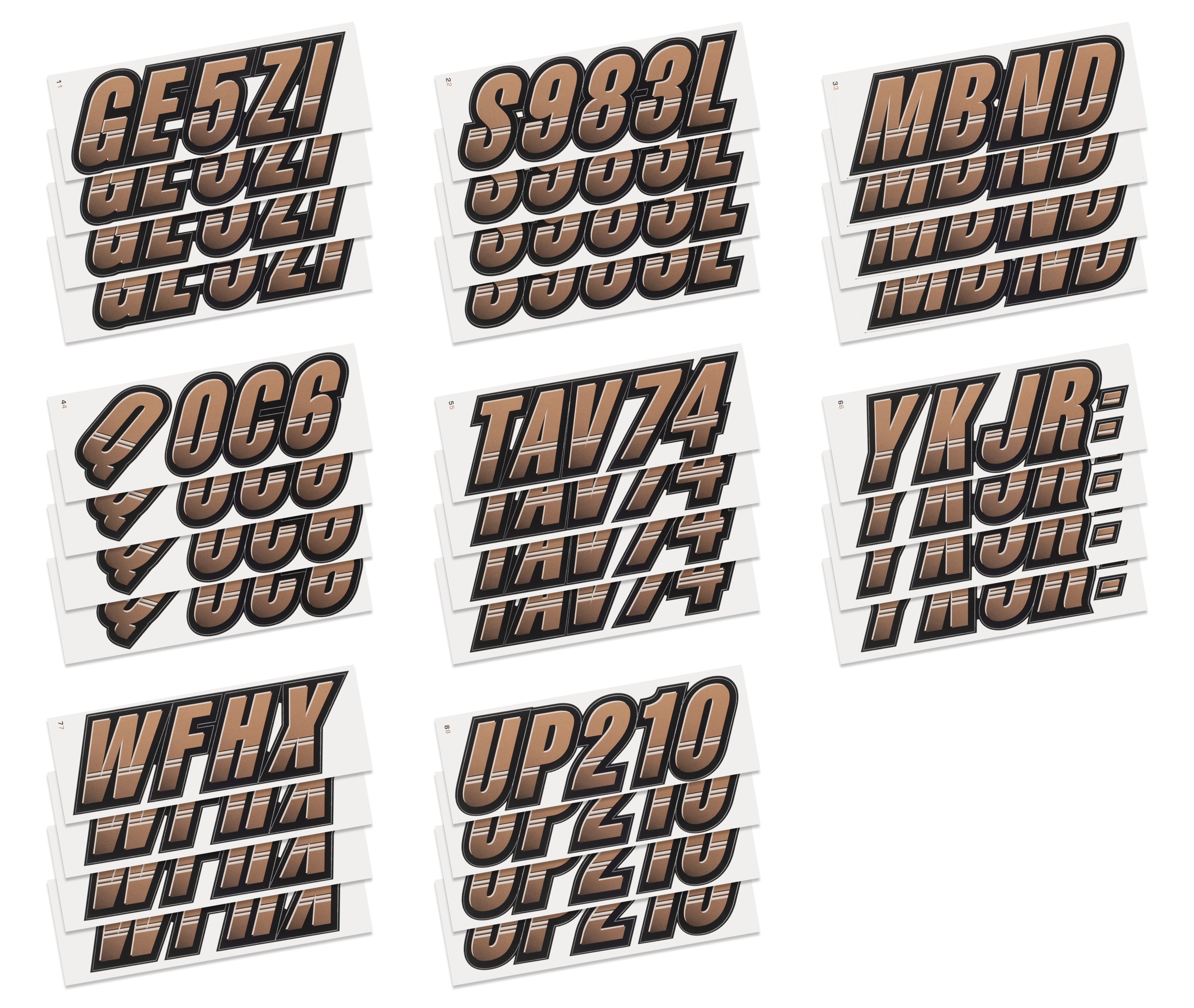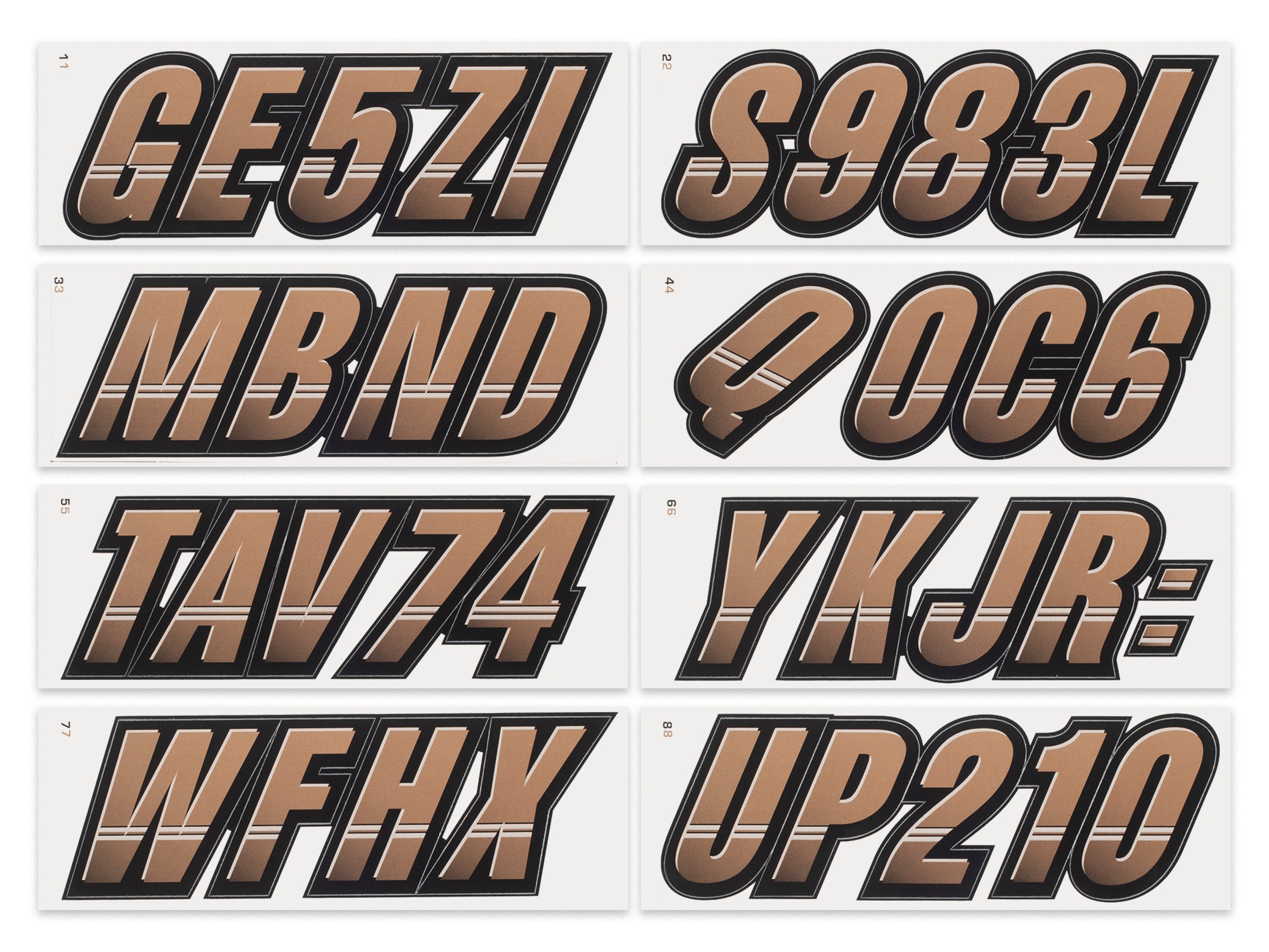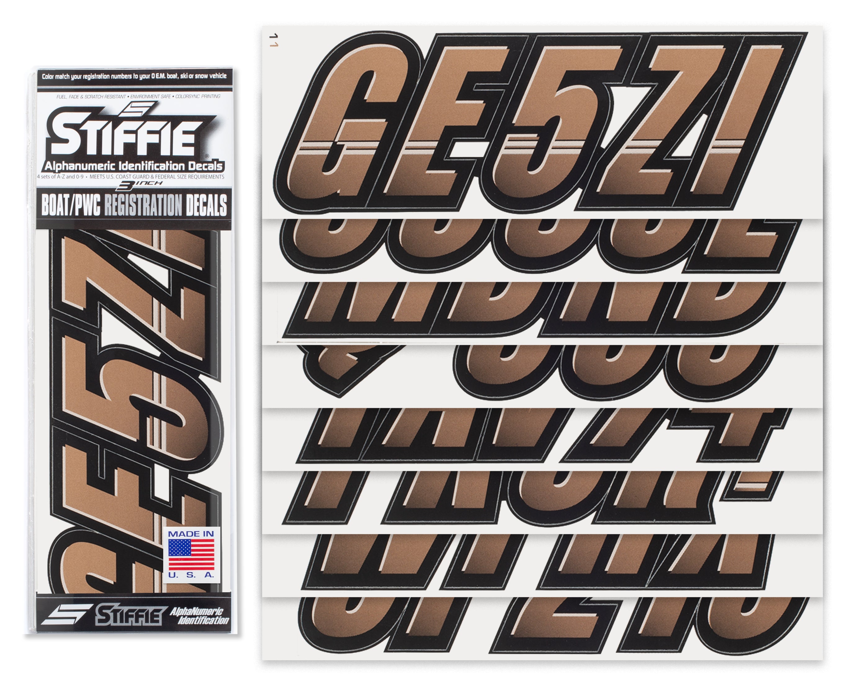 STIFFIE Techtron Metallic Copper/Black 3” Boat & PWC Registration Decals • Numbers Letters Stickers