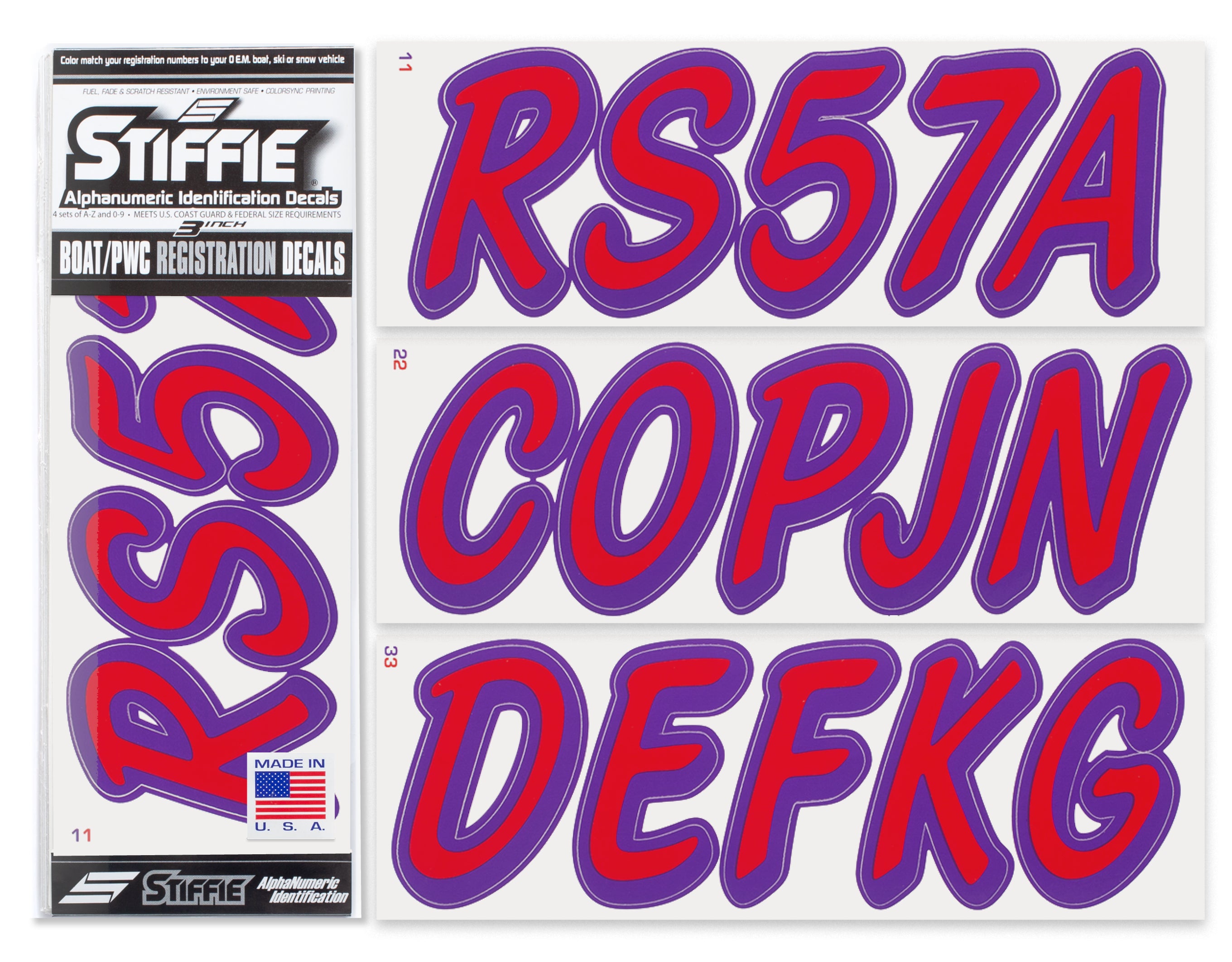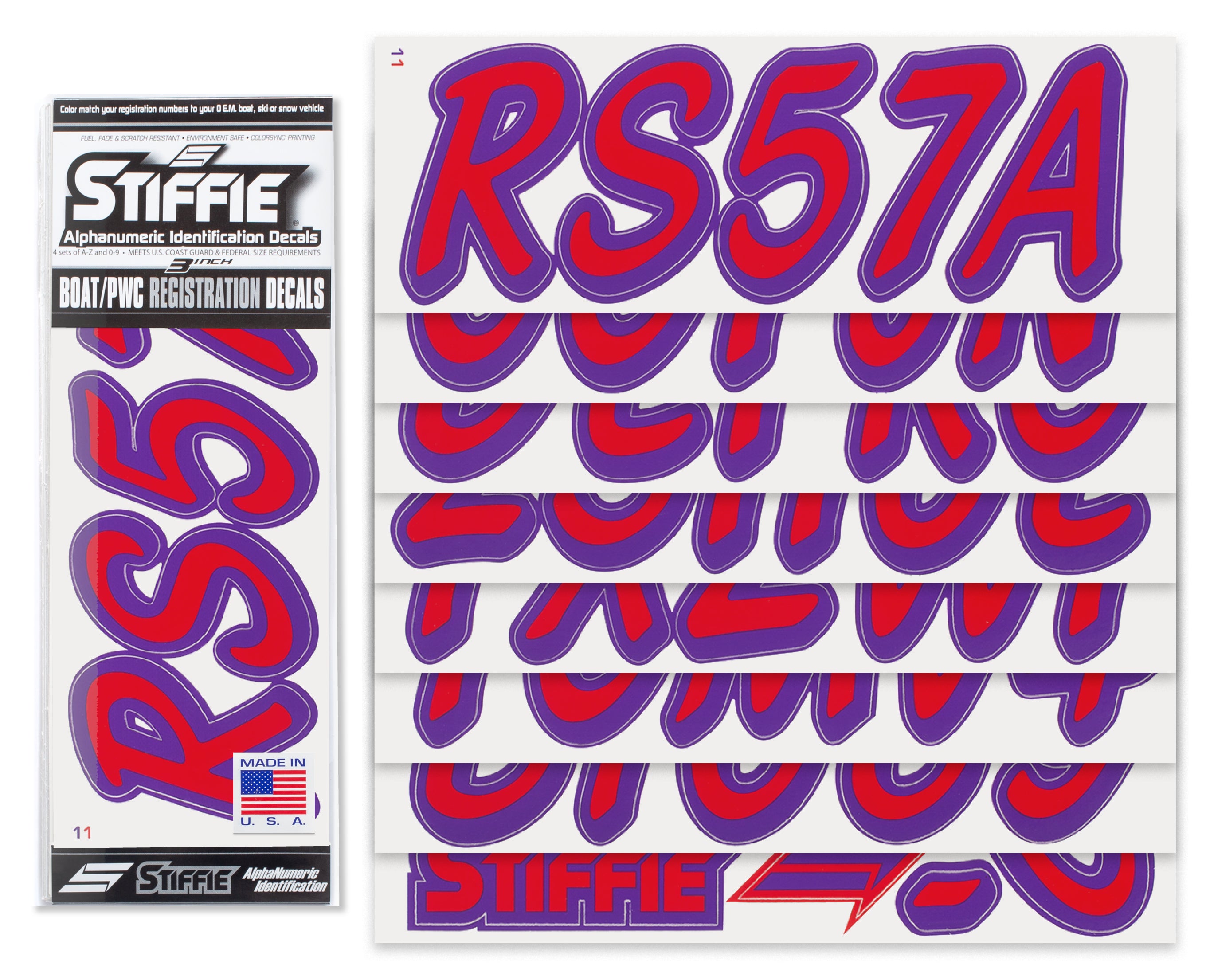 STIFFIE Whipline Solid Red/Purple 3” Boat & PWC Registration Decals • Numbers Letters Stickers