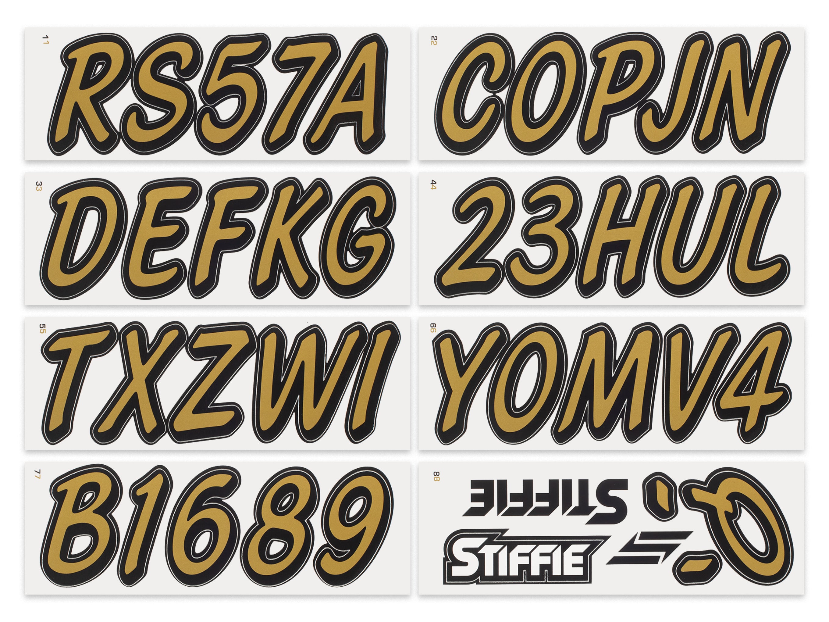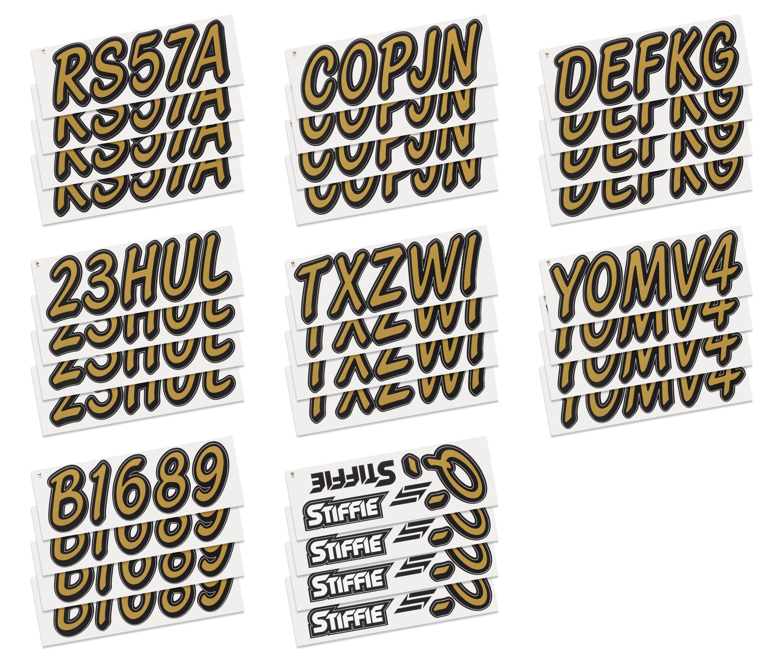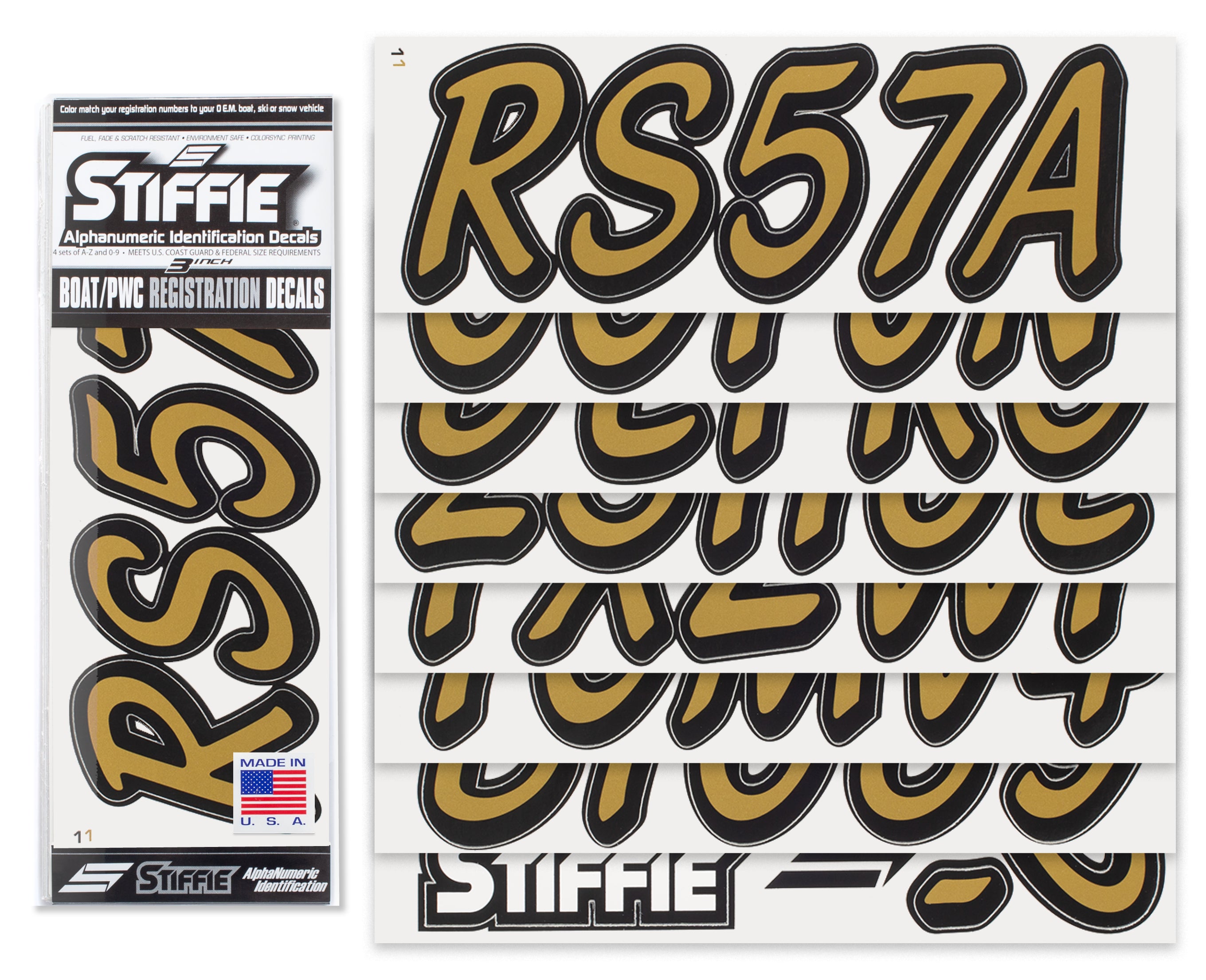 STIFFIE Whipline Solid Metallic Gold/Black 3” Boat & PWC Registration Decals • Numbers Letters Stickers