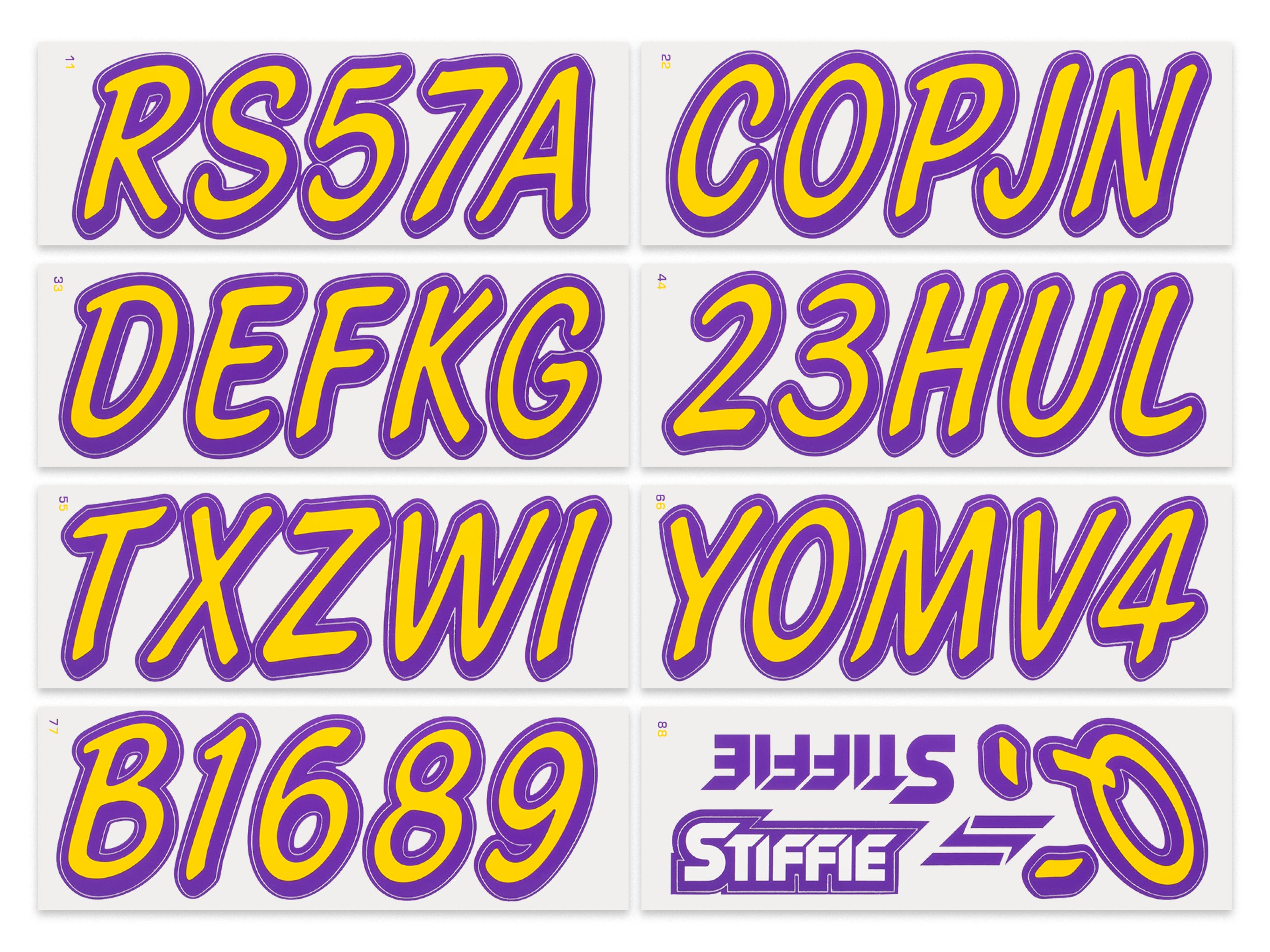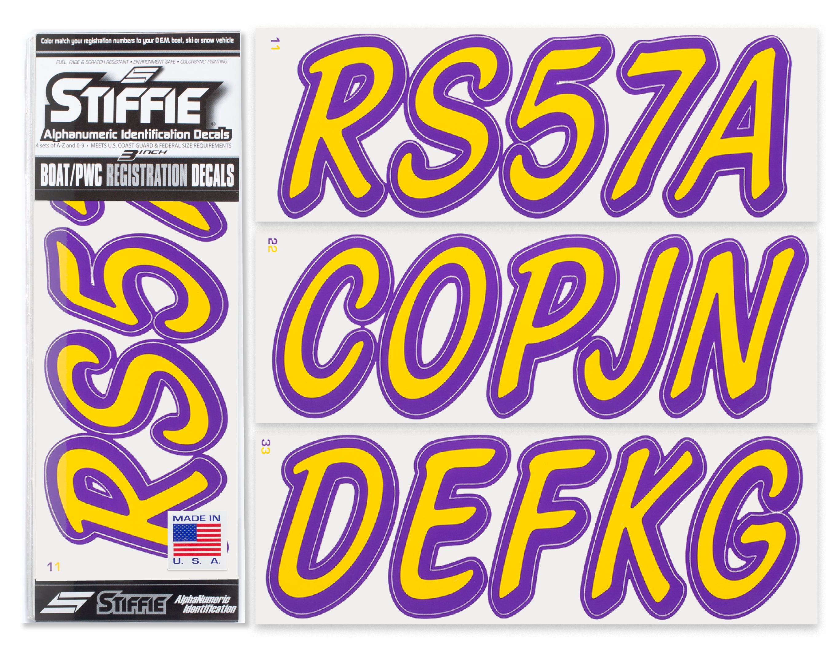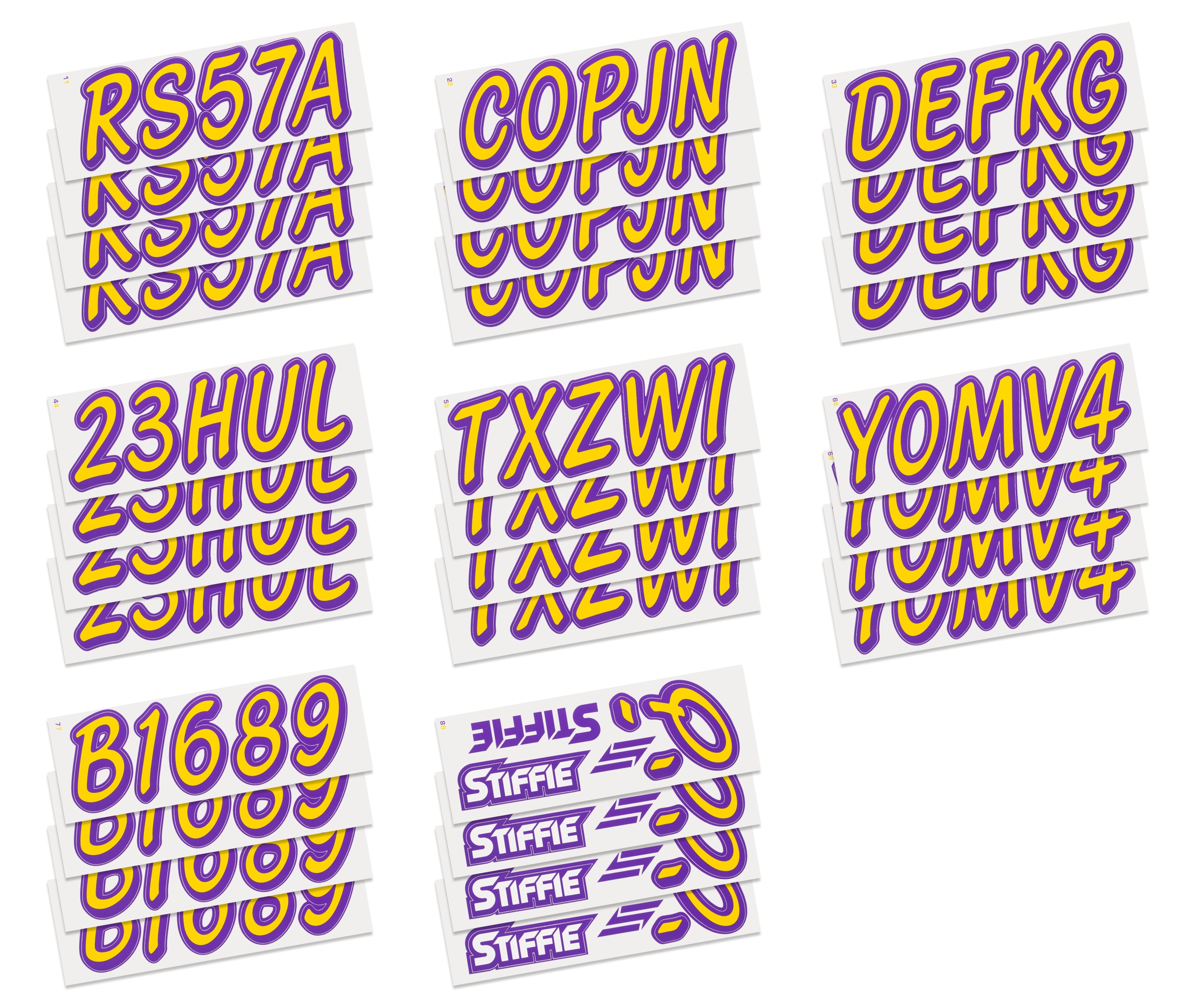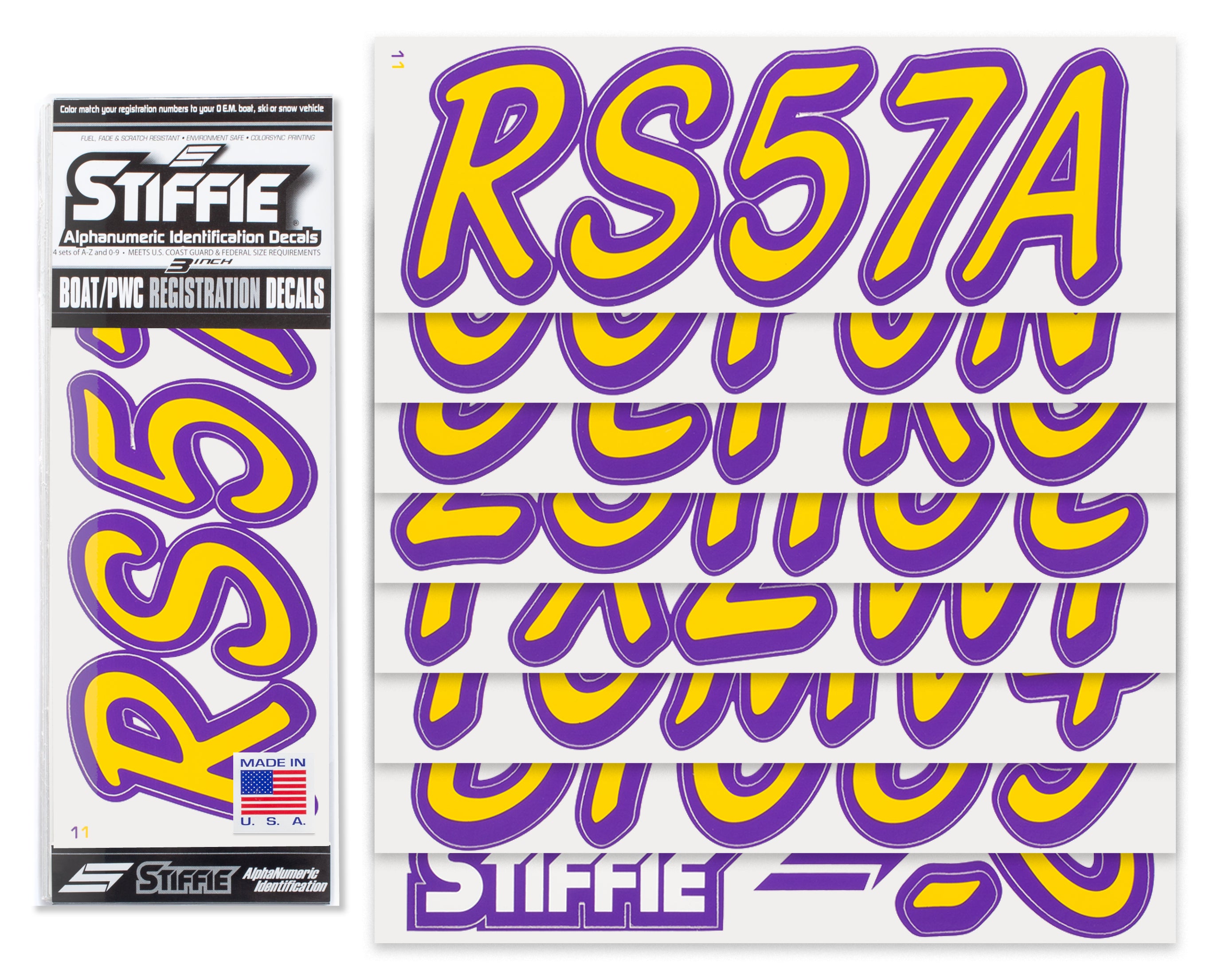 STIFFIE Whipline Solid Yellow/Purple 3” Boat & PWC Registration Decals • Numbers Letters Stickers